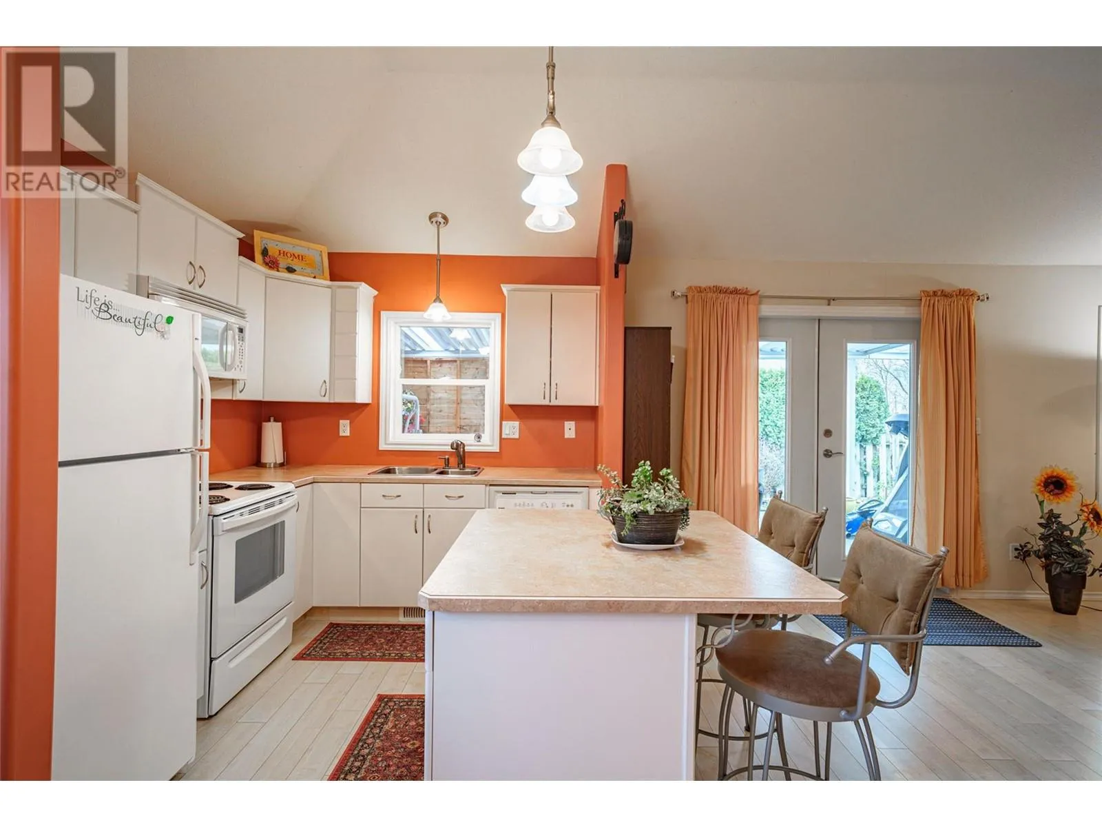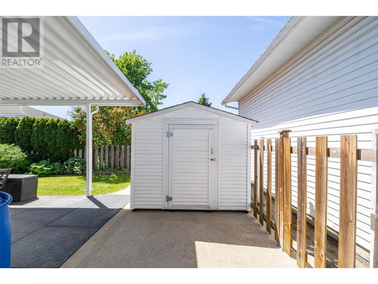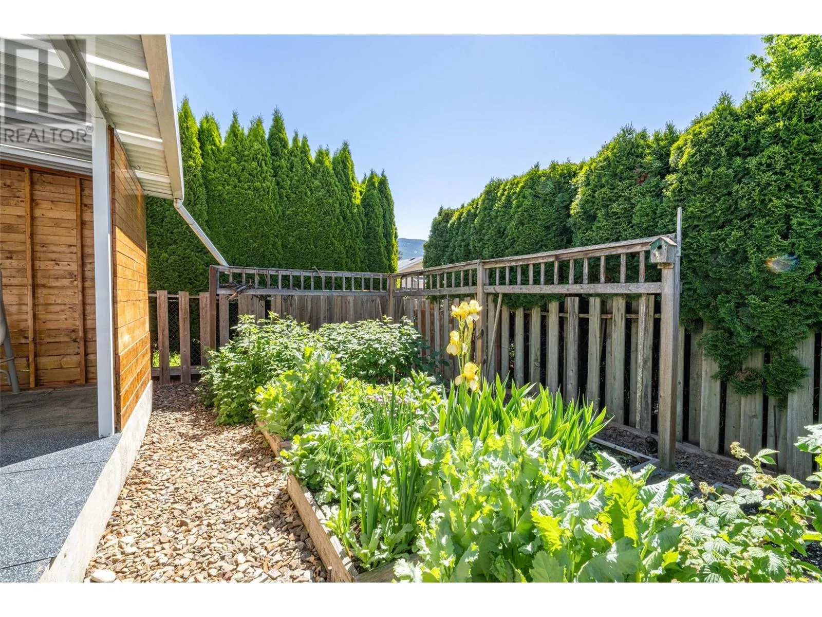 Hard to find 3 bedroom, 2 bath rancher close to the River Walk, Tuey beach & park, and recreation facility. Custom built by the current owner in 2005, you'll be sure to love the 11' ceilings thru-out...makes everything feel oh so spacious. Great room style main living/dining/kitchen area where you can entertain with ease. L-shaped kitchen offers bright white cabinetry and a center island complete with a breakfast bar. There is lots of room for a full dining suite or a more simple dining table. Double french doors open onto a covered 46' foot full length patio with privacy screening for your outdoor living enjoyment. Two bedrms & a full bath are located just down from the main living area. You will find the primary bedroom located on the opposite side of the home for the utmost in privacy. There is a walk-in closet & a full ensuite with new flooring & a new walk-in shower. Laundry is just outside the primary bedroom door with access to the garage through the laundry area. The south facing yard is fully fenced & very private boasting 18' x 8' hard wired shed, garden beds, fruit trees, raspberries, strawberries, rhubarb & even 4 hascap berry bushes! Hydro avg $150 p/mo for all your electrical, hot water & heating needs. A brand new hot water tank was just installed and a new roof put on in August 2024. There is an additional 4'ft crawl for extra storage needs. Parking is made up of a double car garage & a nice wide & long driveway which can even accommodate your RV! (id:27476)
