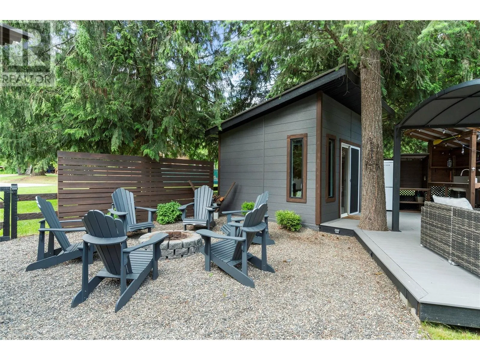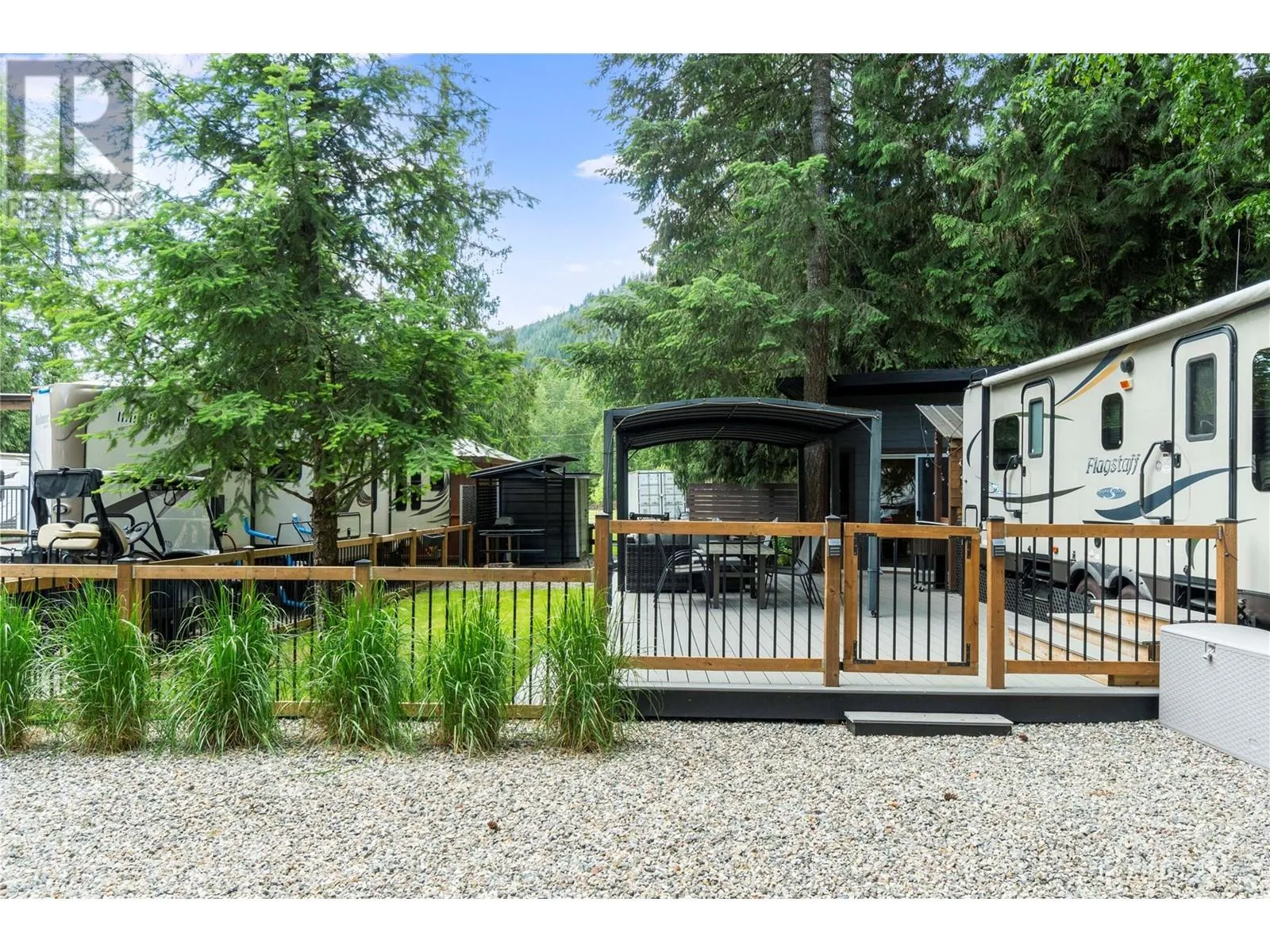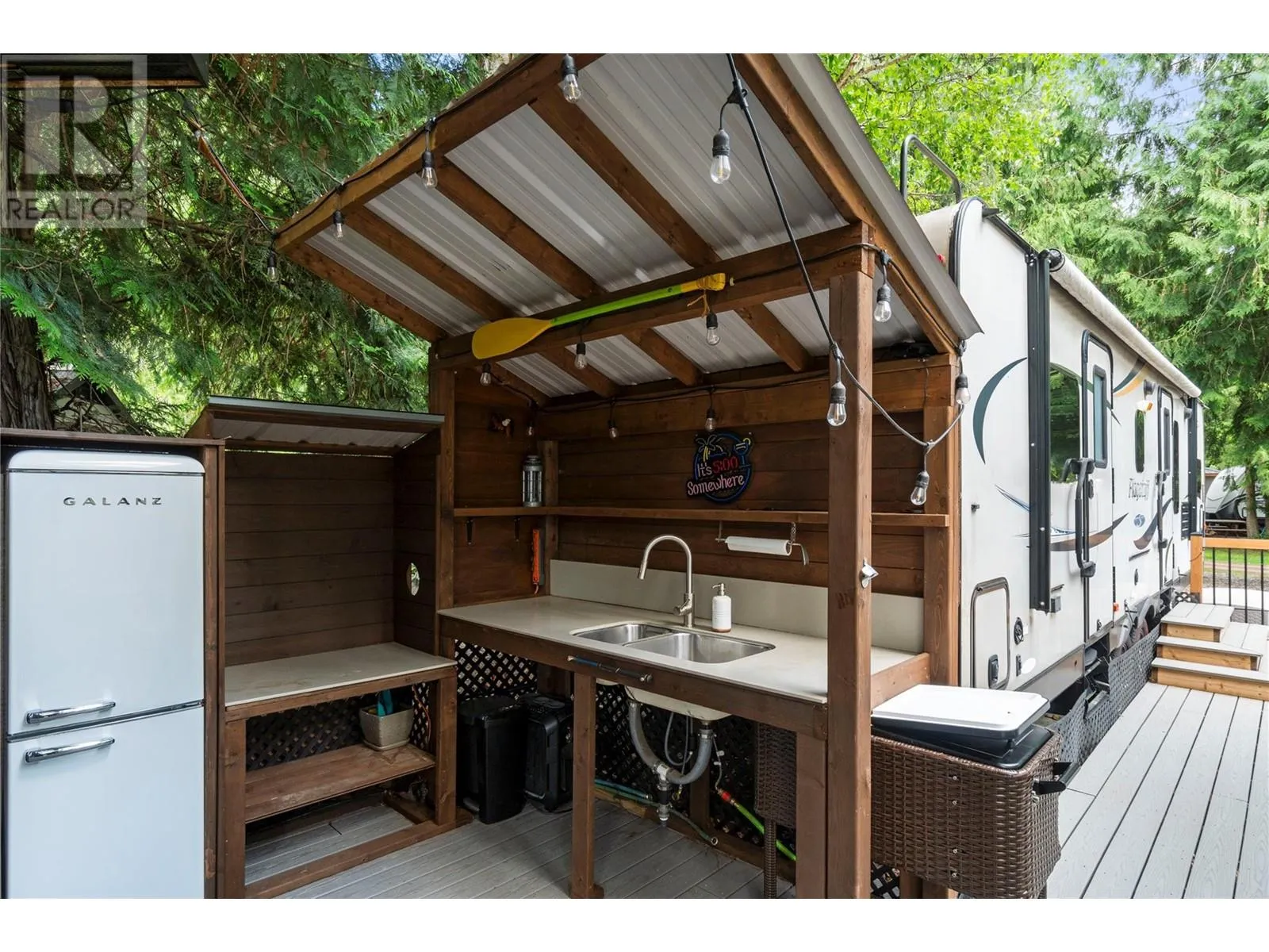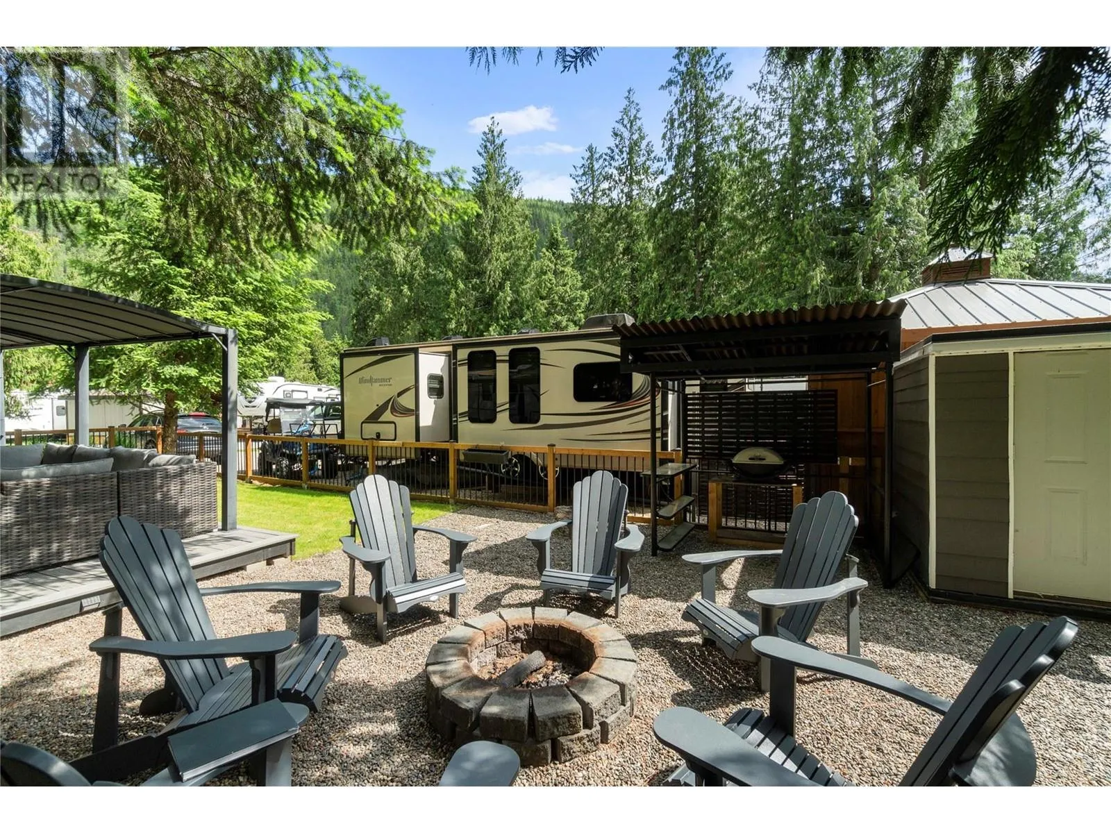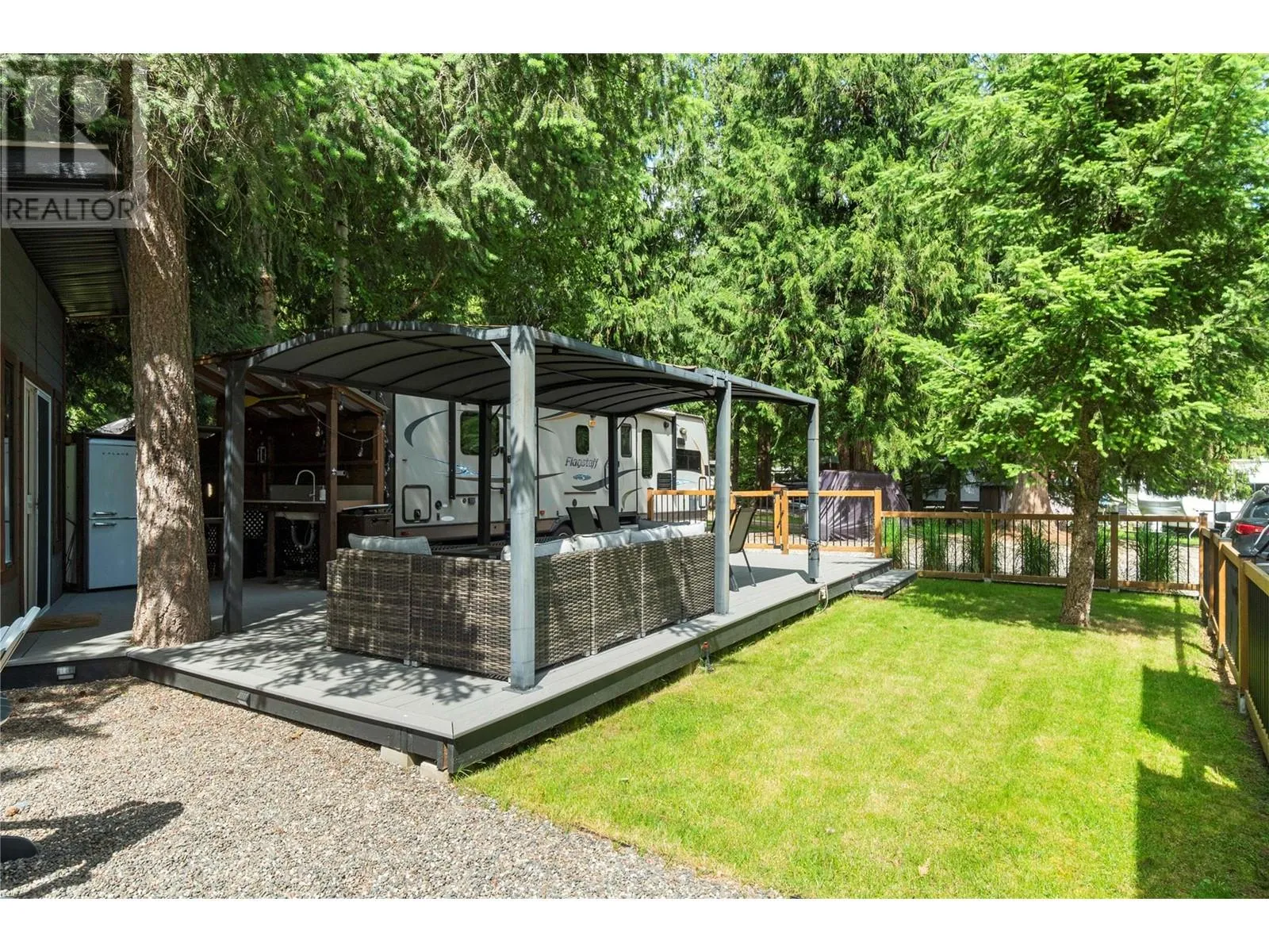 Beautifully landscaped and spacious RV lot in the desirable Shuswap Falls RV Resort offered turnkey with a perfect mix of comfort, privacy, and resort-style amenities. This fully fenced lot includes a 13'x13' bunkhouse (built in 2021), spacious 600 sqft composite deck with a covered gazebo, an outdoor cook shack, a firepit area with privacy fence, and an 8x8 storage shed. The charming bunkhouse finished in tongue-and-groove pine interior is fully insulated and wired, featuring vinyl plank flooring, half-vaulted ceiling with a fan, sliding patio doors and plenty of windows âideal for guests or extra storage. The outdoor kitchen area beside the bunkhouse is plumbed with running water and has 2 fridges, adding convenience and functionality. Ample front parking accommodates multiple vehicles. Located just steps from the heated pool, gym, community gardens, private beach, and volleyball and basketball courts. Annual fees of just $2400+GST cover almost all expenses and include water, sewer, electricity, property taxes, full-time on-site management and more! This riverfront resort is open for 6-month seasonal use and offers an unbeatable vacation lifestyle!! Just minutes away from Mabel Lake, this resort offers a great spot for boating recreation and offers onsite parking for your boat and trailer. 2012 Flagstaff Lite RV is also available for purchase. (id:27476)