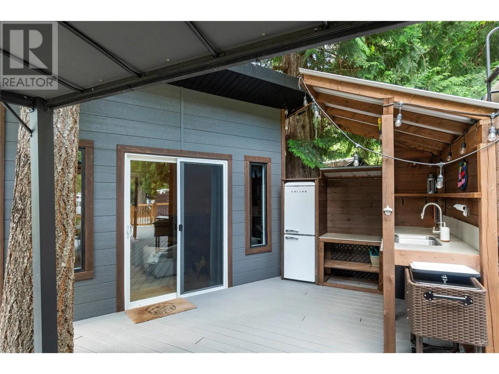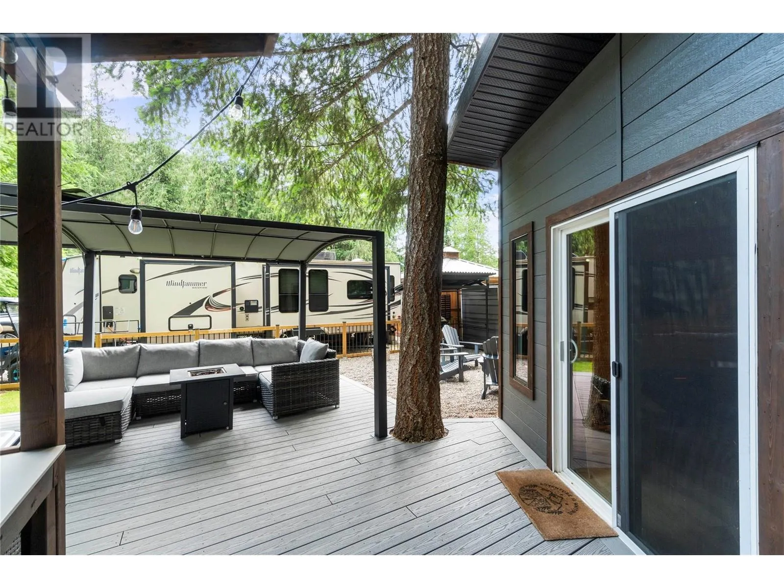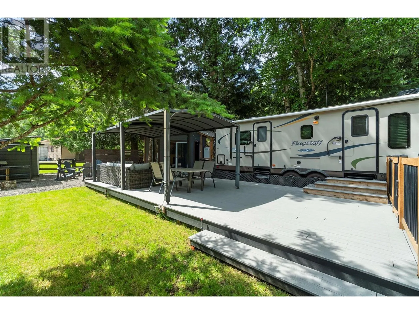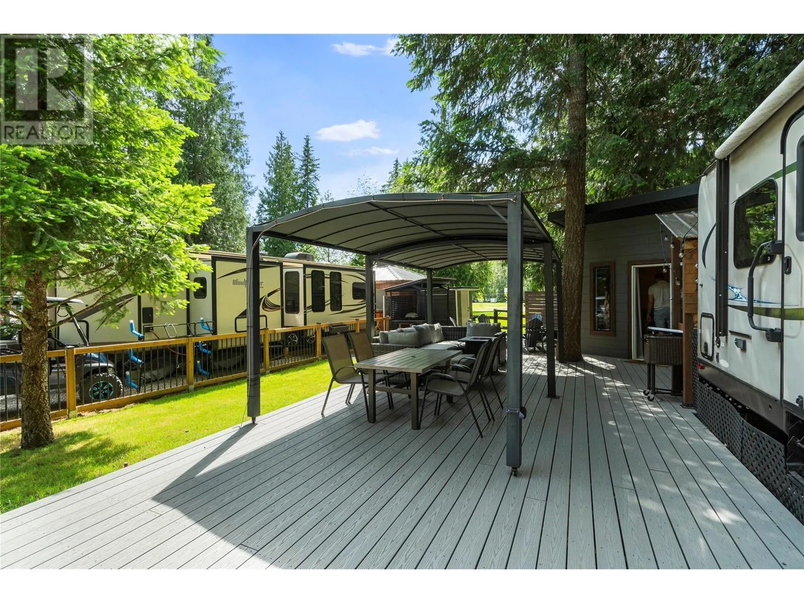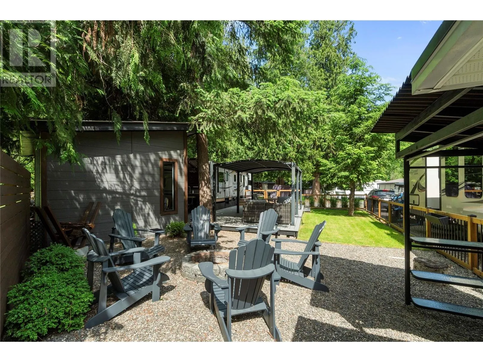 Beautifully landscaped and spacious RV lot in the desirable Shuswap Falls RV Resort offered turnkey with a perfect mix of comfort, privacy, and resort-style amenities. This fully fenced lot includes a 13'x13' bunkhouse (built in 2021), spacious 600 sqft composite deck with a covered gazebo, an outdoor cook shack, a firepit area with privacy fence, and an 8x8 storage shed. The charming bunkhouse finished in tongue-and-groove pine interior is fully insulated and wired, featuring vinyl plank flooring, half-vaulted ceiling with a fan, sliding patio doors and plenty of windows âideal for guests or extra storage. The outdoor kitchen area beside the bunkhouse is plumbed with running water and has 2 fridges, adding convenience and functionality. Ample front parking accommodates multiple vehicles. Located just steps from the heated pool, gym, community gardens, private beach, and volleyball and basketball courts. Annual fees of just $2400+GST cover almost all expenses and include water, sewer, electricity, property taxes, full-time on-site management and more! This riverfront resort is open for 6-month seasonal use and offers an unbeatable vacation lifestyle!! Just minutes away from Mabel Lake, this resort offers a great spot for boating recreation and offers onsite parking for your boat and trailer. 2012 Flagstaff Lite RV is also available for purchase. (id:27476)