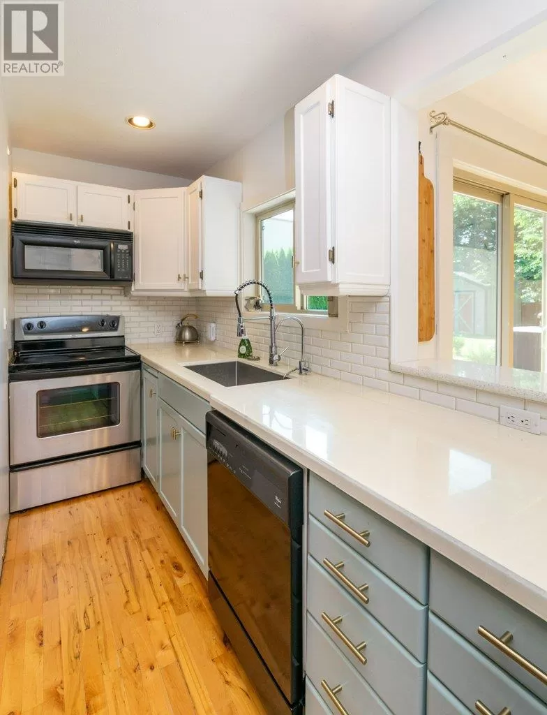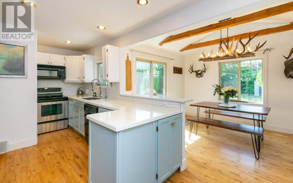 Charming one level rancher in a prime Enderby location, offering convenient walkability. This delightful home boasts over 1,000 sq ft of living space filled with stylish features including vaulted ceilings, new cabinets, hardwood floors, and modern stainless steel appliances. The heated bathroom floor adds a touch of luxury. Maintained inside and out, the property showcases a beautifully landscaped yard with a garden, concrete patio, and fenced privacy. Benefit from a paved driveway for easy parking. With updates including Hardi-plank siding, roof, windows, and electrical system, this home is ready for you to move in and embrace the desirable Enderby lifestyle. (id:27476)