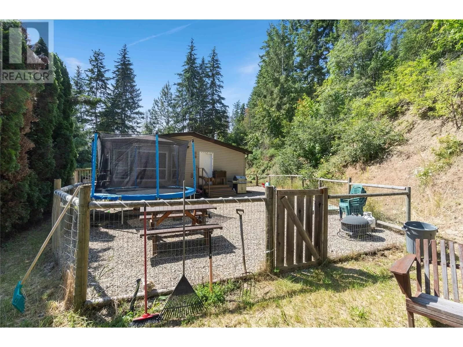 Private and affordable retreat! This 3-bedroom, 2-bathroom manufactured home, built in 2004, offers 1,350 sq. ft. of comfortable living space on a beautifully treed and private 4.52-acre parcel. The heart of the home is the spacious kitchen which is open to the living and dining rooms and features a large pantry and peninsula with room for bar stools. The primary suite is complete with a generous 5-piece ensuite featuring a soaker tub, double sinks, and a walk-in closet. Enjoy serene views of the iconic Enderby Cliffs right from your front porch. Outside, you'll find a fenced backyard, a grassy area ideal for gardens or animals, and plenty of space for parking. The hillside acreage includes trails and open areas to explore, perfect for exploring and enjoying the natural setting. Bonus: the septic system was newly installed in 2020, offering peace of mind for years to come. If you're looking for privacy, space, and an affordable price, this property checks all the boxes. (id:27476)