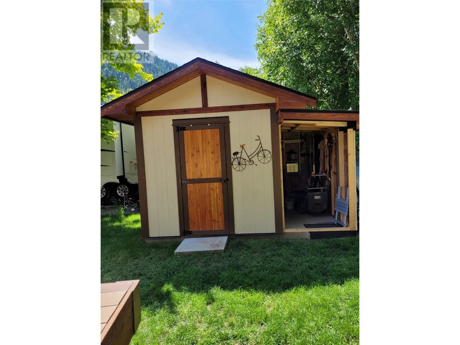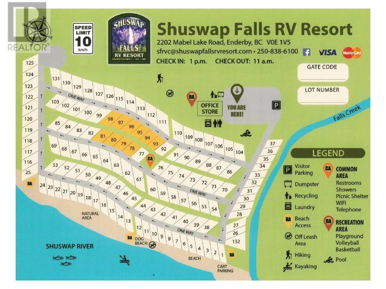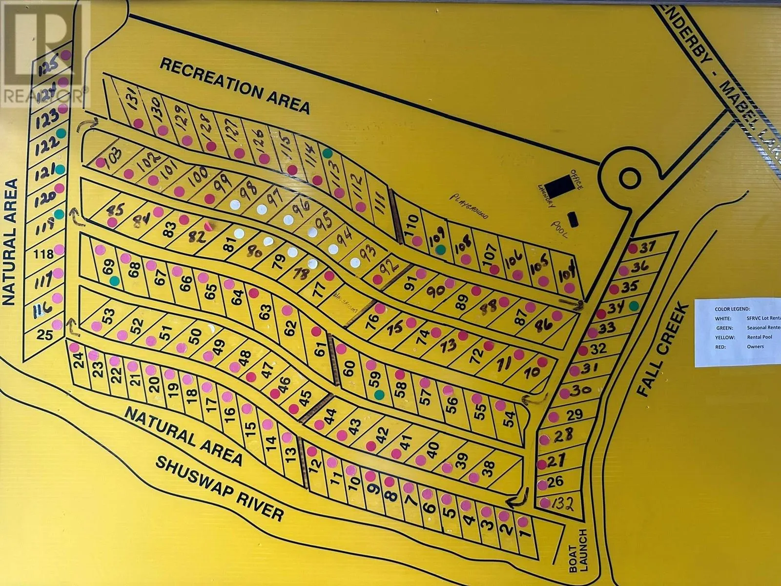 Ownership opportunity and vacation lifestyle in Shuswap Falls RV Resort. Amazing value and lifestyle in this recreational paradise with over 400â of riverfront. The purchase price includes a full service and fully landscaped RV site with considerable improvements of; concrete RV pad, large deck, shed, bunk house/guest room, fire pit, concrete edging, ample parking and lots more. Bring your own RV or for an additional 80k take the existing and fully furnished 36â Jayco Pinnacle. Septic, water, hydro, property tax, management, pool, security, river access, garbage and amenities included with the low $2520 per year maintenance fees. Amenities include outdoor pool, free trailer or boat storage area, volleyball court, basketball court, playground, clubhouse, recreation room, well equipped gym, and more. This property is just 22km east of Enderby and 11 - 12km west of the Kingfisher Community Hall and school, Rivermouth Marina, Mabel Lake Golf Course and Airpark, Mabel Lake Resort & Marina. This area is a recreational paradise with offering 4 seasons of outdoor activities. Secure your spot and new lifestyle for this summer season. (id:27476)