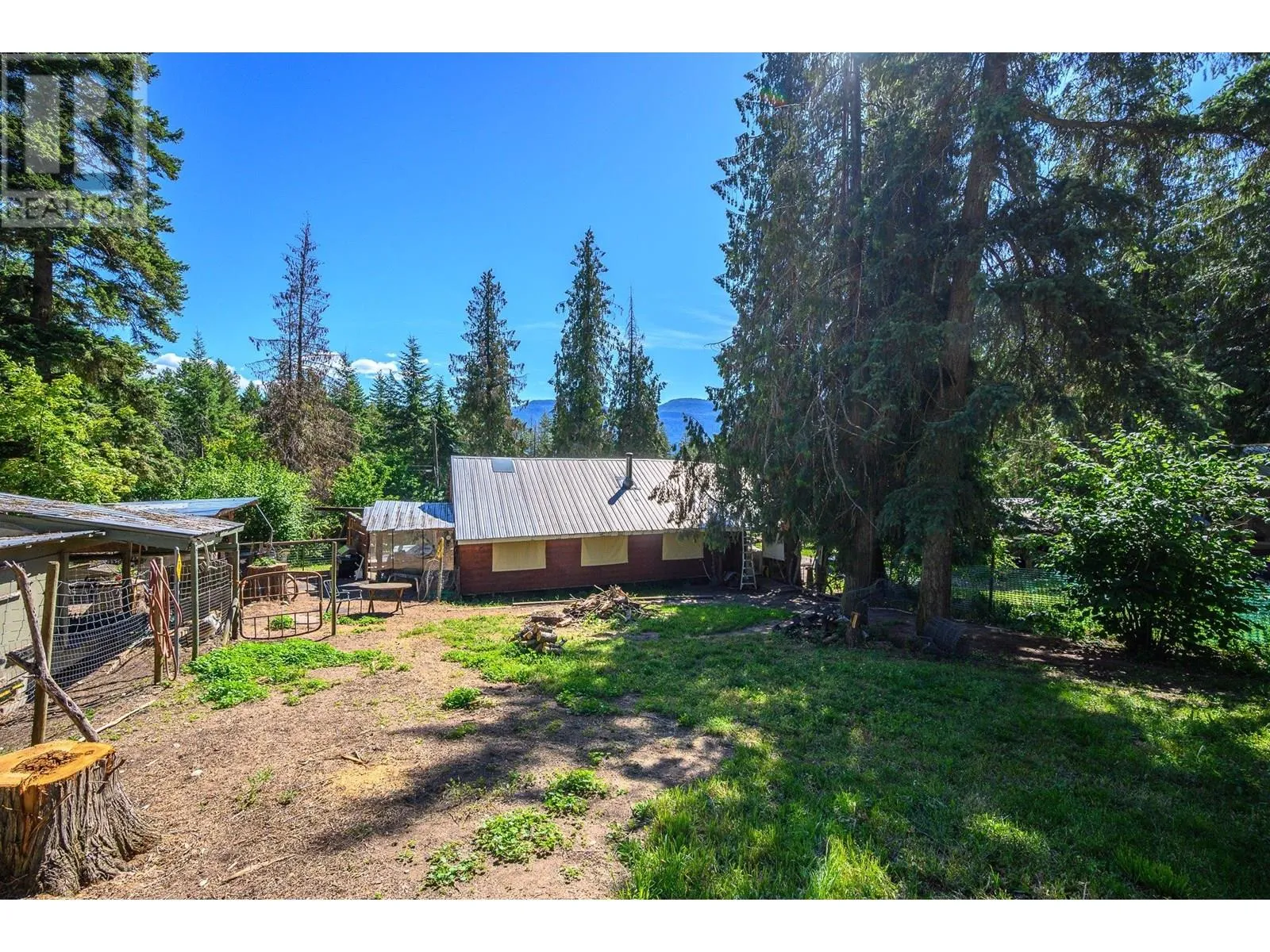 Zoned Small Holdings, an Official Community Plan application has already been submitted for Light Industrial zoning - big potential if youâre thinking beyond the homestead. The property also features a FLAT, buildable area on the top half - ideal for your dream home with a view. Live in one, rent the other, or run a business. It boasts an almost 1000 square foot workshop (220V on a separate hydro meter - hello, home-based business!), covered RV parking, chicken coop, goat / dog pen, and fenced areas for your beloved pets. Extra buildings? You've got options: an 11' x 20' shed, woodshed, rustic outhouse, and a charming cottage-style shed. The cozy 2-bedroom + den log home (den's doubling as the primary bedroom) sits on just over 2.5 acres - right off the highway for easy access, yet blissfully private, with gorgeous views of the Enderby Cliffs. The fenced garden area has healthy black soil. Harvest cherries, plums, and apples from your own trees, then soak your cares away in the 8-person hot tub under the stars or northern lights. Water comes from a 125-ft drilled well (5 GPM) tapping into a clean aquifer (better than bottled water). Whether you're here to live, build, or dream big, this gem serves up rustic charm, flexibility, and serious opportunity. Donât miss your chanceâbook your showing and see it for yourself! (id:27476)
