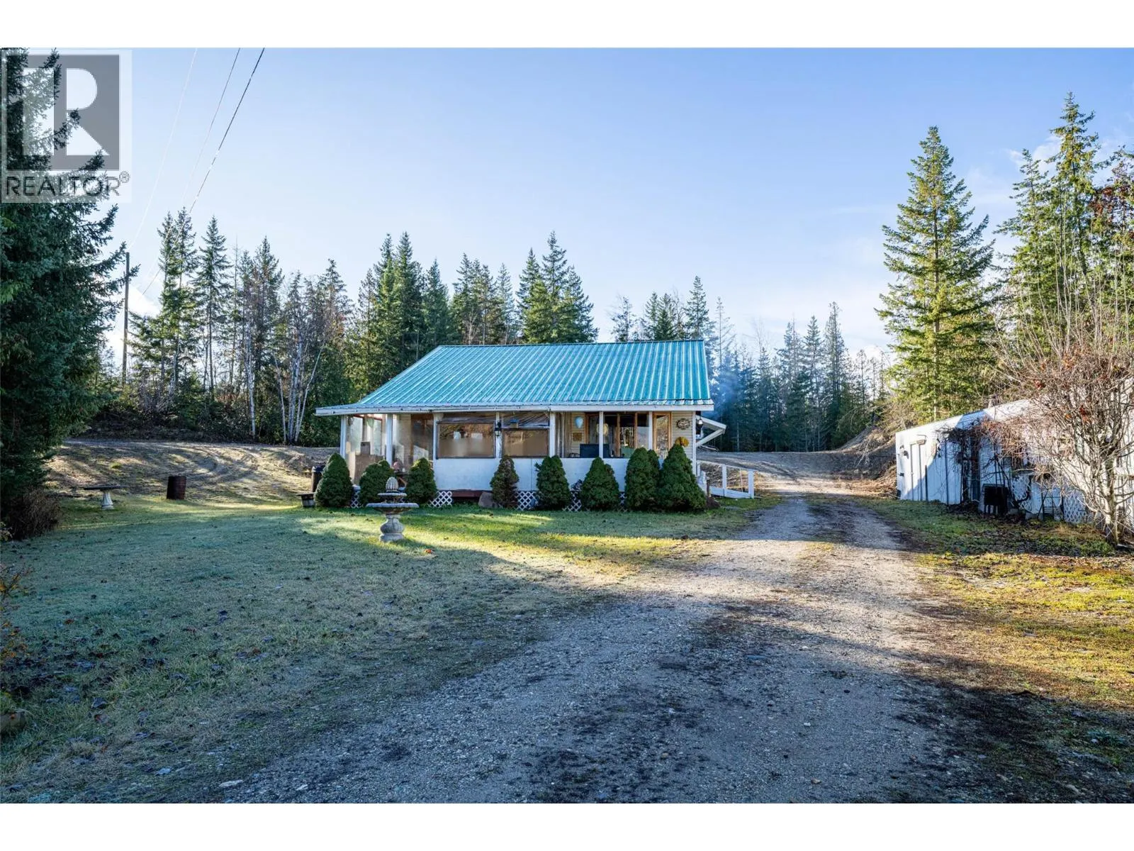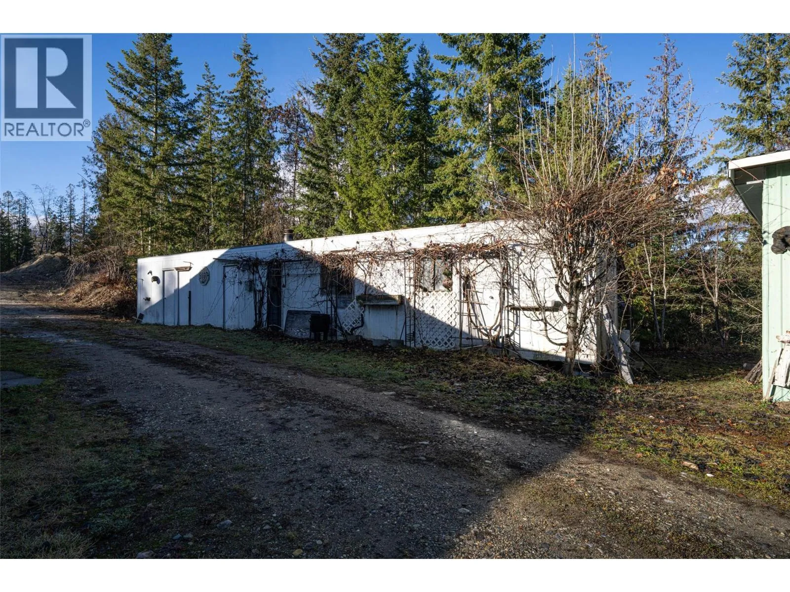 Super opportunity for extended families. Very private 10+acres at the end of a quiet cul-de-sac offers two residences. One is a 3 bedroom, 1 bath 1998 manufactured home and the other is a cute 1 bedroom 860 sqft cottage style home with an additional 200sqft screened in porch. Both residences sit apart from each other for optimum privacy. The manufactured home has a 368 sq.ft. covered deck along the whole length of the east side so a great place for warm summer days. Inside features an eat-in kitchen with a skylight and the main living area has vaulted ceilings. The main bedroom is located at the opposite end from the other two bedrooms. There is a garden area and a couple of little out buildings. The cottage boasts an open floor plan with vaulted ceilings and a generous sized kitchen with a center island. The bathroom has a separate tub and walk-in shower. The screened porch needs a spit and a polish to be absolutely darling and there is an additional covered deck attached. Outbuildings here include a detached single car garage and a huge atco trailer for storage. There is a garden area as well as numerous fruit trees. Water is a well shared with the neighbour via a registered easement and produces 30 gallons per minute. A new well pump was installed in 2024. The property itself is a mix of forest and cleared areas. A hydro easement does run adjacent to the North property line. Located just 5 min away from the highway half way between Salmon Arm & Enderby! (id:27476)
