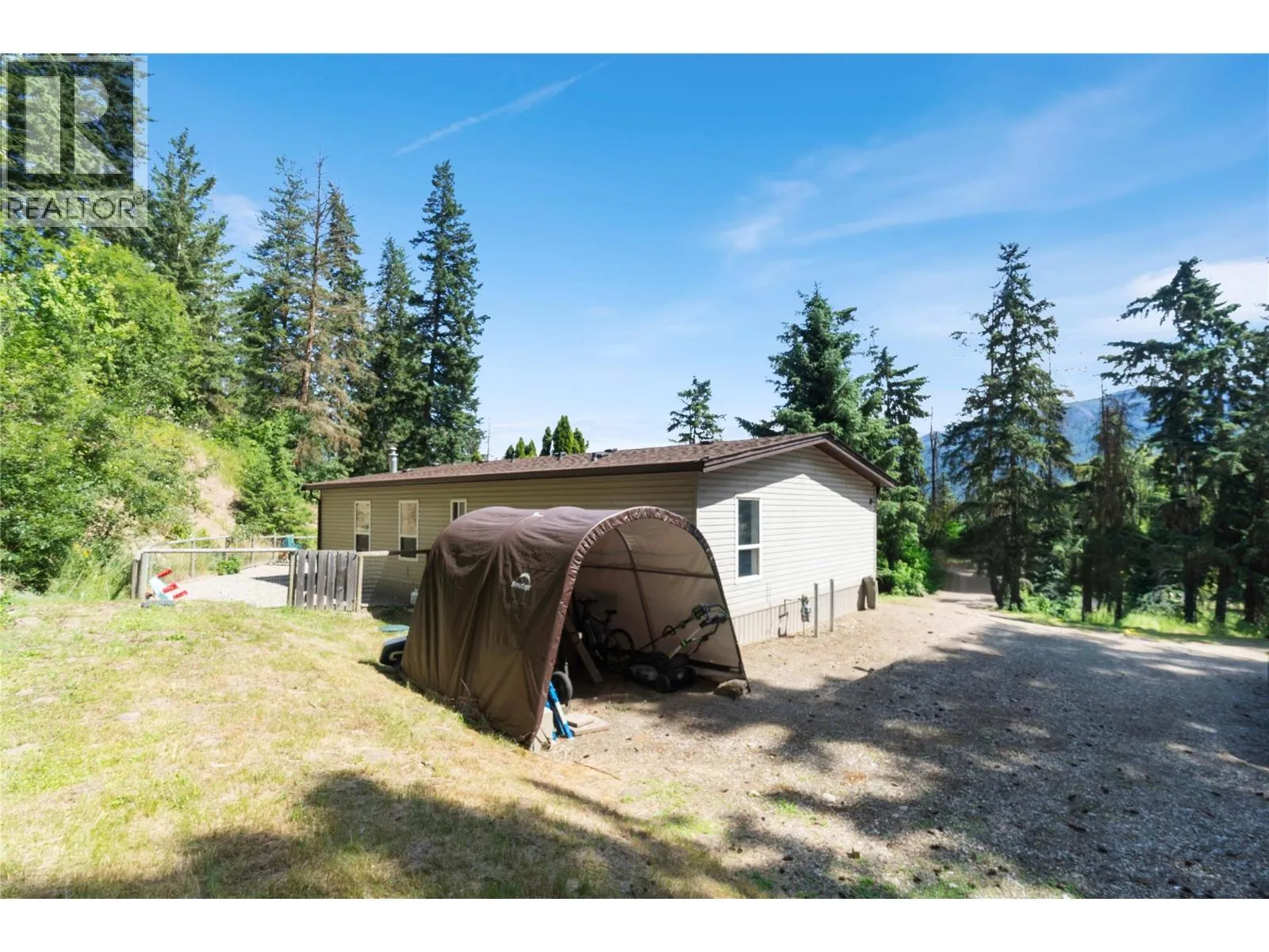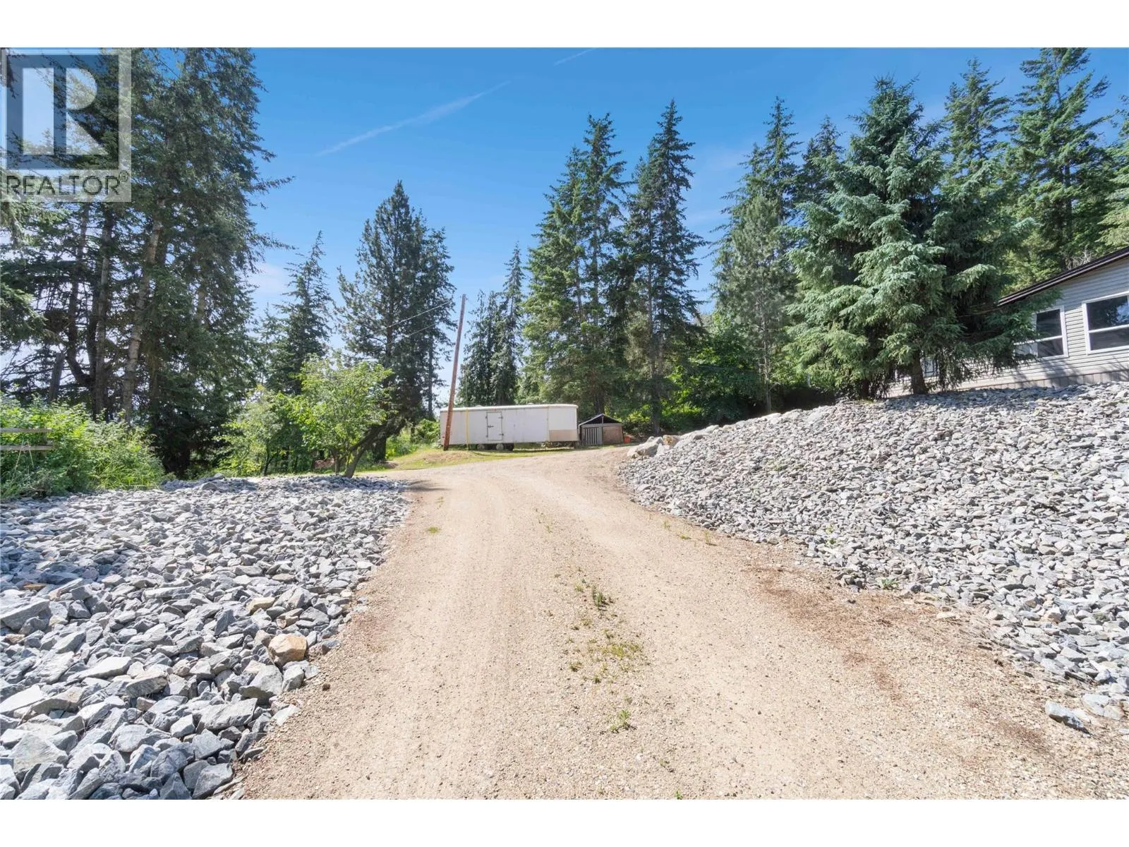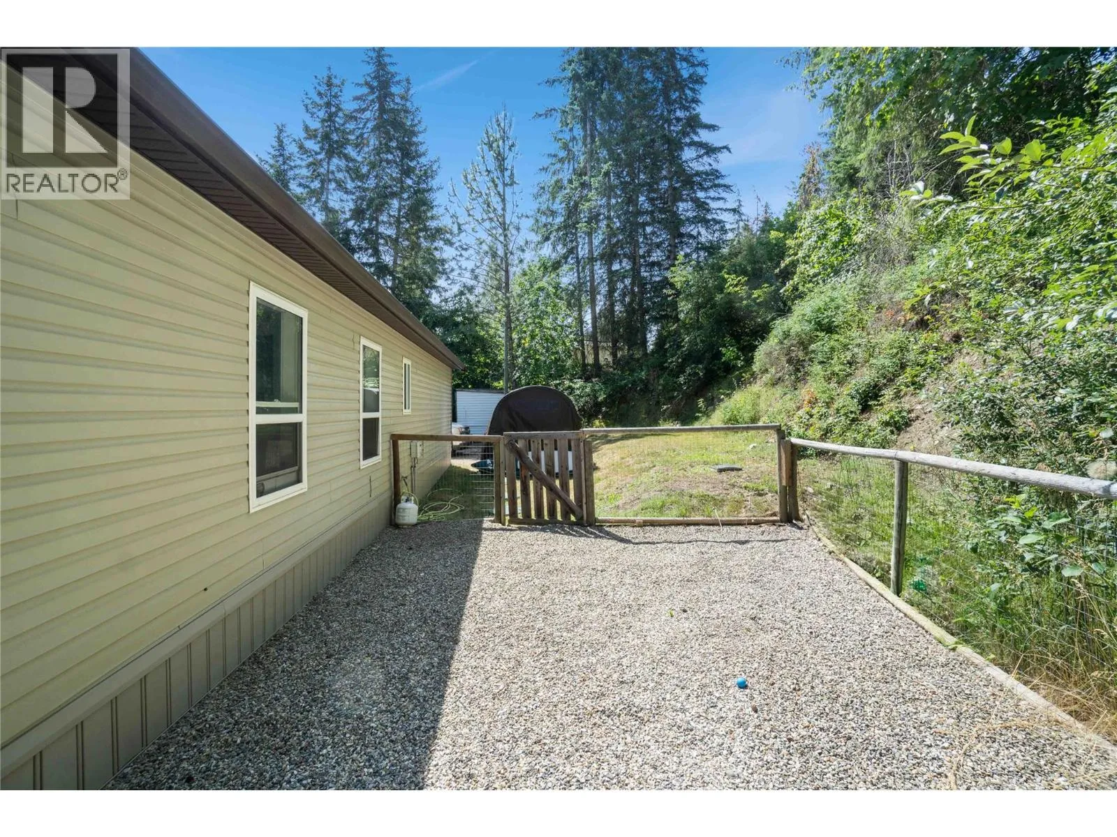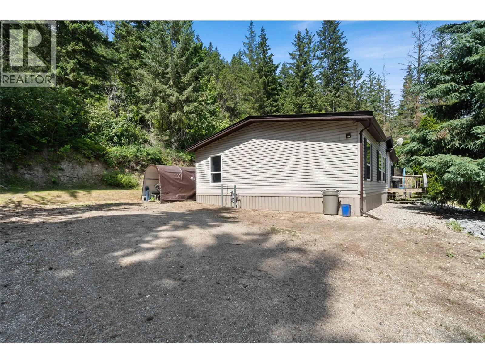 Private and affordable retreat! This 3-bedroom, 2-bathroom manufactured home, built in 2004, offers 1,350 sq. ft. of comfortable living space on a beautifully treed and private 4.52-acre parcel. The heart of the home is the spacious kitchen which is open to the living and dining rooms and features a large pantry and peninsula with room for bar stools. The primary suite is complete with a generous 5-piece ensuite featuring a soaker tub, double sinks, and a walk-in closet. Enjoy serene views of the iconic Enderby Cliffs right from your front porch. Outside, you'll find a fenced backyard, a grassy area ideal for gardens or animals, and plenty of space for parking. The hillside acreage includes trails and open areas to explore, perfect for exploring and enjoying the natural setting. Bonus: the septic system was newly installed in 2020, offering peace of mind for years to come. If you're looking for privacy, space, and an affordable price, this property checks all the boxes. (id:27476)