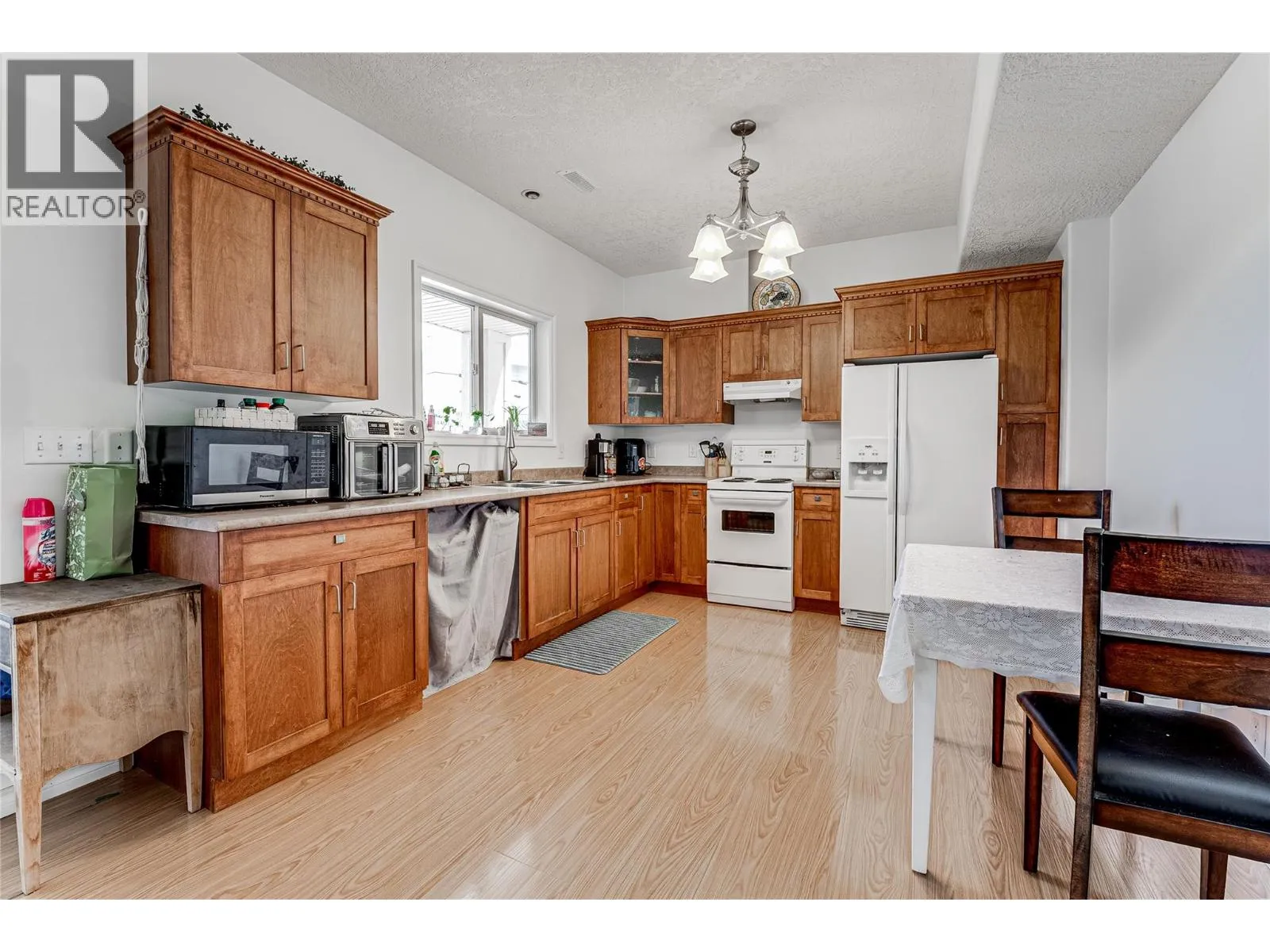 Welcome to this exquisite executive home with a legal suite and potential for a summer kitchen, nestled in the charming town of Enderby, BC.This 3-level residence greets you with meticulously landscaped grounds, lush gardens, and rock retaining walls bursting with vibrant flora. Thegrandeur of the home is evident from the moment you step into the grand entryway, where post and beam accents are sure to impress. The main level features a bright & open floor plan, with a seamless flow into the living area surrounding a stunning stone fireplace serving as thefocal point for gatherings. The adjacent kitchen features beautiful wood cabinetry and new stainless steel appliances. Off the kitchen is a covered patio, providing the perfect spot for outdoor dining while soaking in the breathtaking views of the iconic Enderby Cliffs. The main level also boasts the primary bedroom suite with a luxurious ensuite bathroom. Upstairs, 2 additional bedrooms await, along with an open loft, providing plenty of space for relaxation. Descending to the basement level, you'll find a spacious rec. room complete with a wet bar, an ideal space for entertaining guests or convert into a summer kitchen. The basement also includes a 1-bdrm self-contained suite to use for guests or rental income. Outside, the meticulously kept grounds continue to impress, with a hot tub. Situated close to all amenities this executive home offers the perfect blend of luxury living and natural beauty in the heart of Enderby. (id:27476)