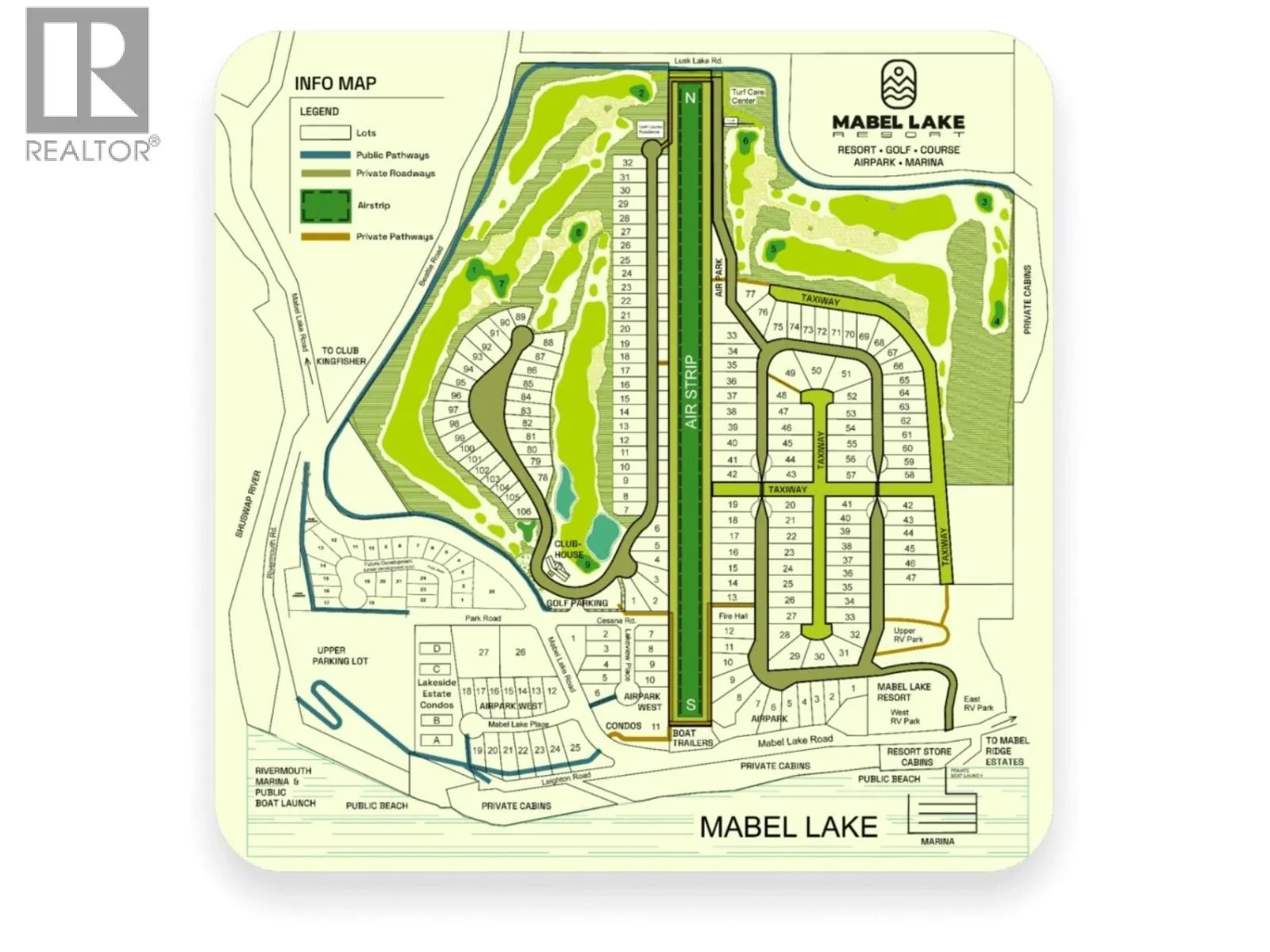One of the last full sized building lots backing on to the 9th fairway of the Mabel Lake Golf Course, beautifully landscaped. There are 2 separate water/power/septic RV hookups on the lot, as well as a small garden shed & a custom steel circular fire pit. The lot has been cleared, leveled & filled with crush for easy maintenance should you wish to continue RV living. If that's not for you there is plenty of space to build your dream home. Mabel Lake Resort & Marina is one of BC's premiere family vacation destinations offering a full selection of activities & accommodations-there's even a Pickle Ball Court for extra family fun! The Golf Course is designed & built by Les Furber, a par 36, regulation size 9-hole public golf course, boasting fairways winding through mature forests, rock walls, ponds & paved cart trails nestled between mountain ranges & the seasonal clubhouse to enjoy after a round or enjoy a great meal on the deck overlooking the course. The resort is a year round destination with a walking & cycling trail system & there's fishing abound in pristine Mabel Lake including Lake, Rainbow, Bull Trout & even wild Salmon for a short season & the Kokanee arrive in the hotter summer months. Residents enjoy Snowmobiling during the winter months. The property is a one hour drive from Vernon, 30 minutes from Enderby & 1.5 hours to the Kelowna International airport. Truly a property to be enjoyed by the whole family, year round. Don't delay paradise awaits! (id:27476)