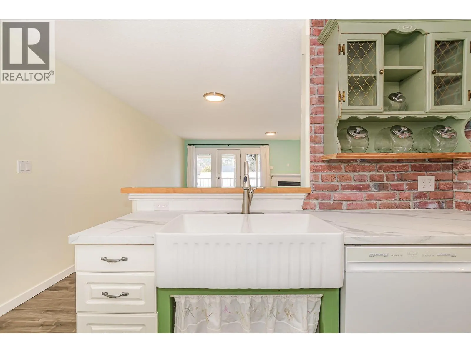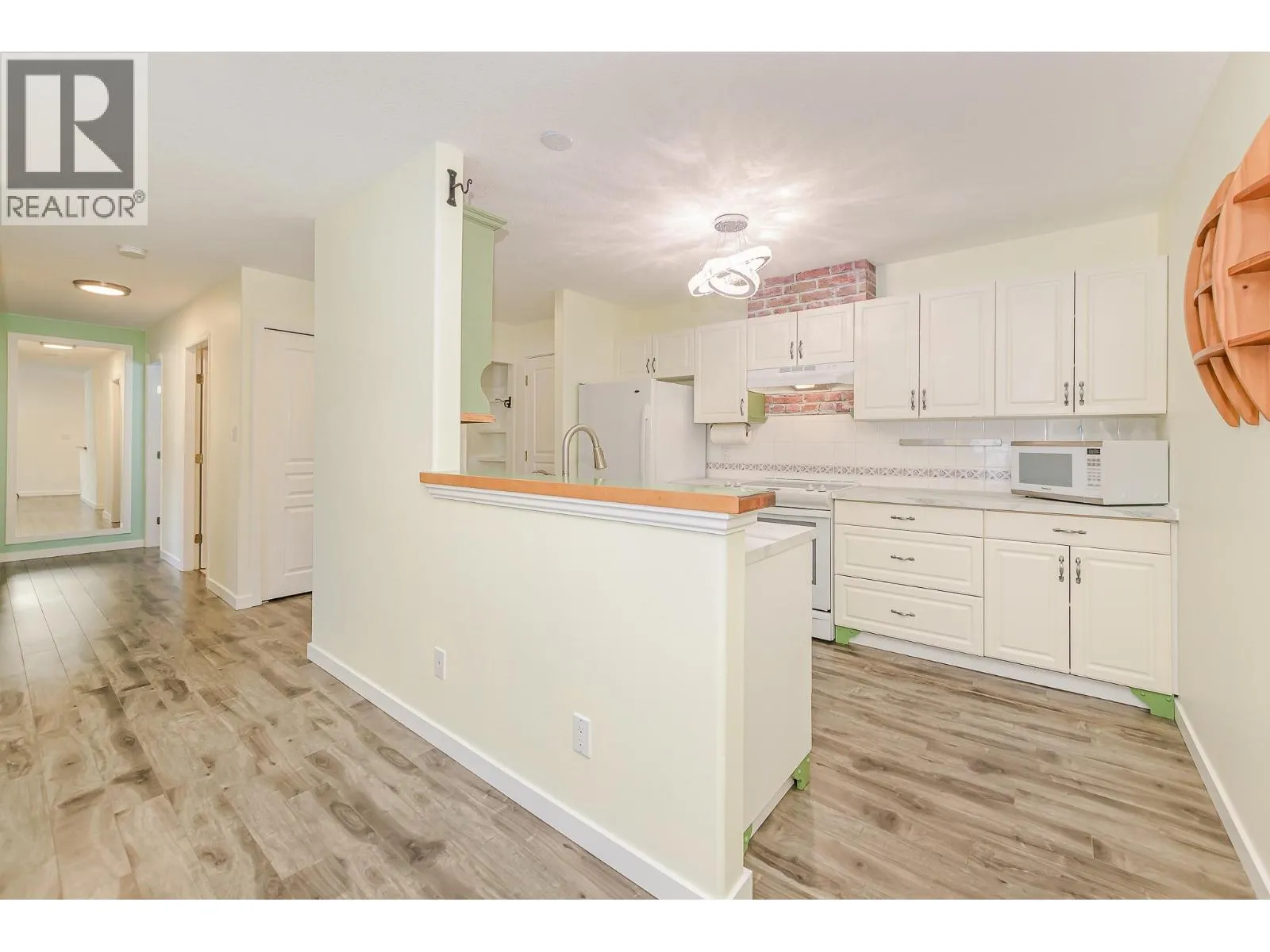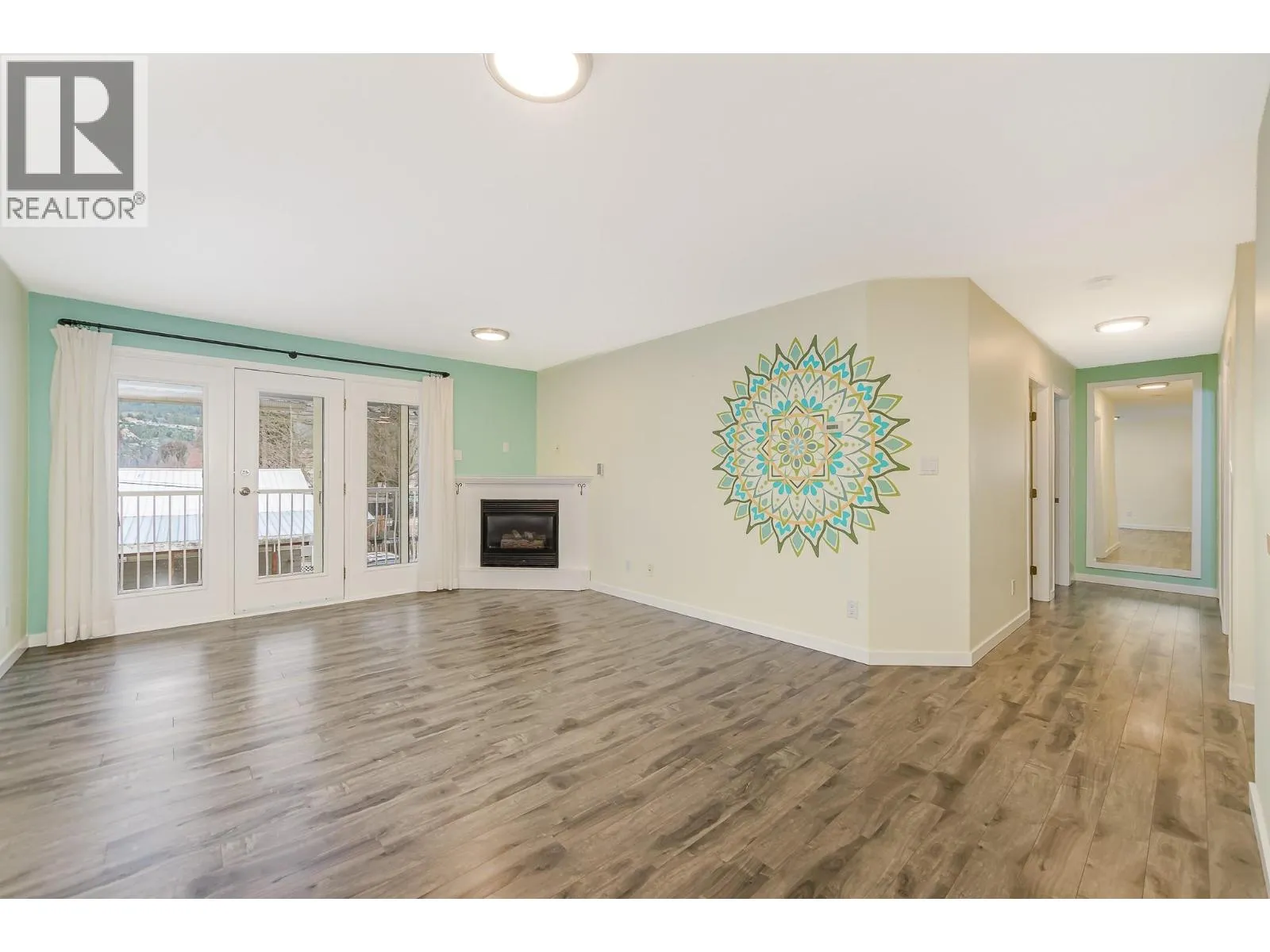 Welcome to this bright and inviting home offering 2 bedrooms, 2 bathrooms, and an abundance of functional living space in a highly desirable location. Large windows fill the home with natural light, enhancing the open and comfortable layout. The updated kitchen features stylish custom tile work, crisp white cabinetry, a charming breakfast nook, newer appliances, and a classic farmhouse sinkâperfect for both everyday living and entertaining. The living area is warm and welcoming with a built-in natural gas fireplace accented by decorative stone, along with the added comfort of electric in-floor heating and durable laminate flooring throughout. Both bathrooms have been tastefully updated, creating a clean and cohesive feel. Step outside through the garden door to your east-facing covered balcony (14' x 5'), an ideal spot to enjoy your morning coffee or unwind at the end of the day. The spacious primary bedroom offers two closets and a private ensuite, complete with coordinated tiled countertops and tub surround. Additional highlights include generous storage throughout and a 6 year old electric hot water tank. Perfectly situated, this home is just steps from scenic walks along the Shuswap River and only a short stroll to downtown shopping, dining, and amenities. A wonderful opportunity to enjoy comfort, convenience, and lifestyle all in one! (id:27476)
