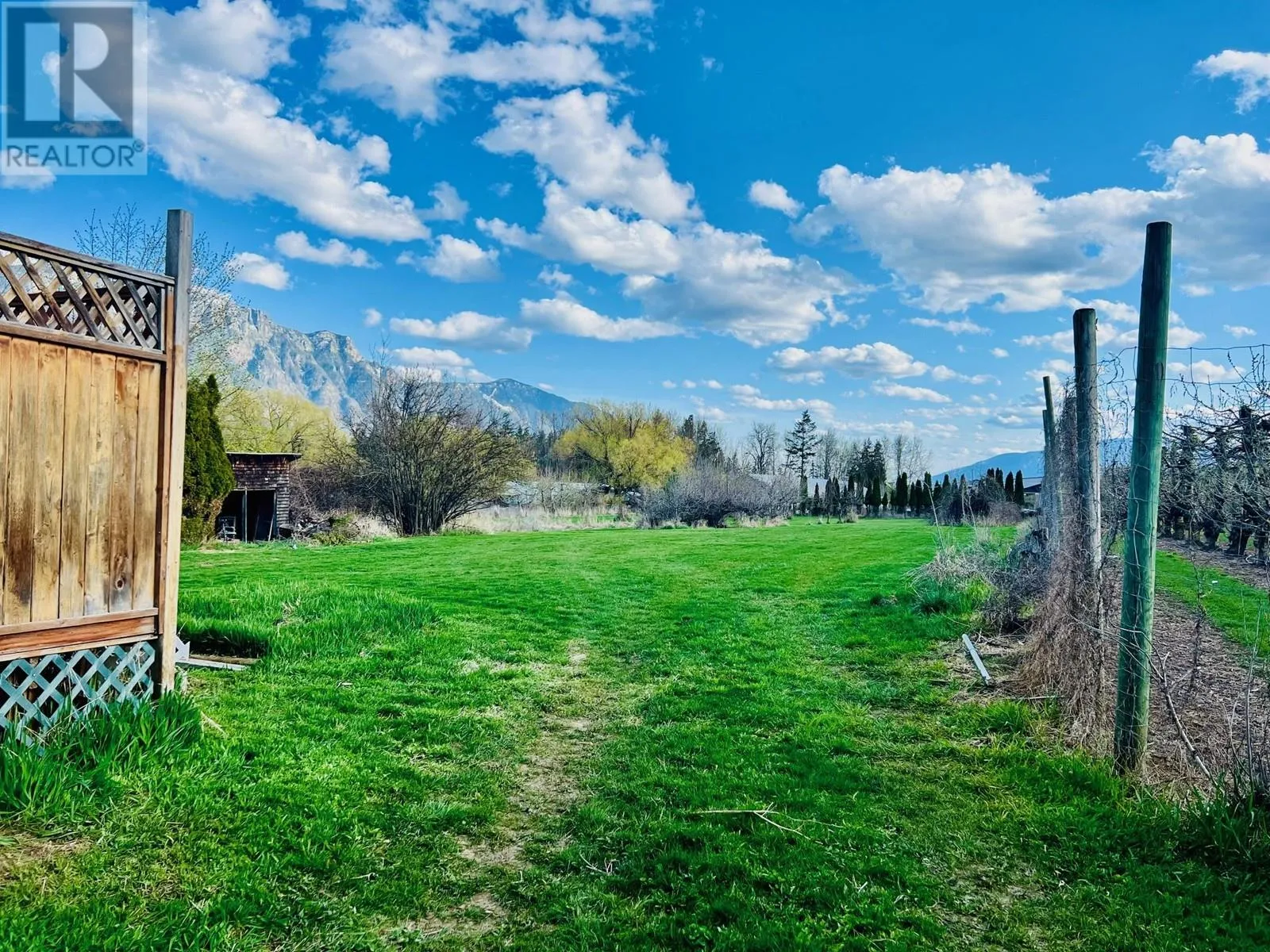 Priced below assessed value, this Erickson property is brimming with potential! Whether youâre dreaming of a hobby farm, market garden, orchard, or greenhouse, this level 1.56-acre parcel offers endless opportunity. The spacious one-level modular home features over 2,200 sq ft of living space with 3+ bedrooms and 3 bathrooms, ideally located near the front of the property for maximum land use. Fruit lovers will enjoy the variety of fruit trees including cherry, apple, pear, peach, and apricot â plus well-established grape vines. Outbuildings include a double carport and a 15âx22â Quonset, perfect for equipment or toy storage. Inside, youâll find an open-concept layout with a generous kitchen complete with large island and ample cupboard and counter space. The spacious primary bedroom is nice and bright with a walk-in closet and ensuite with jetted tub and separate shower. A den offers potential for a home office or fourth bedroom, and a partial basement with exterior access adds extra storage options. The front gardens are just waiting to be brought back to life. Tucked away in a private setting, this property offers peaceful living with scenic Skimmerhorn mountain views right from your backyard. The property is also located in an ideal location, being close to an elementary school, wineries and all of the amenities that Creston has to offer without the town taxes! (id:27476)