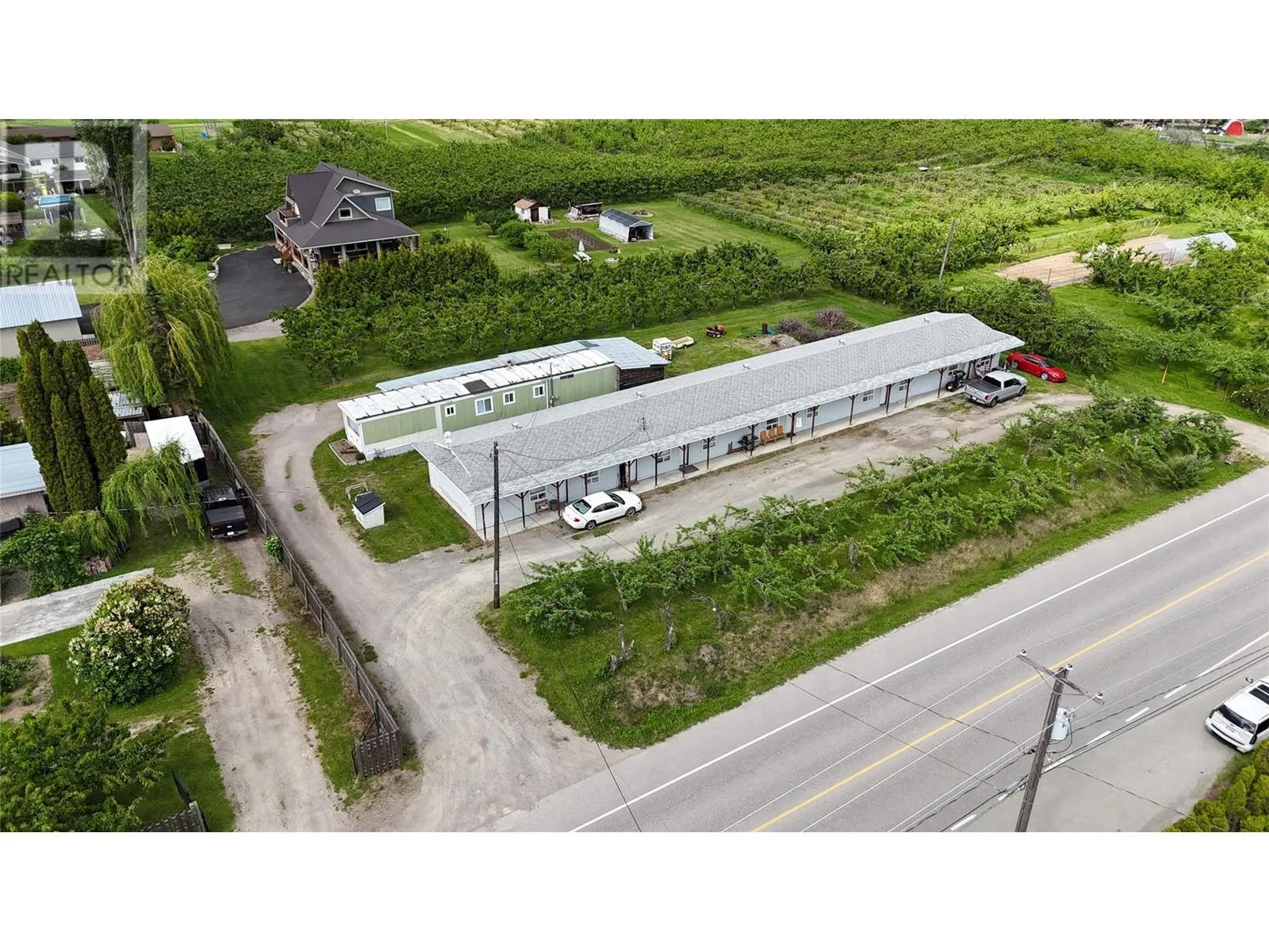 Located in Erickson this 5 unit (2 bedroom) apartment building is fully tenanted with revenues just under 50k per year. 100 amp service to each unit, individual hot water tanks, Electric Baseboard heating. Laundry hook ups in Mechanical room. All tenants on month to month . Bonus mobile home tenant ( owned by tenant long term retired). Natural gas to property but hooked up to mobile. Zoned R6 and in the ALR. 75 Cherry , 25 Apple trees with revenues of app. $10k per year in good year.$5456.00 for irrigation and water 2025. Terrific investment with long term potential! Call your REALTOR® today! (id:27476)