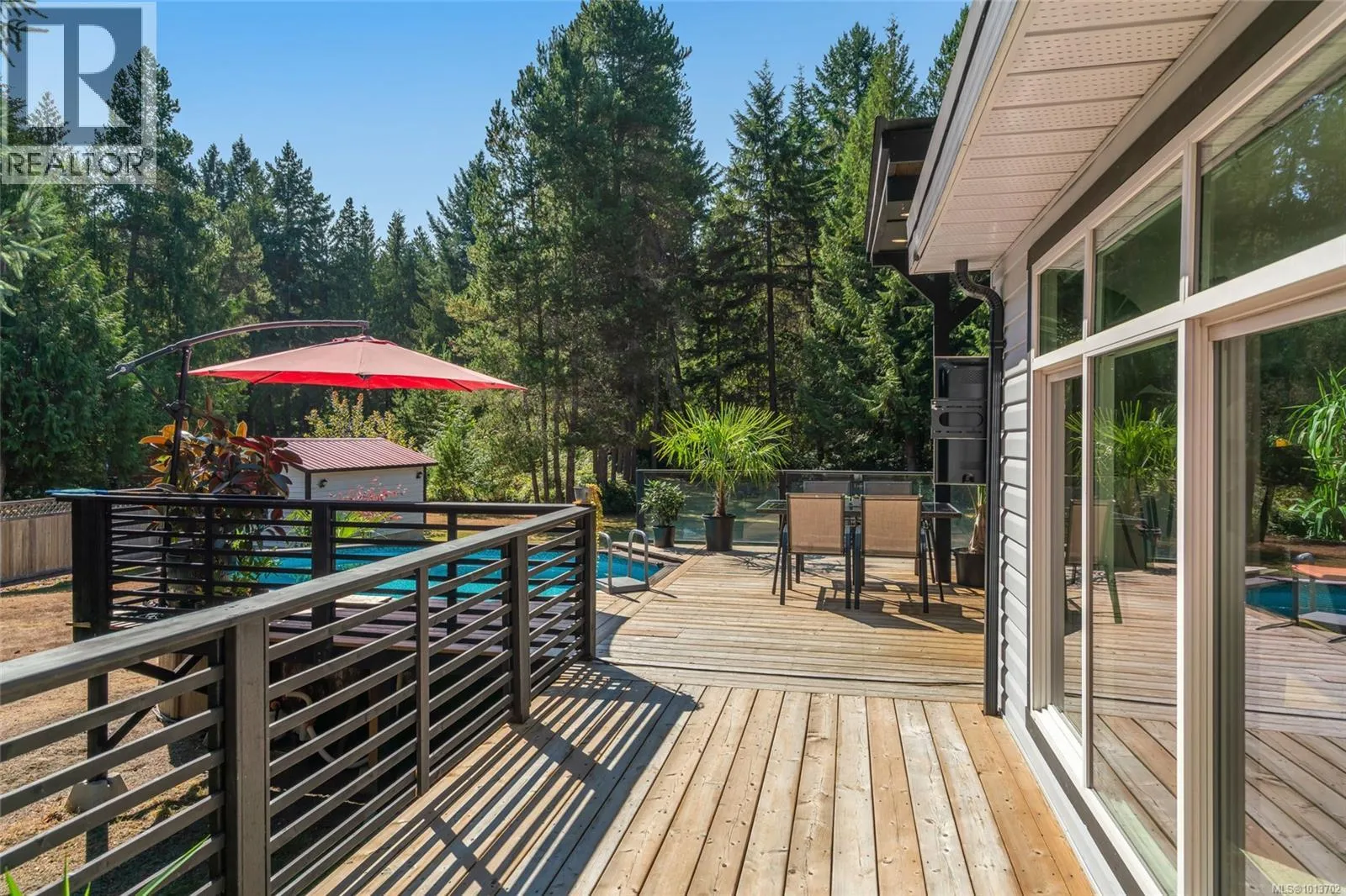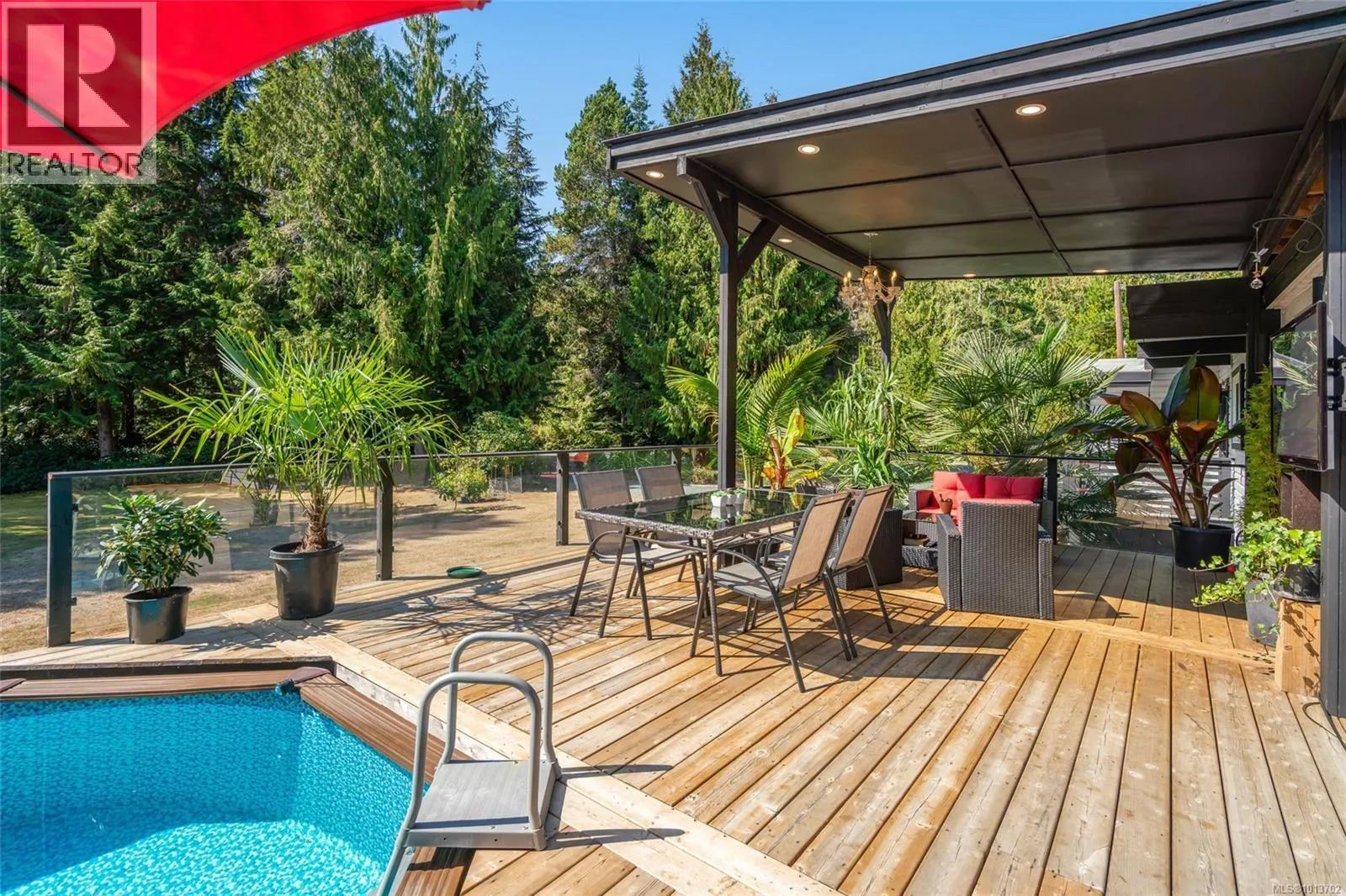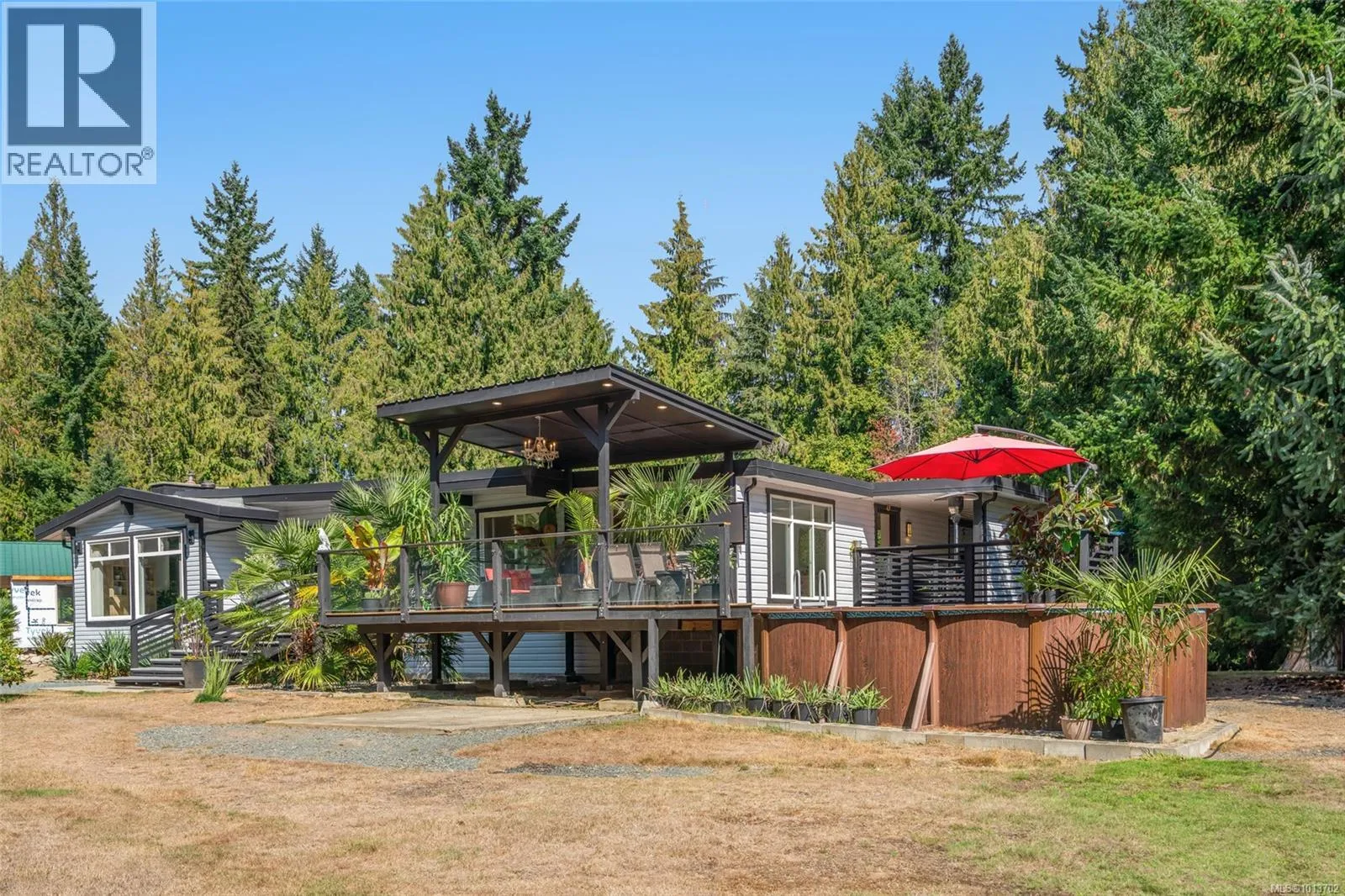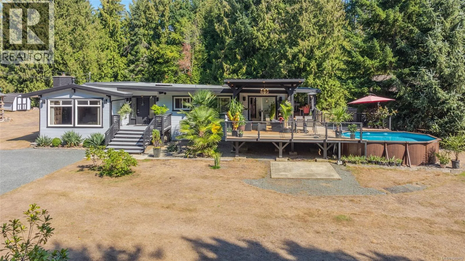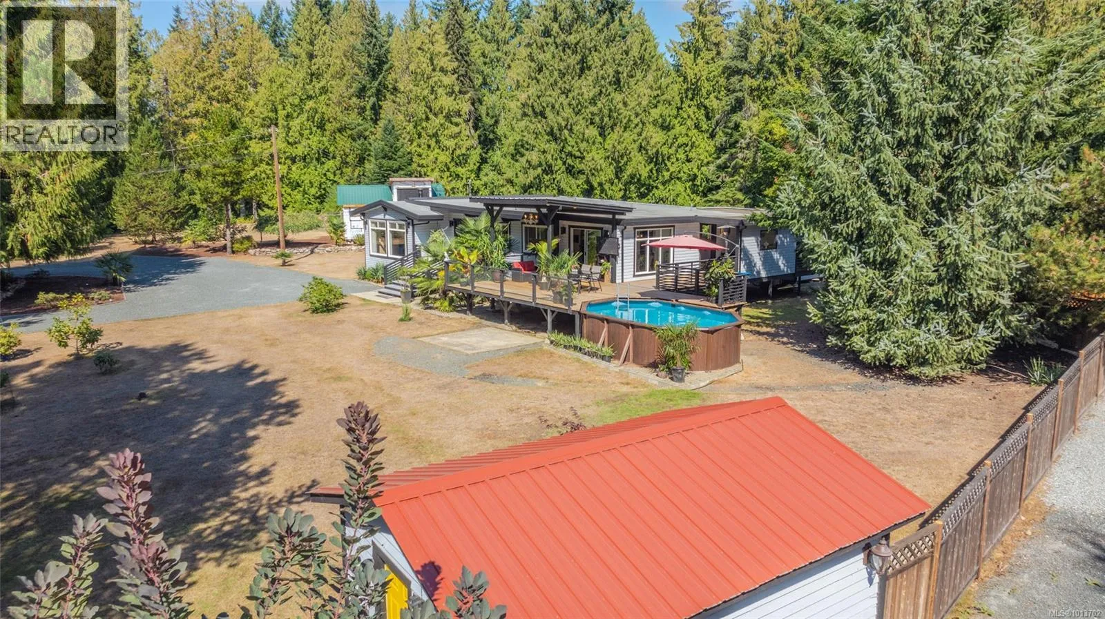 Welcome to this private, sunny 5-acre estate located just steps from Englishman River Falls, offering the perfect blend of comfort, income potential, and outdoor adventure. This unique property features two fully renovated homes, a serviced RV pad, a detached workshop, and extensive upgrades throughoutâmaking it a truly rare Vancouver Island opportunity. The main residence is a beautifully updated 1,755 sq ft, 3-bedroom, one-level rancher. The open layout is warm and inviting, highlighted by a cozy wood stove and modern finishes throughout. A stunning partially covered patio overlooks the pool and gardens, creating an ideal space for year-round entertaining and relaxation. The second home offers 1,431 sq ft of renovated living space, with 4 bedrooms, a private yard, and its own driveway. Perfect for extended family, a guest house, or long-term rental, it also serves as an excellent mortgage helper. A private RV pad with hydro, power, and a 500-gallon septic tank provides yet another revenue opportunity or space for visiting friends and family. The property is thoughtfully designed with two separate driveways for privacy, plus a lovely pond, mature fruit trees, palm trees, and large sunny lawns with plenty of room for kids and pets. Practical upgrades include a new electrical system with 485 amps of power, new heating systems, app-controlled heating in the main living room, and modernized interiors throughout. A large spacious detached workshop adds flexibility for hobbies, storage, or studio use. This estate offers the best of both worldsâjust a 5-minute walk to waterfalls, hiking, and mountain biking trails, yet only a 10-minute drive to shopping and amenities. Whether youâre seeking a family retreat, an investment property with multiple income streams, or a private oasis surrounded by nature, this home delivers. (id:27476)