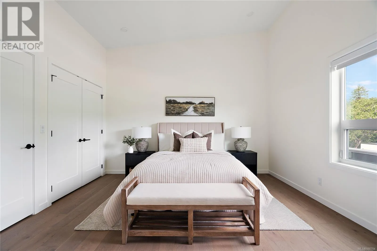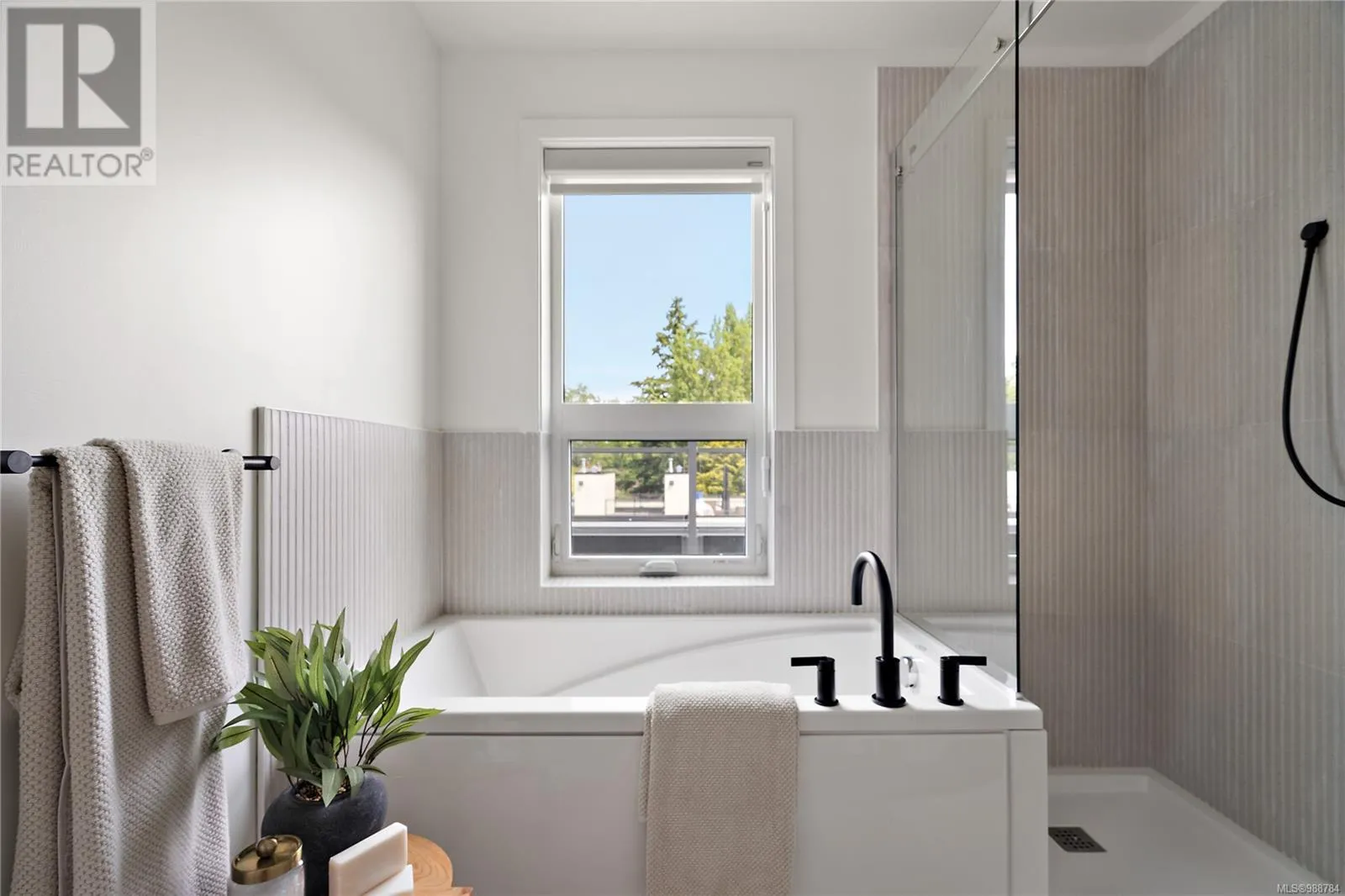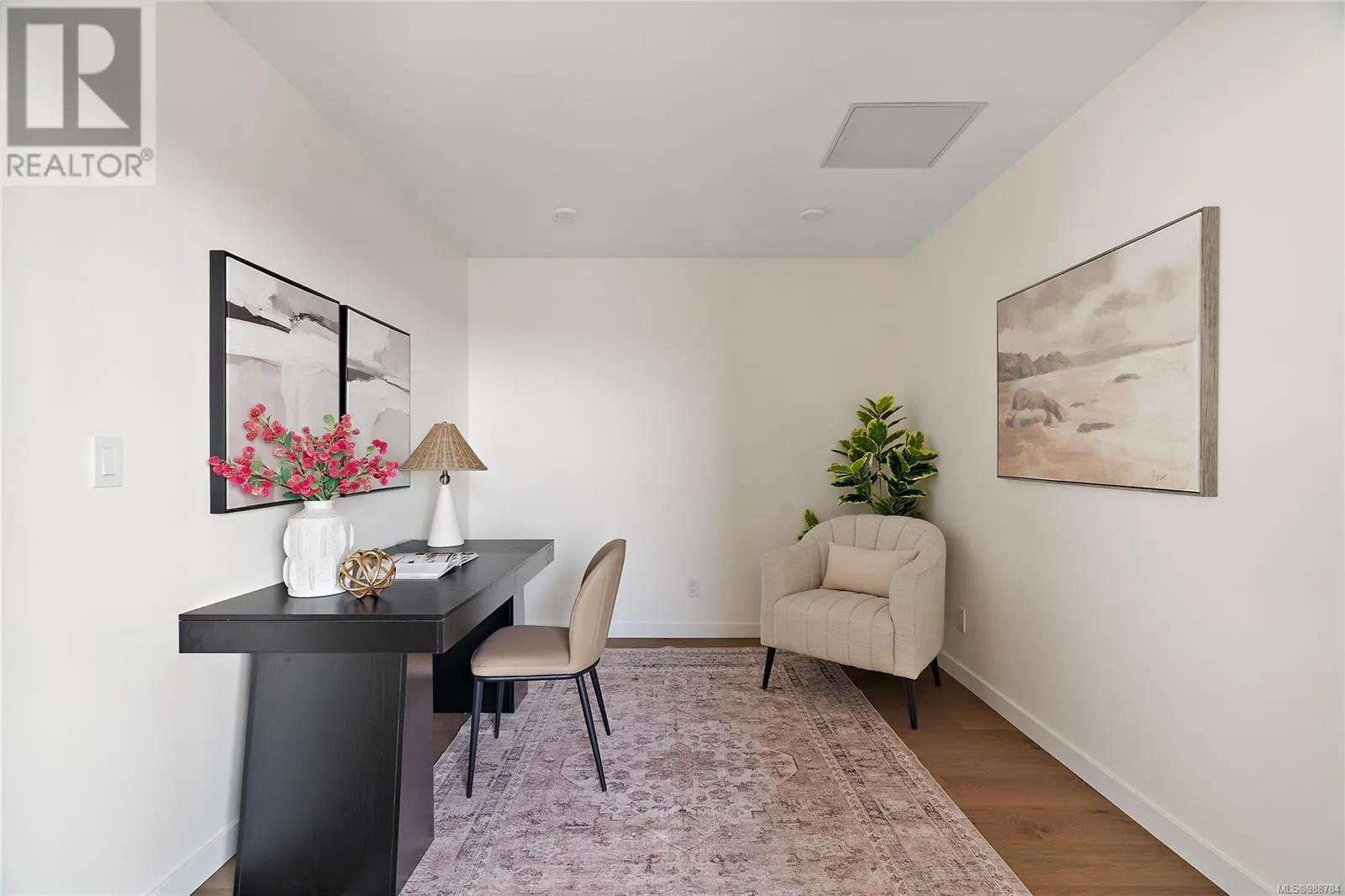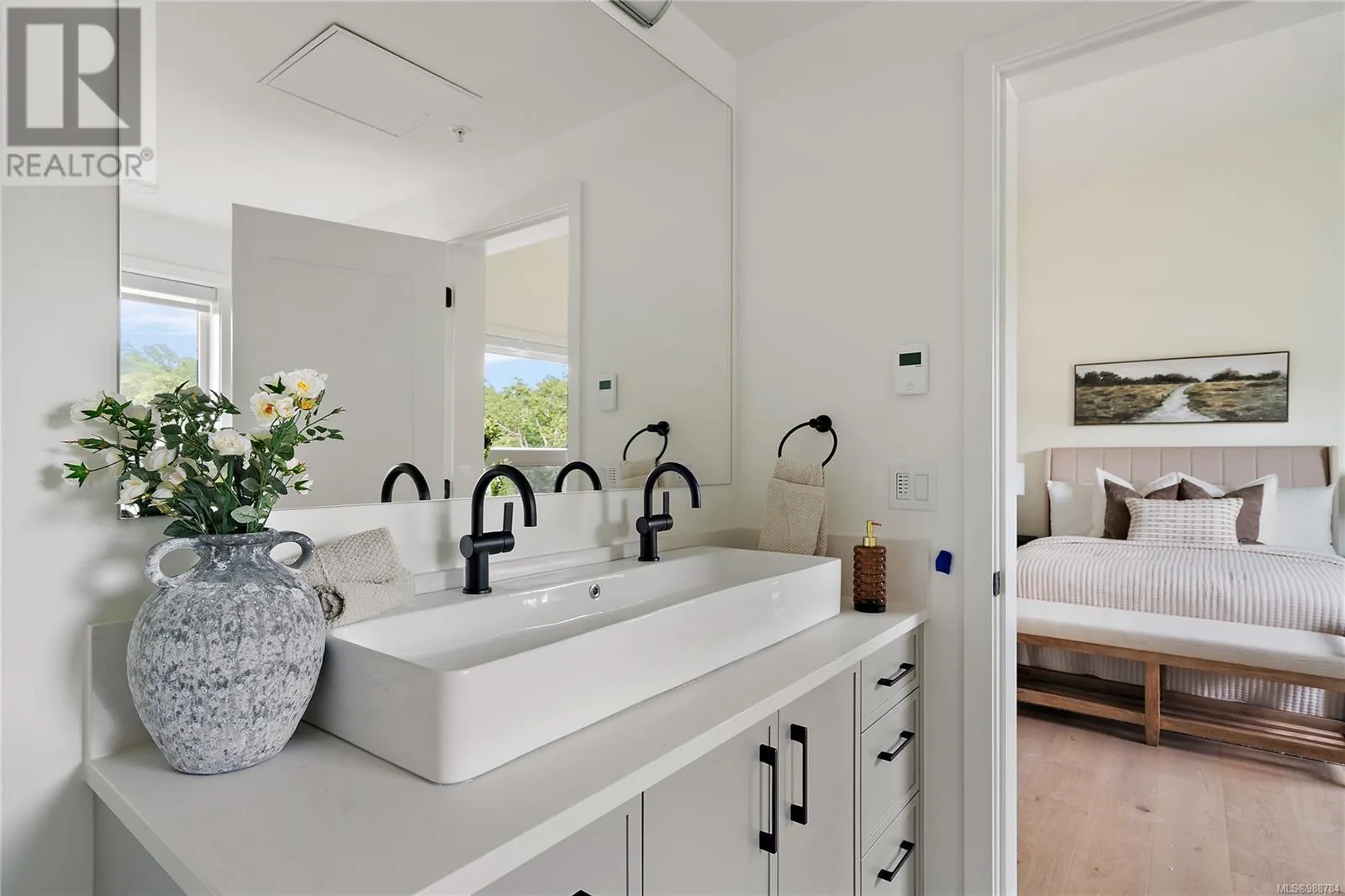 Step into a life of luxury in the south facing 2 bed + den, 3 bath Bellus penthouse unit at The Proxima. This unit truly has it all from the massive 621 sqft, sun-drenched balcony w/ straight view down to the ocean, to the soaring vaulted ceilings, oak engineered hardwood flooring, and two parking spots. Superior space planning & modern finishes by Spaciz Design, the kitchen offers two-toned cabinetry, quartz countertops, a large waterfall eat-in island, and top of the line stainless steel Fisher & Paykel appliances. Located in the heart of Esquimalt Village, The Proxima is perfectly positioned for a life full of adventure, experiences, & amenities w/ Saxe Point Park, local breweries, Esquimalt Market, shopping, & the Archie Browning Sports Centre just a stoneâs throw away. Brought to life by GT Mann Contracting, whether relaxing on the sunny balcony, working out in the state-of-the-art gym, visiting the atrium or courtyard, residents can live life their way at The Proxima. (id:27476)