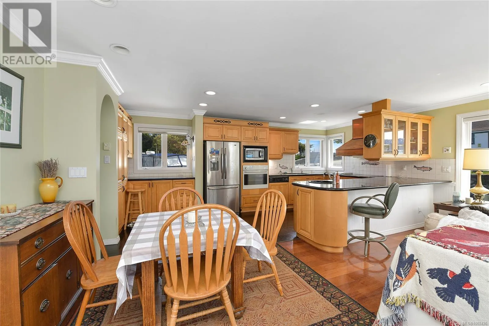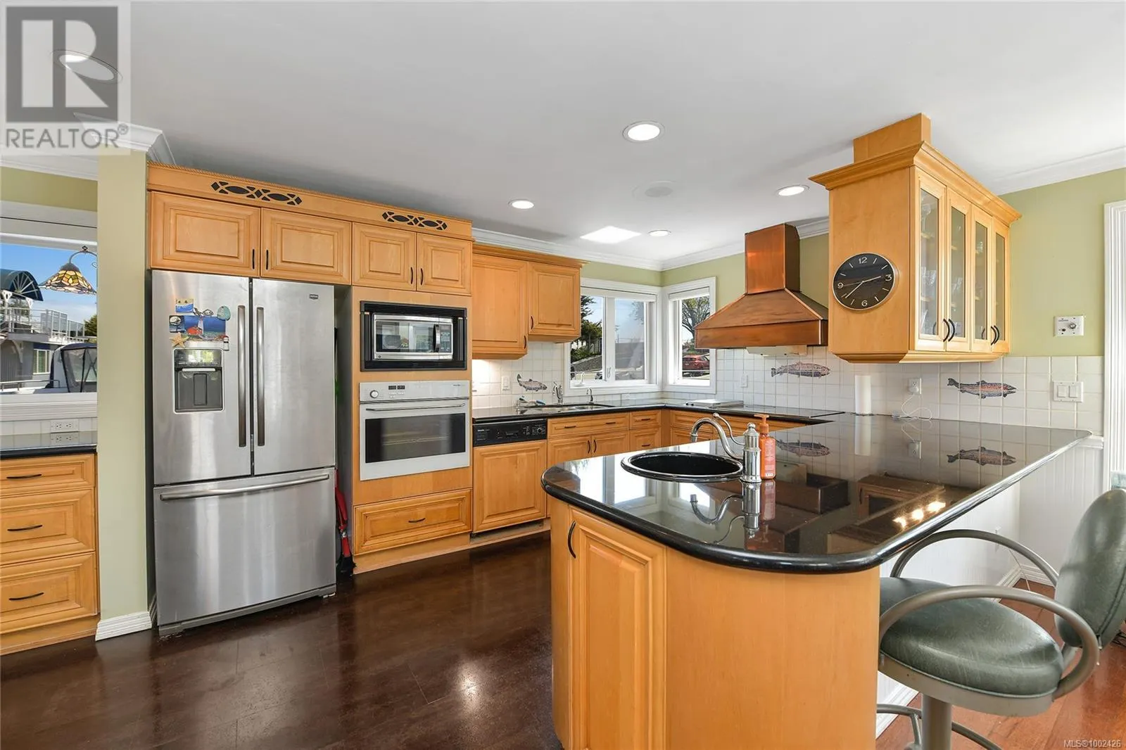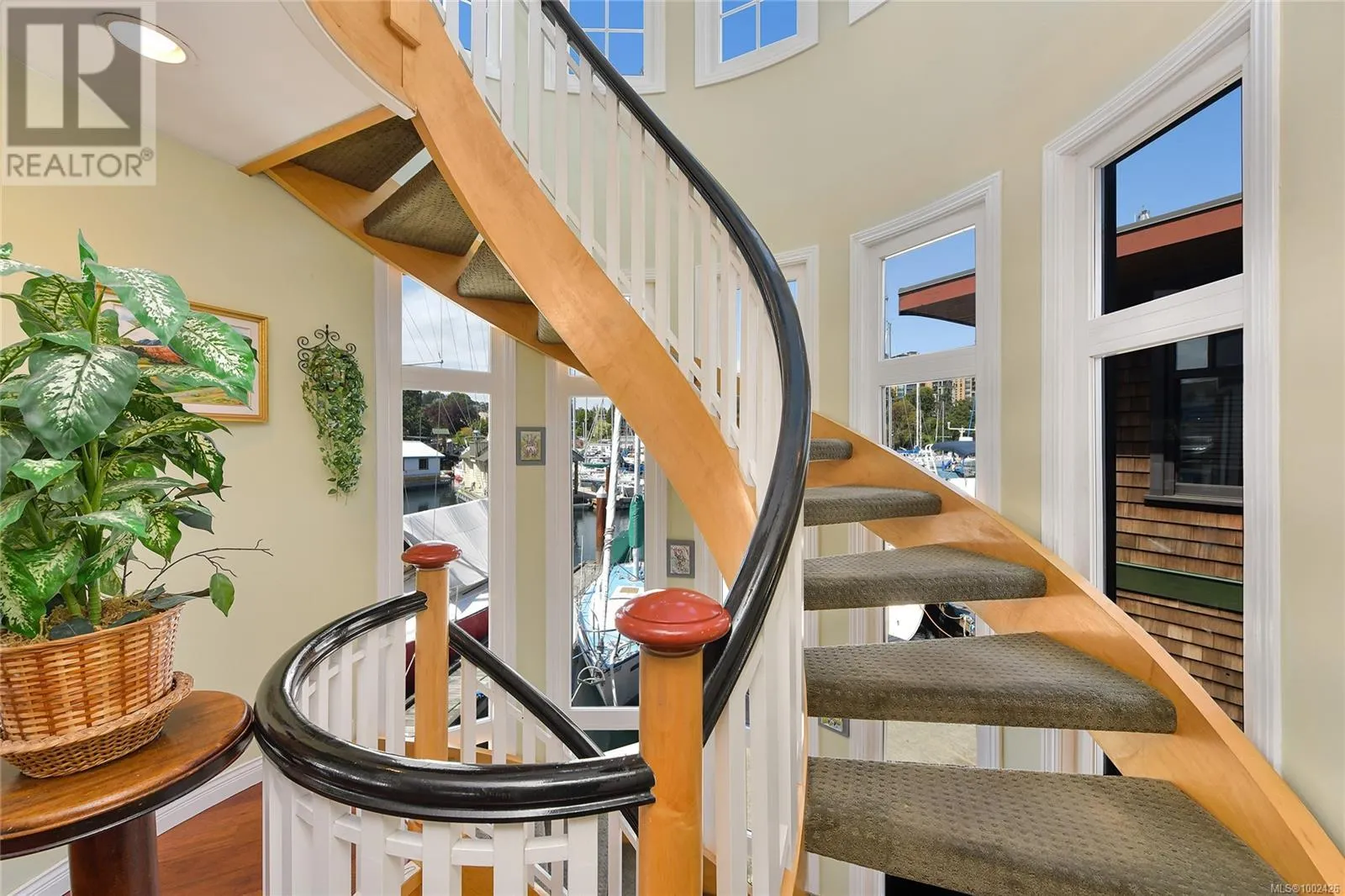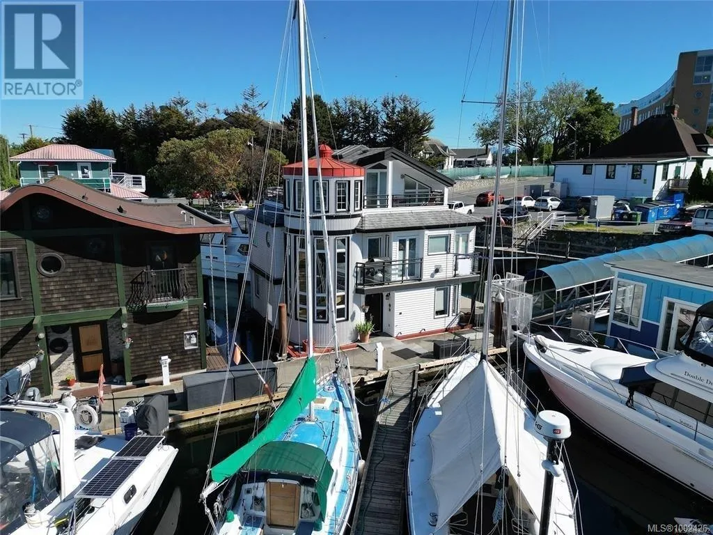 Welcome to Westbay Marine Village located on the Esquimalt side of the beautiful inner harbour! Enjoy the fresh ocean breeze and amazing oceanic lifestyle from home! Introducing a high quality built 3 level float home tastefully designed on a concrete and foam filled hull with elegant finishes throughout. As you enter the home through the arched front door you'll find two generously sized bedrooms, a 4-piece bathroom and spacious utility room leading out onto the large back deck. Prepare to be impressed by the stunning spiral staircase taking you to the main level where you'll enjoy an open-concept dining/living room condo with cozy gas fireplace, covered deck, nook/den, 2-piece bathroom and kitchen complete with stunning copper hood-fan, built-in oven, plenty of counter space and bonus pre sink. The top floor features the master level consisting of vaulted ceilings, two decks with marina and ocean views, closet plus large walk-in closet. (id:27476)