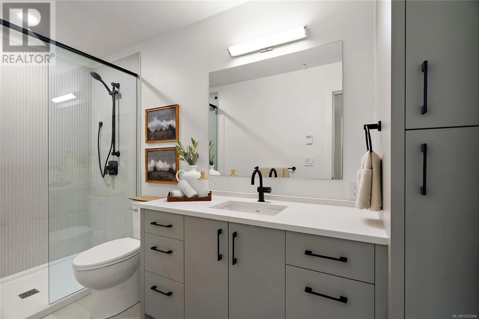 Move in this year! Located in the heart of Esquimalt Village, The Proxima is perfectly positioned for a life full of adventure, experiences, & amenities w/ Saxe Point Park, local breweries, Esquimalt Market, shopping, & the Archie Browning Sports Centre just a stoneâs throw away. Unit B404 is located within the back Bellus building in a spacious 2 bedroom, 2 bathroom floor plan featuring our Caligo colour scheme mixing neutral & modern tones with quartz countertops, eat-in kitchen island, and black stainless KitchenAid appliance package. This unit is inclusive of one underground parking stall and storage locker. Brought to you by award winning GT Mann Contracting and superior design by Spaciz Design. The grand glass lobby welcomes residents to enjoy the state of the art gym, atrium, and courtyard â live life your way at The Proxima. (id:27476)
