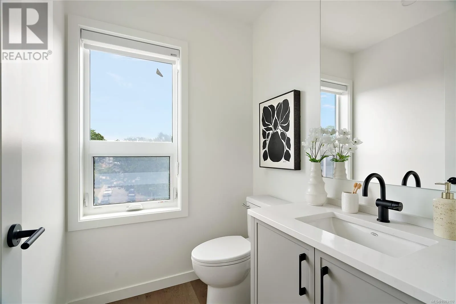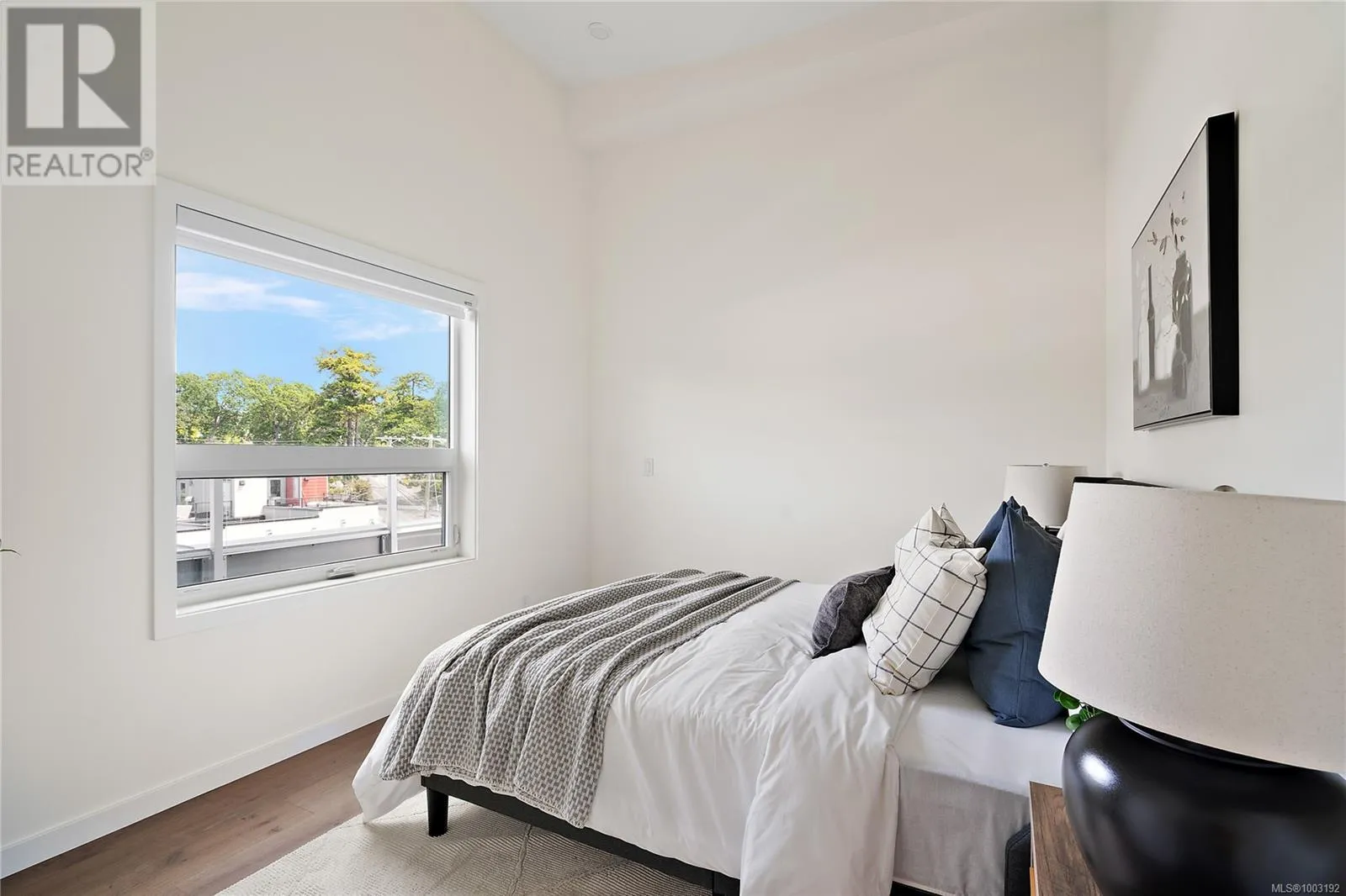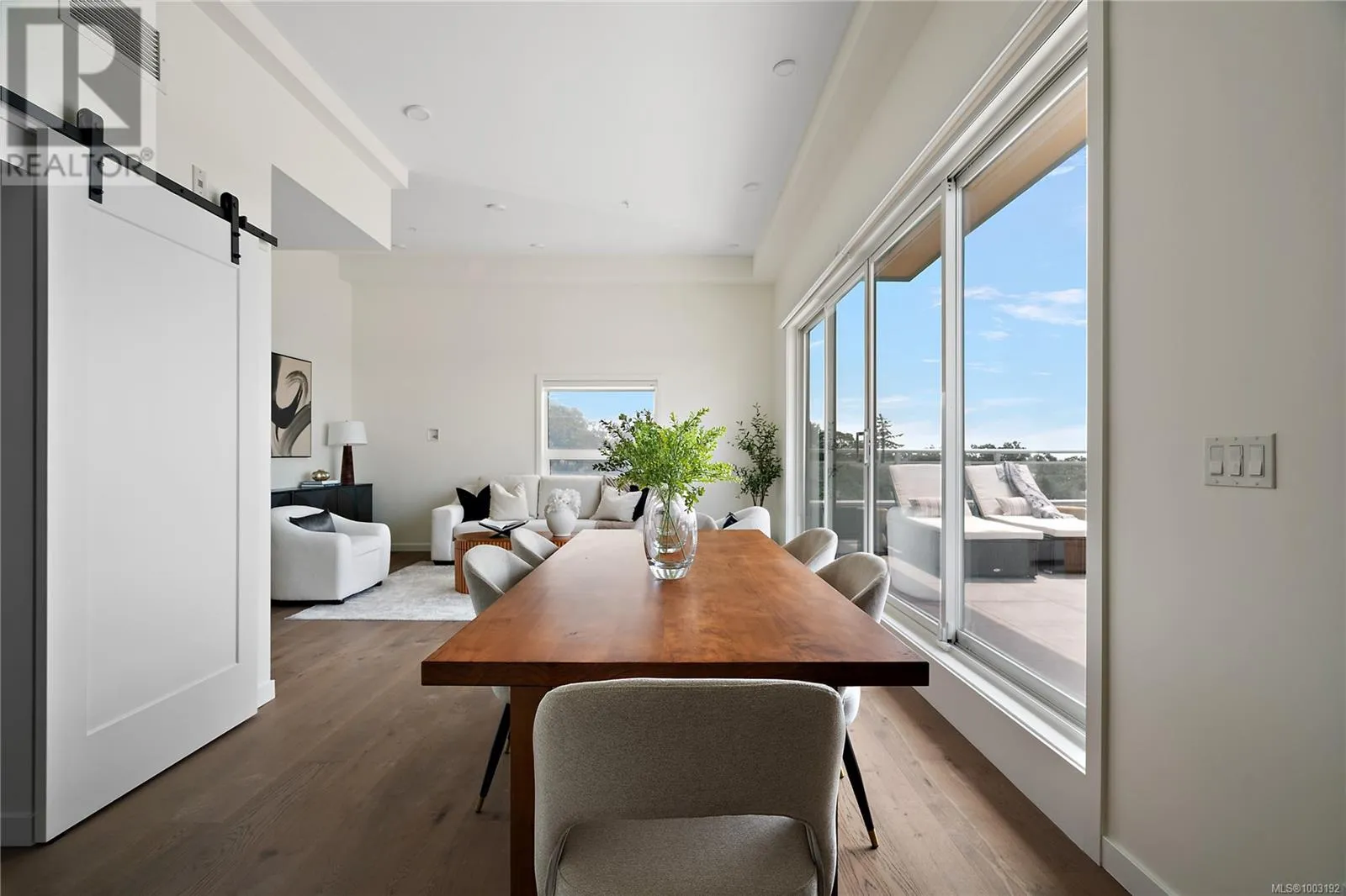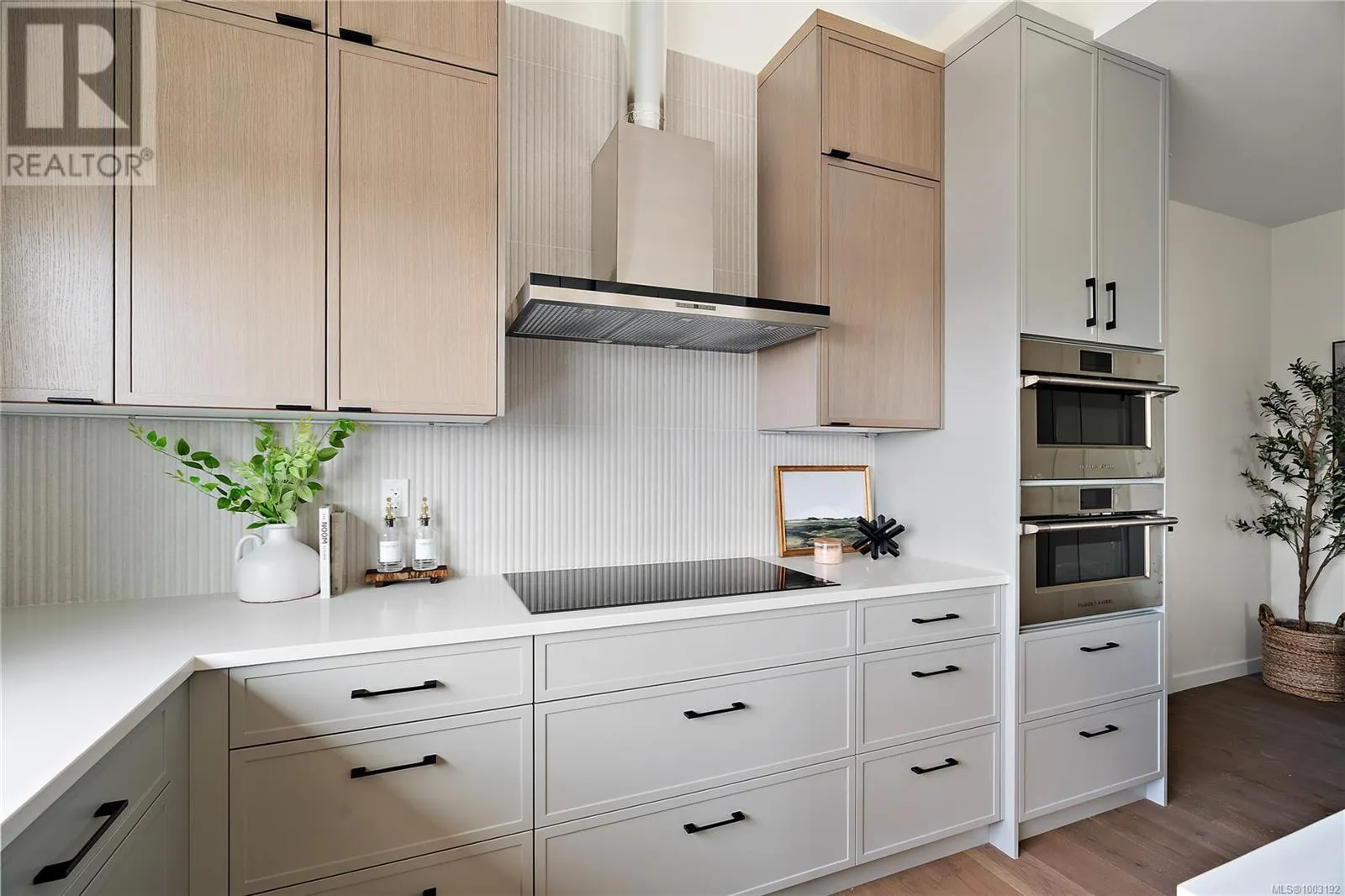 Step into a life of luxury in the south facing 2 bed + den, 3 bath Bellus penthouse unit at The Proxima. This unit truly has it all from the massive 445 sqft, sun-drenched balcony w/ straight view down to the ocean, to the soaring vaulted ceilings, oak engineered hardwood flooring, and two parking spots. Finished in our Lumen colour scheme by Spaciz Design, the kitchen offers two-toned cabinetry, quartz countertops, a large waterfall eat-in island, and top of the line stainless steel Fisher & Paykel appliances. Located in the heart of Esquimalt Village, The Proxima is perfectly positioned for a life full of adventure, experiences, & amenities w/ Saxe Point Park, local breweries, Esquimalt Market, shopping, & the Archie Browning Sports Centre just a stoneâs throw away. Brought to life by GT Mann Contracting, whether relaxing on the sunny balcony, working out in the state-of-the-art gym, visiting the atrium or courtyard, residents can live life their way at The Proxima. (id:27476)