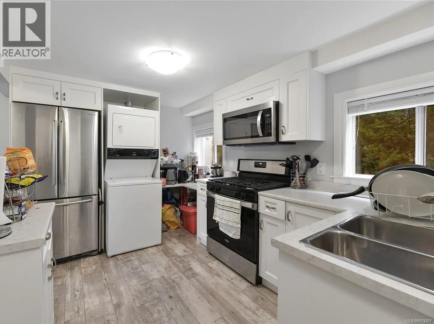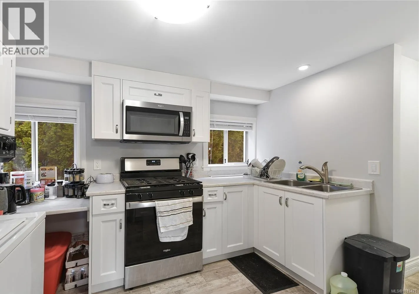 Tucked far back from Craigflower Road, this professionally renovated 3-bedroom home (plus a separate 1-bed suite) blends serenity and convenienceâJUST STEPS TO GORGE PARK! Step inside to a heated tiled entry that continues into the main bathroom, a sunlit living room, and a modern kitchen with a gas stove in the island, crisp white cabinetry, and stainless-steel appliances. Two sets of patio doors lead to a 24x26 ft deck, perfect for entertaining. The lower level, accessed by an original 1947 spiral staircase, adds vintage charm. It features a flexible office space and a third bedroom. The totally updated 1-bed suite, with its own private entrance, is an ideal mortgage helper. Smart living at its bestâcontrol the lights and thermostat remotely with the Lutron app for effortless comfort and energy efficiency. Additional highlights include upgraded mechanics, a huge workshop, and a carport, all set in a quiet location close to shops, schools, and transit. Schedule your viewing today! (id:27476)