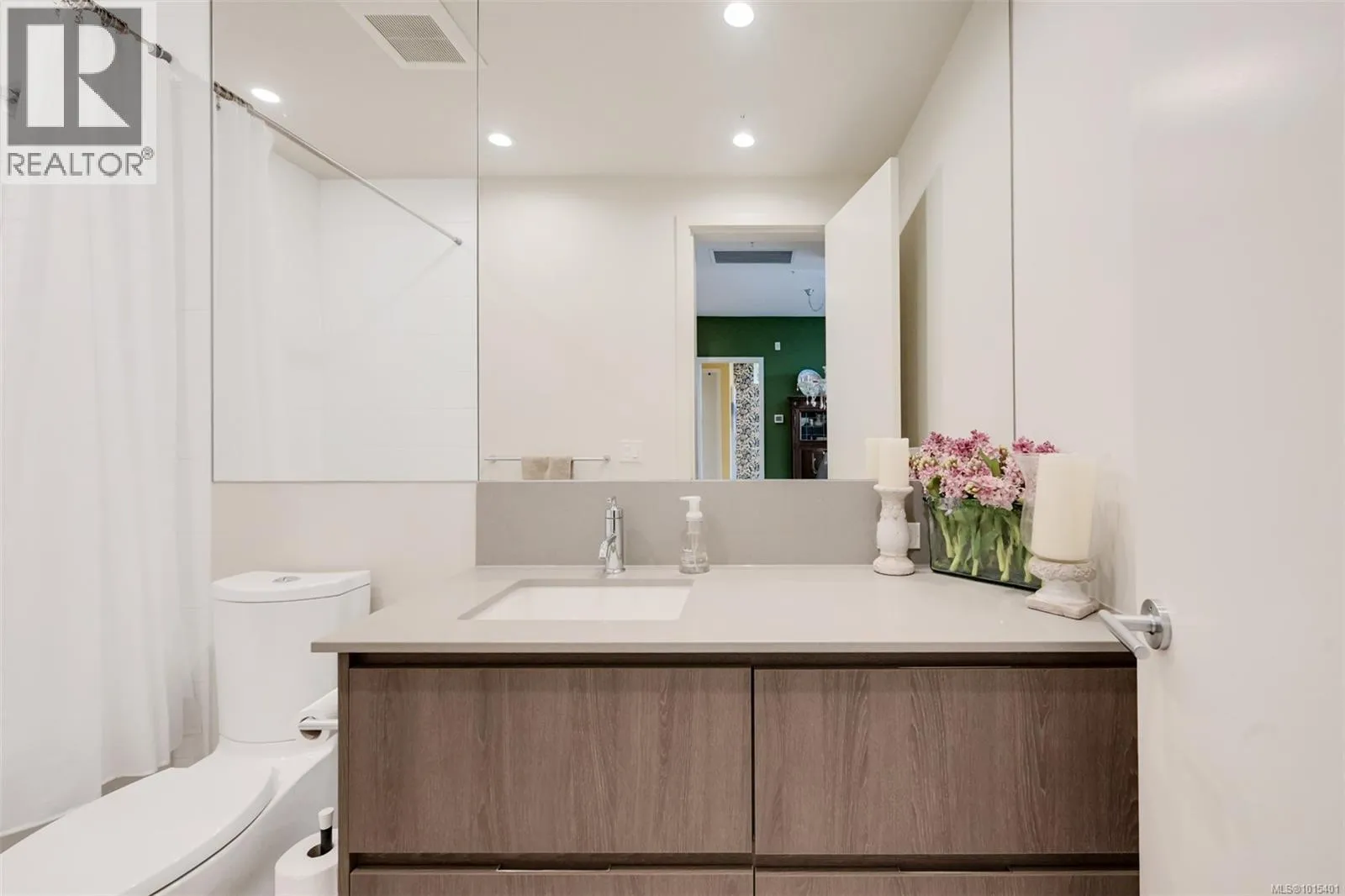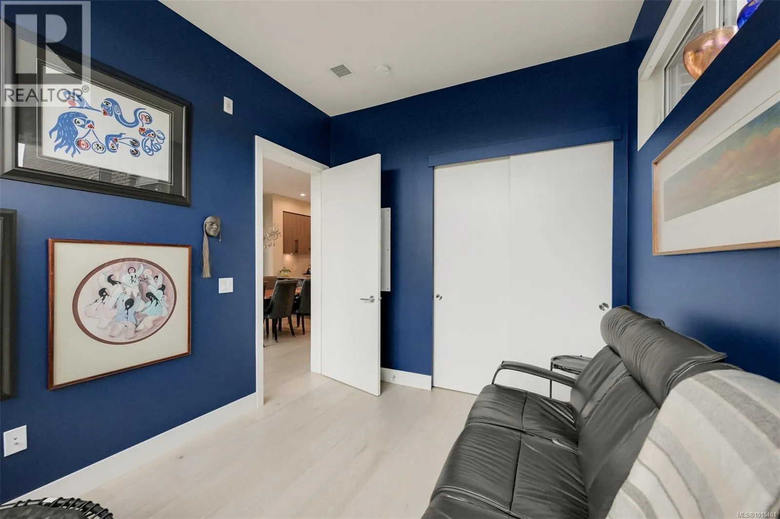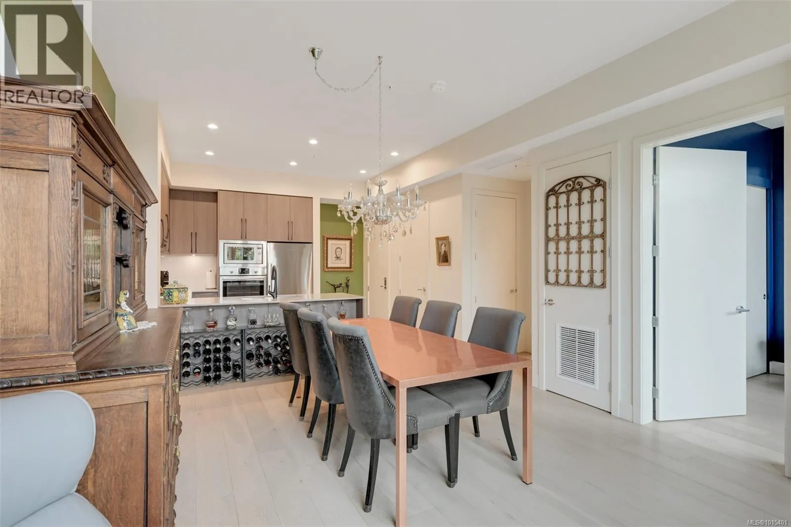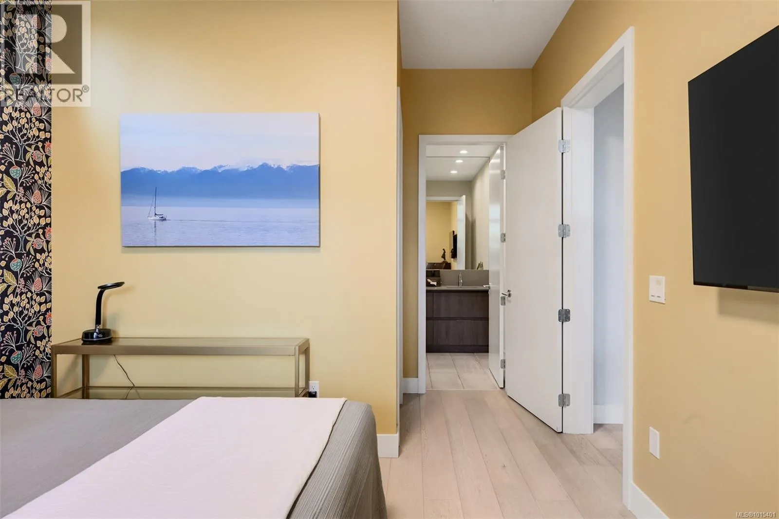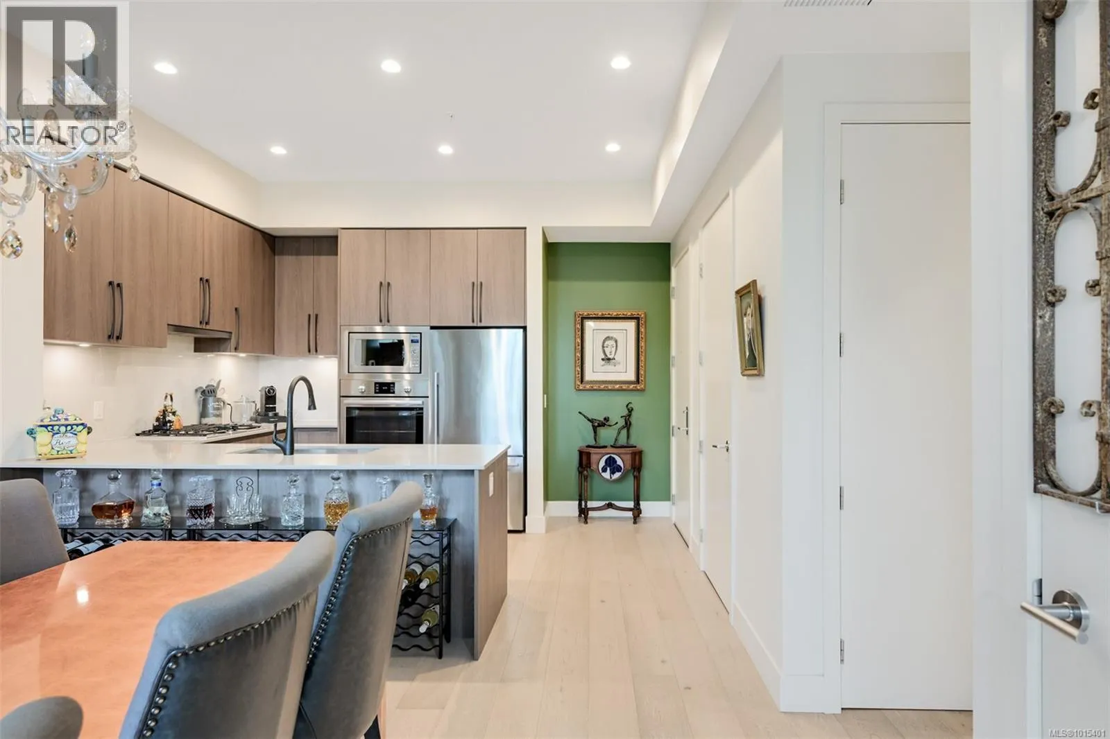 This spacious walk up luxury condo lives more like a single level townhome. Ideally located at Esquimalt Town Square, a masterplanned community built by Aragon; the quality in craftsmanship, design and materials are evident throughout the home, building and community. This 2 bed, 2 bath south facing garden home has every amenity at your doorstep. Over height 9'9'' ceilings and expansive picture windows flood this elegant corner home with natural light. A tranquil, tucked away patio provides privacy, easy indoor / outdoor living and walk-out access - a beautiful spot to host and a pet owners dream. The large living / dining area boasts a reclaimed brick feature wall with a fireplace and enough space to host a full sized dining table. Other features include engineered oak flooring, luxury appliances, heated bathroom flooring, custom window coverings, storage locker & secure underground parking with dedicated EV charger - this is a must-see. Itâs more than a condo - itâs a lifestyle. (id:27476)