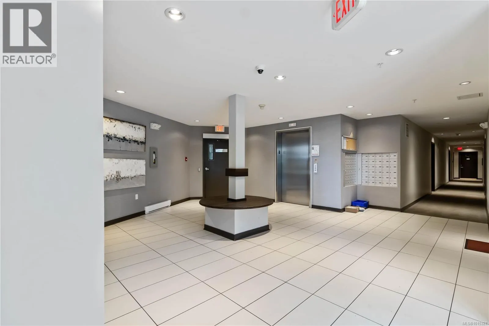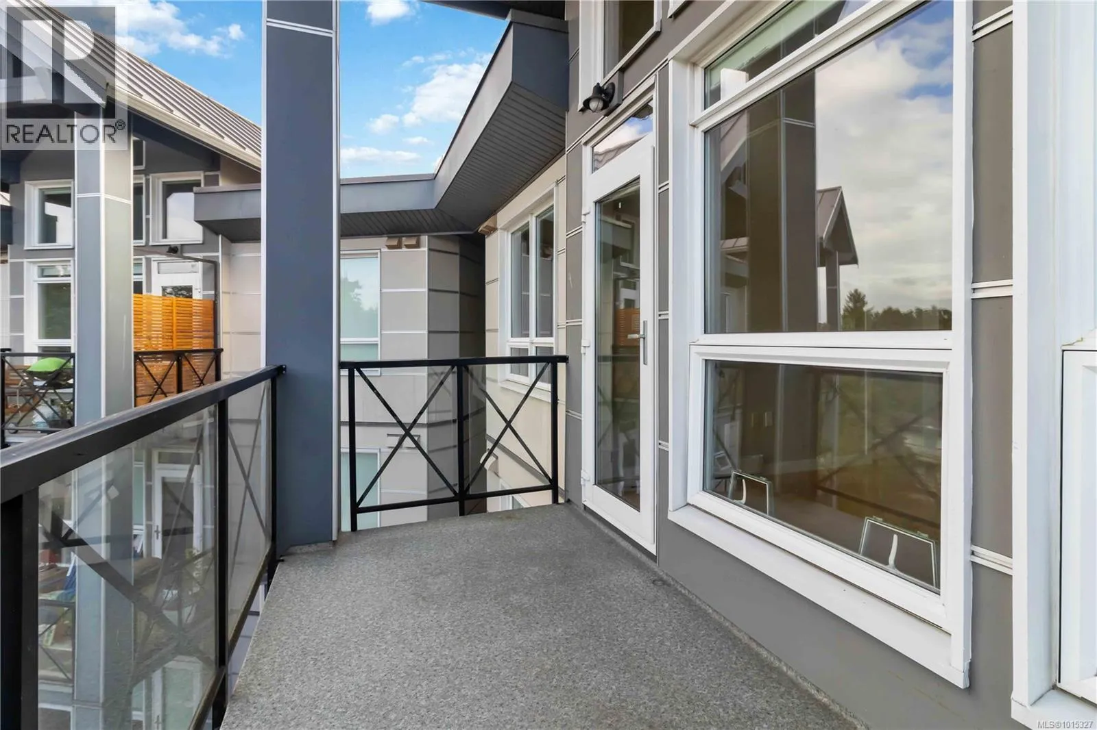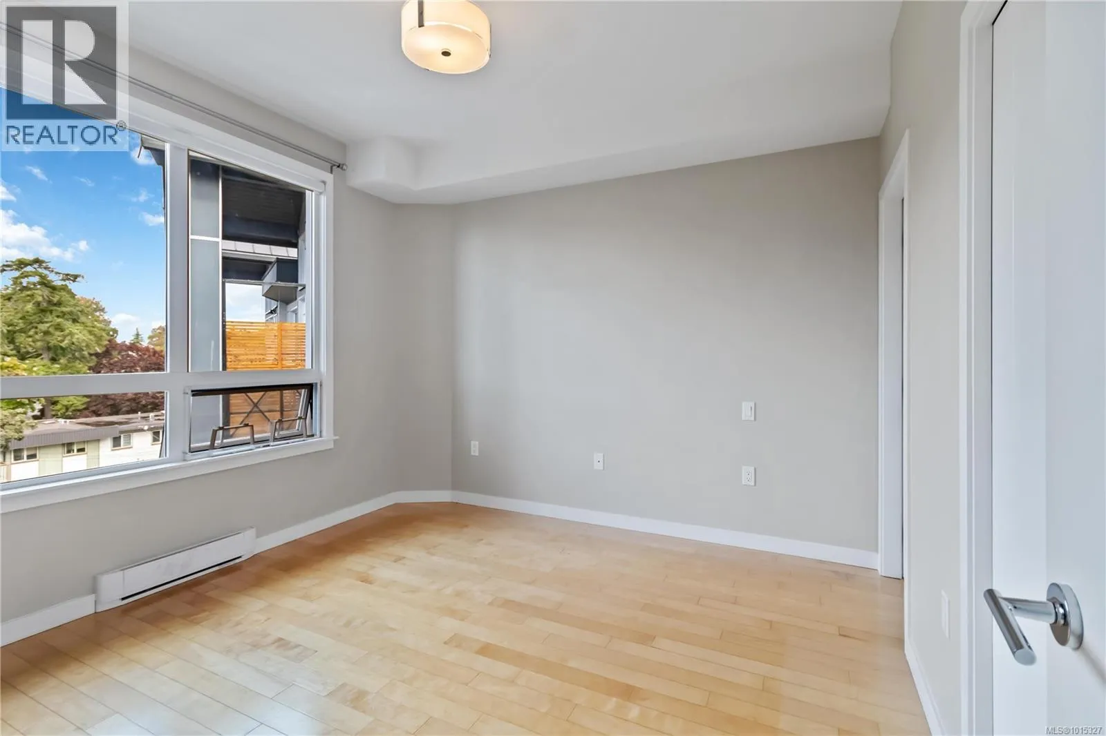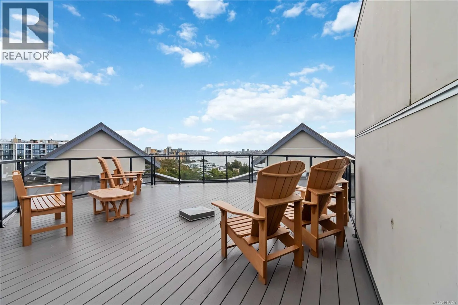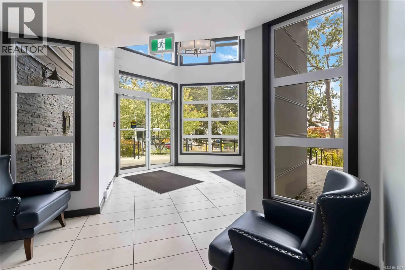 Soaring above buildings and treetops is this beautiful 2 bedroom, top floor unit in Skyline Residences. This condo is uniquely designed and offers a wonderful open-concept floor plan with modern kitchen, quartz countertops, stainless steel appliances and kitchen island which blends modern living with functionality. Natural light pours through the floor to ceilings windows in the living room featuring 16ft vaulted ceilings. Large primary bedroom with an abundance of light with ensuite, second bedroom with second bathroom and laundry round out this well designed condo. Located on the quiet side of the building and including secured underground parking spot as well as a storage locker. Bonus - roof top patio with inner harbour views for your enjoyment with a location is perfectly located just minutes to downtown Victoria, shops, restaurants, parks, the military base, école Victor-Brodeur and buses. Rentals permitted and pets allowed! Vacant with quick possession! (id:27476)