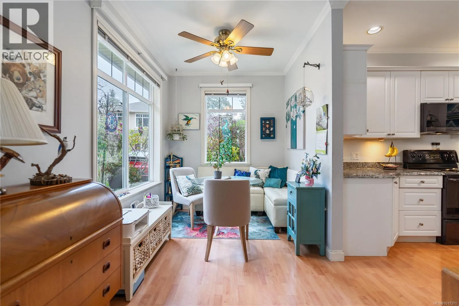 One level corner townhouse of 1415 sq. ft. with two bedrooms, two bathrooms. This spacious unit is in move-in condition. There is a family room with patio access located next to the modern kitchen with granite countertops. Master suite with en-suite, gas fireplace in the living room, hardwood and laminate flooring, crown mouldings, separate laundry room, ceiling fans and attached single garage. Pets allowed. One level units of this size are hard to find so plan on viewing soon. (id:27476)