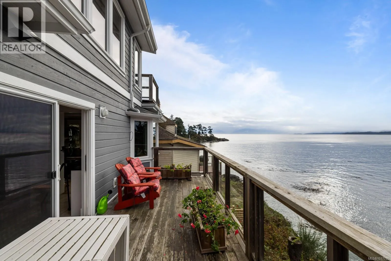 Welcome to ocean front living at ORCA House where you can see birds, seals and of course, orcas! Come and enjoy the expansive ocean views from this gorgeous 1925 character home, which has been fully restored from the roof top to the basement. This beautiful home has a lovely fenced garden with one car garage. To the left of the heated tile entryway is a large bedroom with 3 piece bathroom and a mud room. To the right is a formal dining room with gorgeous fir floors with decorative inlays and wainscotting and on the back, west-facing ocean front is a fully updated kitchen with heated tile floors and original sideboard as well as all new appliances opening up to a west-facing deck plus a large living room with fireplace, original fir floors, and picture windows of the ocean. Upstairs is the large primary with walk-in closet, sumptuous ensuite bath and private deck as well as a second full bathroom, two ocean-view bedrooms, plus laundry. Downstairs is a large self contained 1 bed suite, with private deck and views, and basement storage (id:27476)