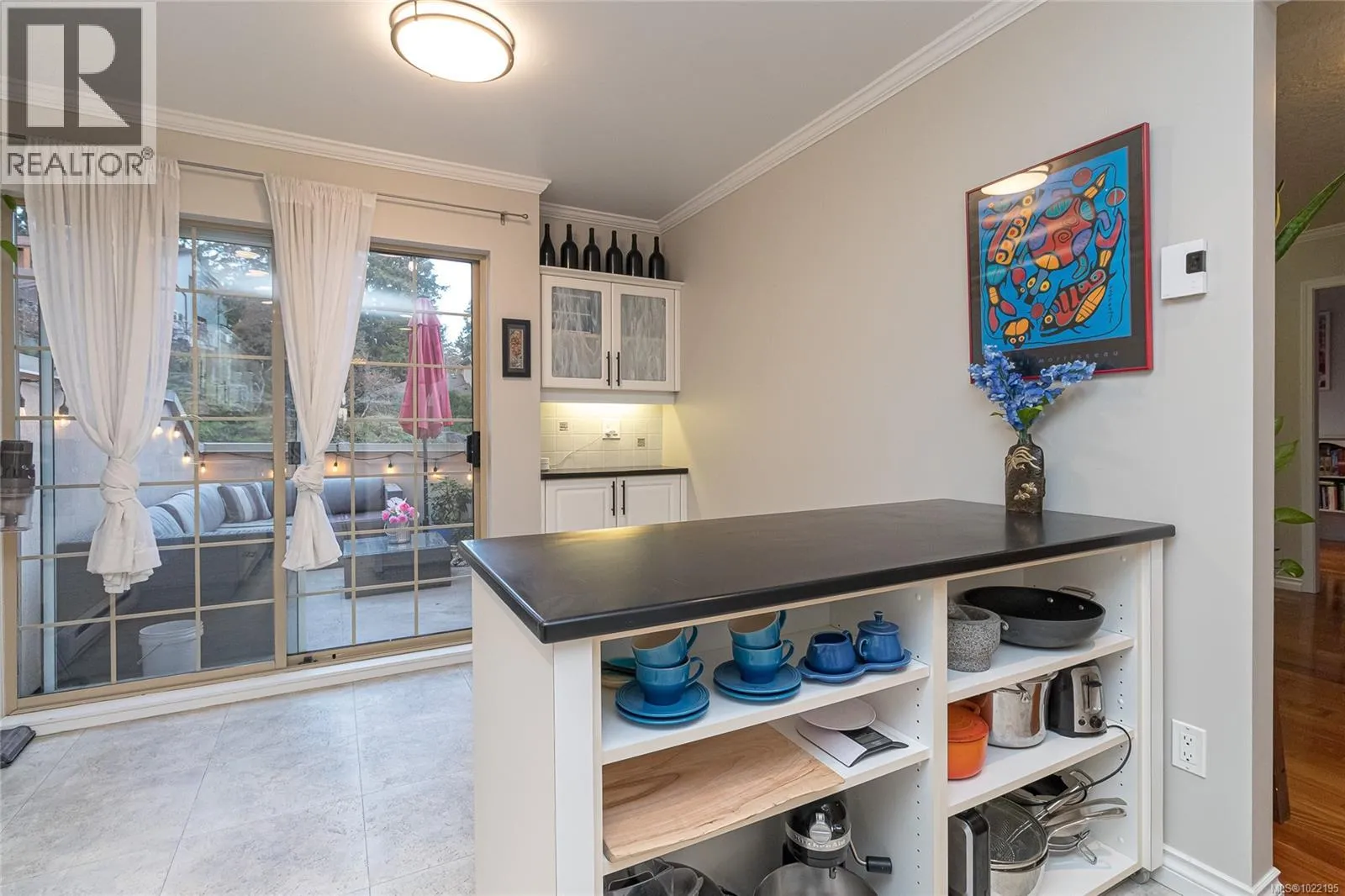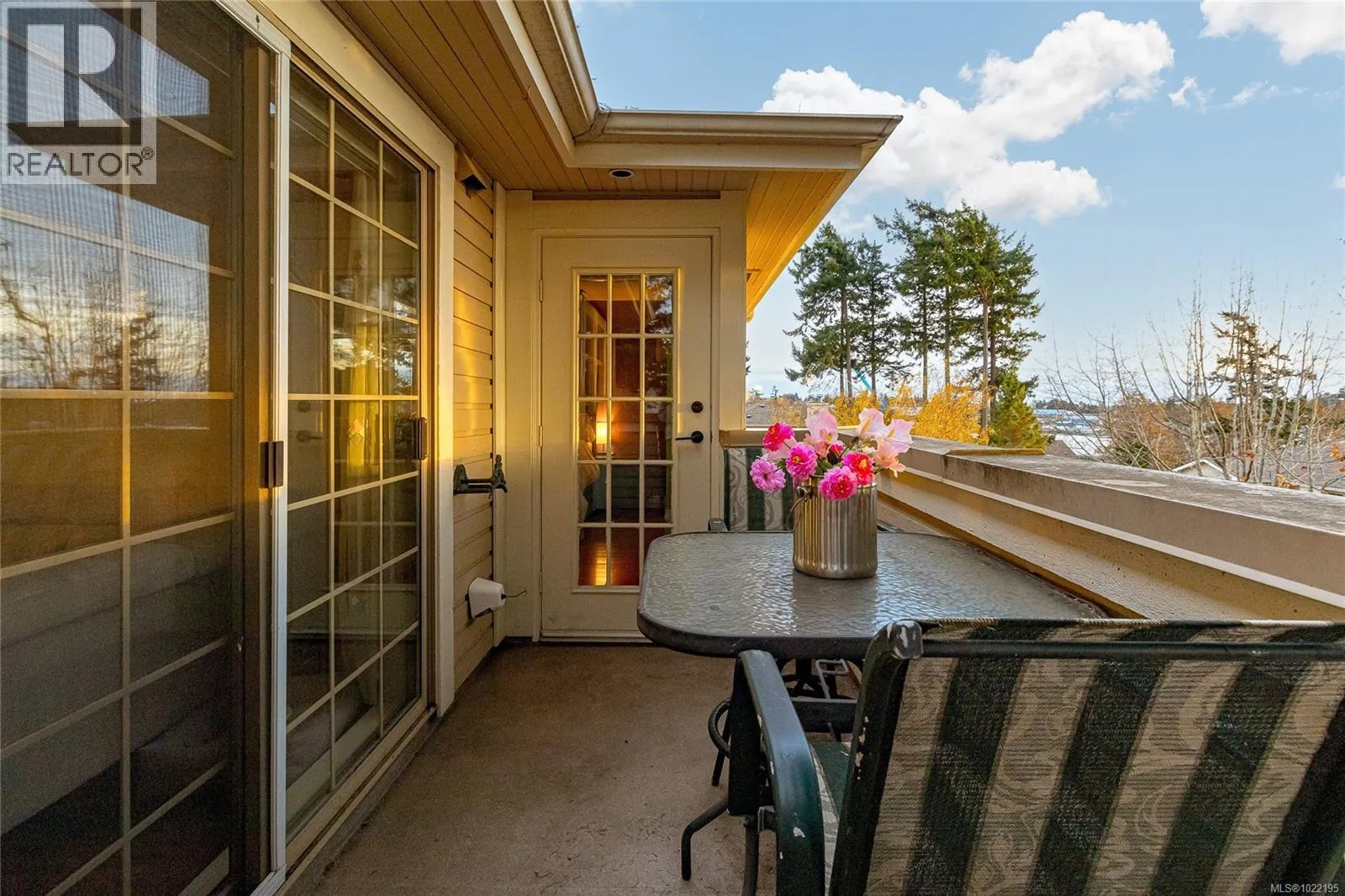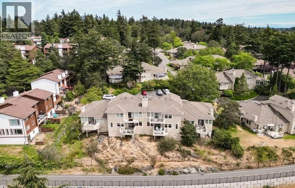 Welcome to Admirals Gate: a sought-after, beautifully maintained complex in Esquimalt. This nicely updated 2-bedroom, 2-bath townhome offers stunning ocean and Olympic Mountain views along with an exceptional sense of space and light. The large kitchen features abundant storage, generous counter space, under-cabinet lighting, and a moveable island for flexible configuration. Enjoy morning coffee on the private balcony off the cozy breakfast nook. Warm cherrywood-style flooring, crown moulding, and built-in blinds add a refined touch throughout. The inviting living room includes custom built-ins, an electric fireplace, and space for formal dining. Step out to the west-facing balcony to take in breathtaking evening sunsets over Esquimalt Harbour. The spacious primary suite offers deck access, a walk-in closet, and a recently renovated ensuite. The second bedroom is bright and roomy with its own deck. Additional highlights include a garage and driveway, pet-friendly bylaws, a proactive strata, and direct access to the E&N Trail. (id:27476)