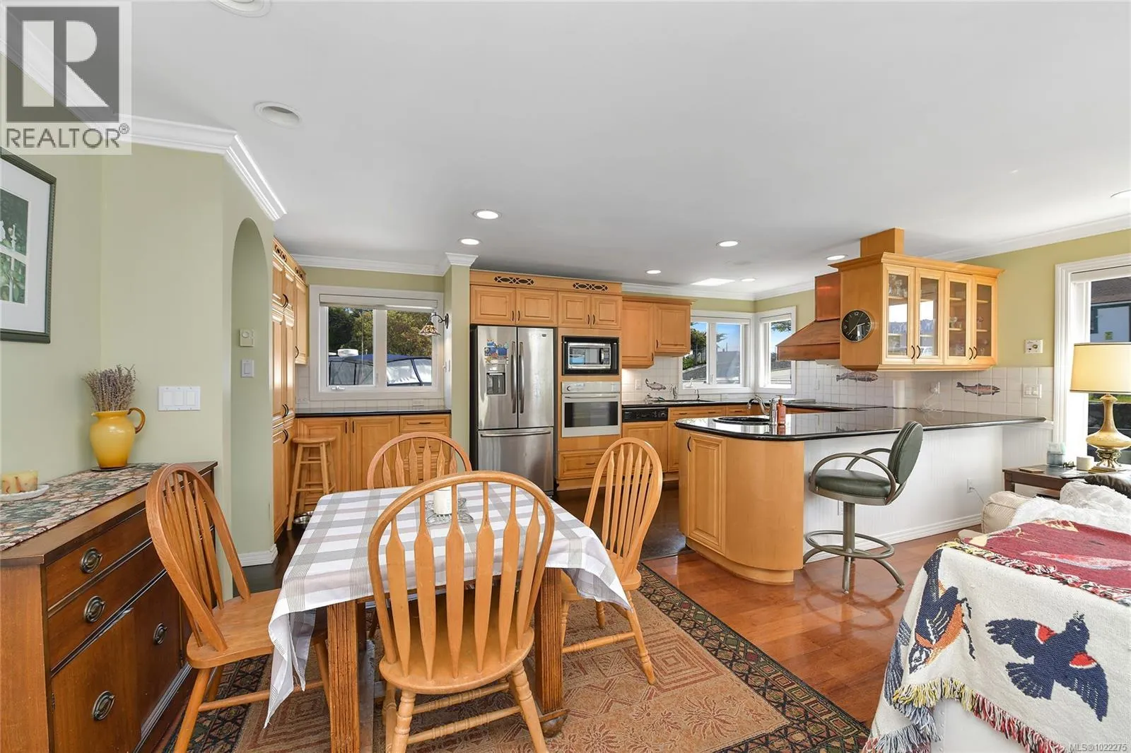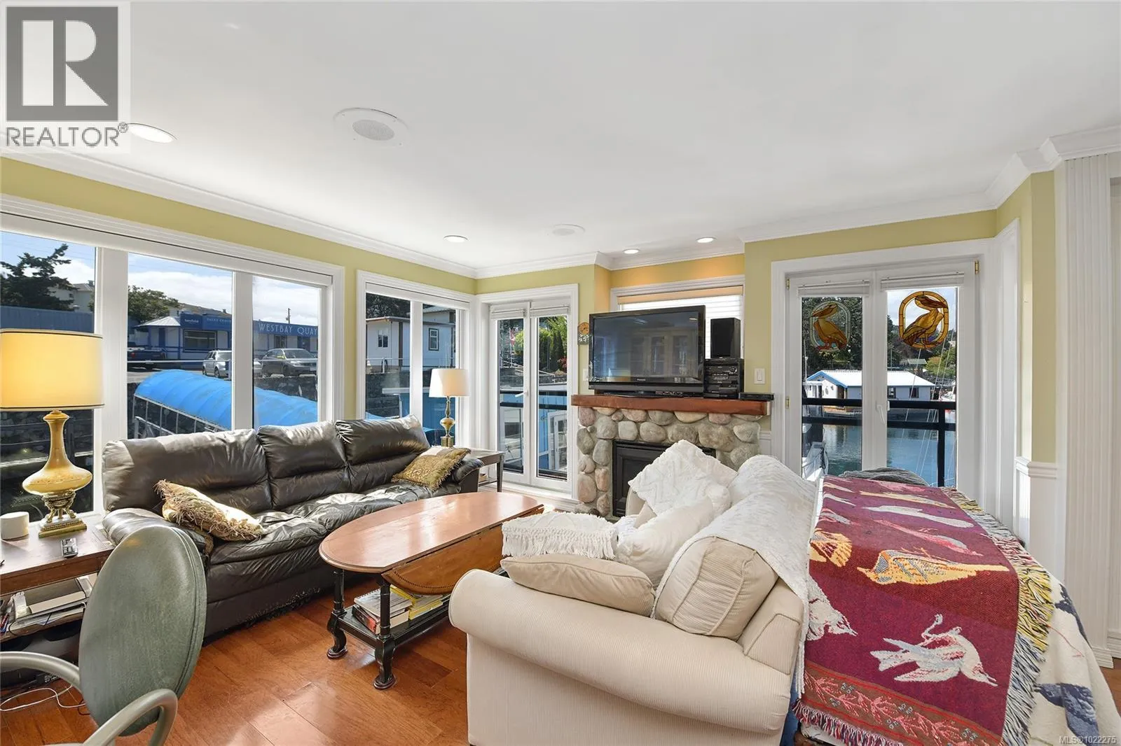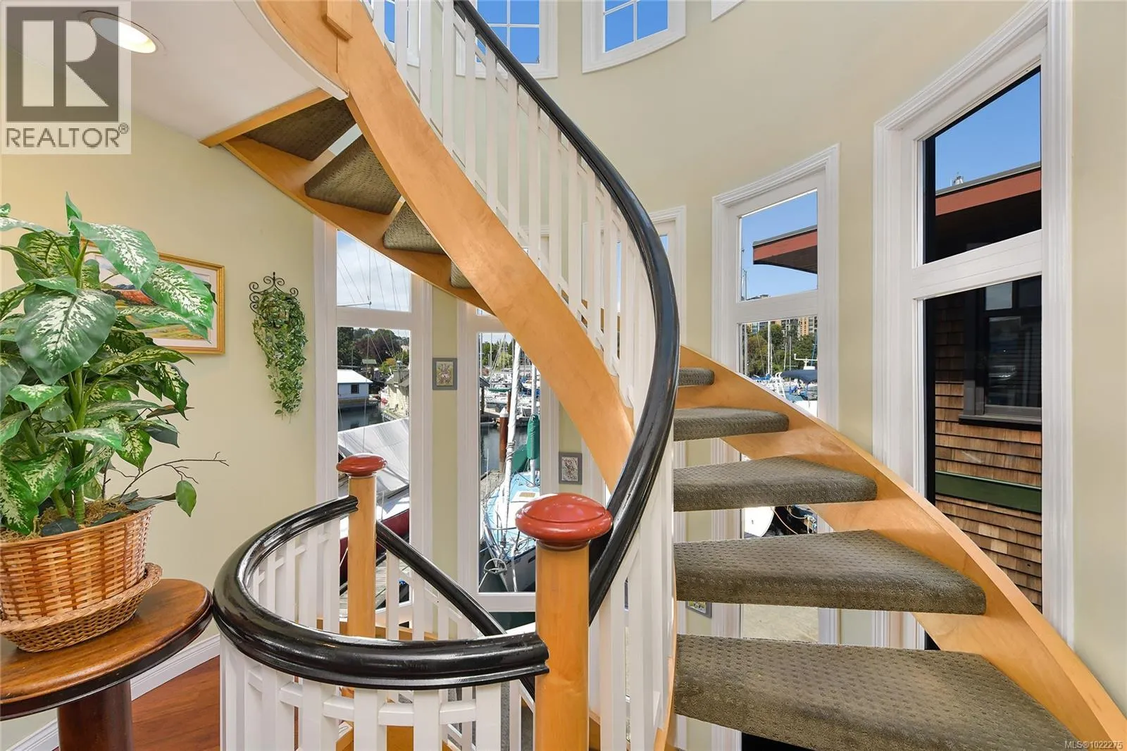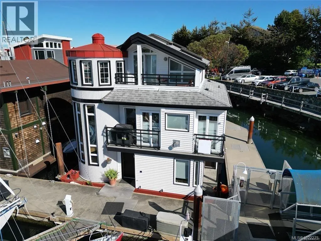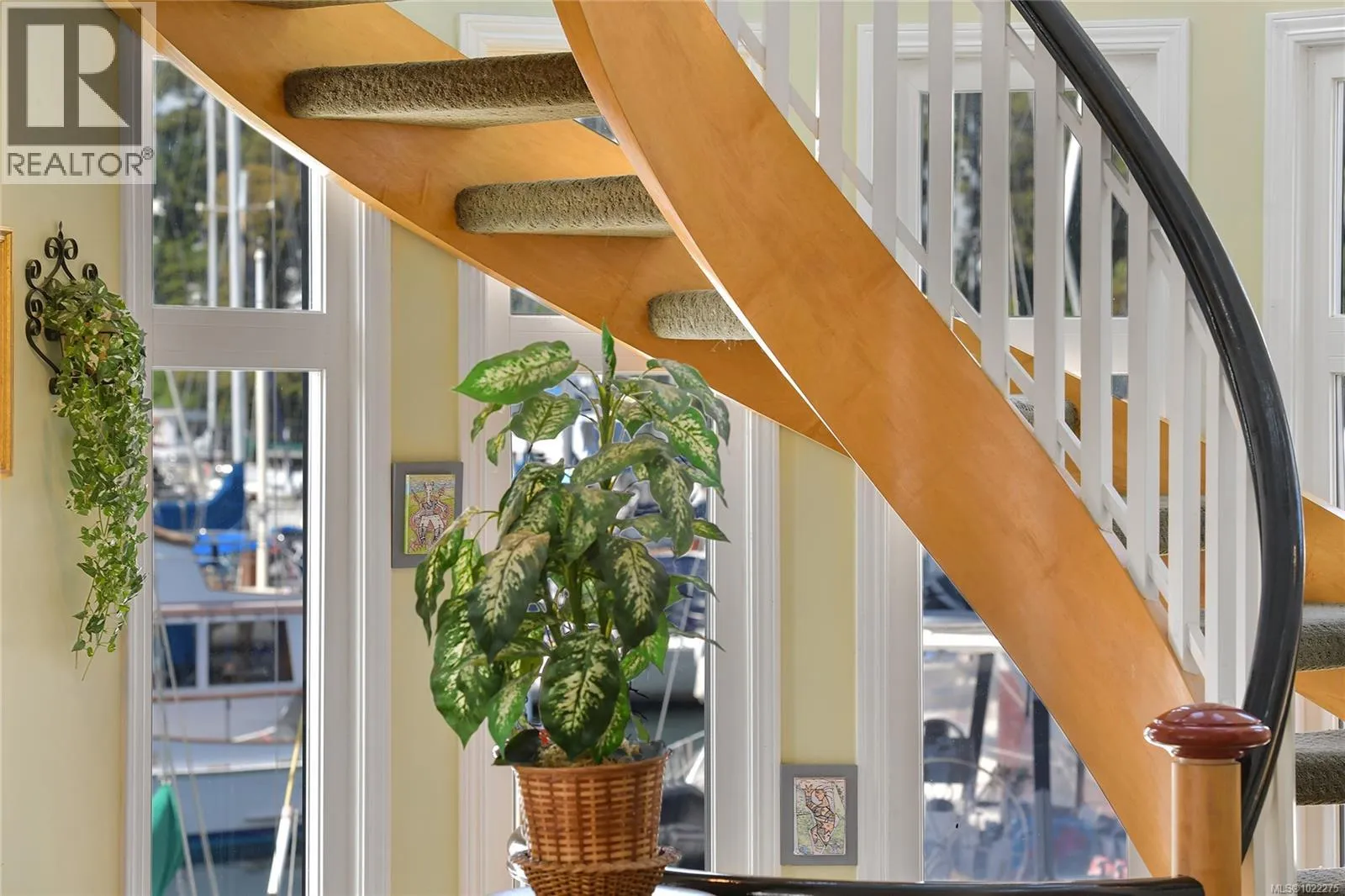 Welcome to Westbay Marine Village located on the Esquimalt side of the beautiful inner harbour! Enjoy the fresh ocean breeze and amazing oceanic lifestyle from home! Introducing a high quality built 3 level float home tastefully designed on a concrete and foam filled hull with elegant finishes throughout. As you enter the home through the arched front door you'll find two generously sized bedrooms, a 4-piece bathroom and spacious utility room leading out onto the large back deck. Prepare to be impressed by the stunning spiral staircase taking you to the main level where you'll enjoy an open-concept dining/living room condo with cozy gas fireplace, covered deck, nook/den, 2-piece bathroom and kitchen complete with stunning copper hood-fan, built-in oven, plenty of counter space and bonus pre sink. The top floor features the master level consisting of vaulted ceilings, two decks with marina and ocean views, closet plus large walk-in closet. (id:27476)