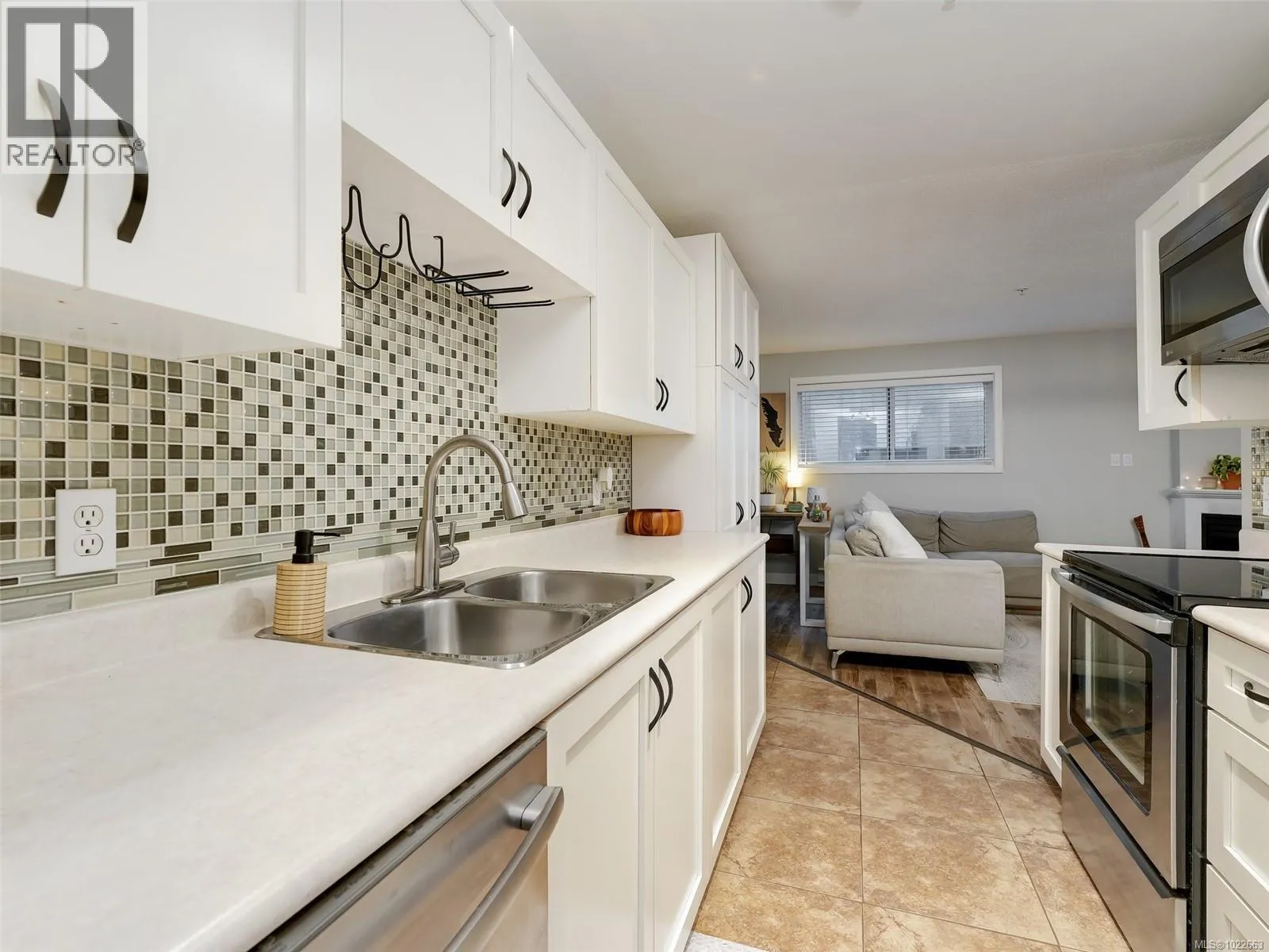 OPEN SUN / JAN 11 FROM 1-3PM. Centrally located in the Vibrant Old Esquimalt Neighbourhood just minutes outside of Downtown Victoria. This Tastefully updated 2 Bed / 2 Bath Corner Condo is on the quiet side of the BLD and features: efficient 1,000 sq ft floor plan, high-efficiency natural gas fireplace / gas inc. in strata fee, Mtn / Ocean glimpses from private / south-facing deck, common roof top deck with spectacular ocean views, pet friendly strata, 1 covered parking stall included + 2nd stall available at $10 p/mt, separate storage locker + bike storage, 6 visitor parking stalls and a fantastic walk score of 82. This Home offers excellent value in an amazing area / close to parks, shopping, historical sites and the famous Westsong Waterfront walkway taking you into the Downtown. (id:27476)
