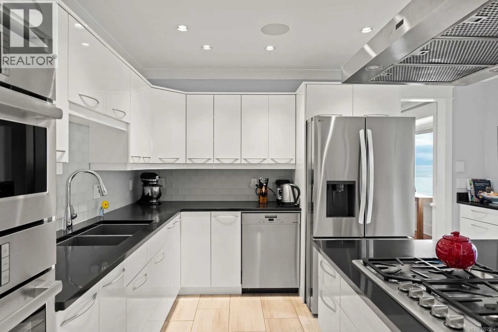 Welcome to ocean front living at ORCA House where you can see birds, seals and of course, orcas! Come and enjoy the expansive ocean views from this gorgeous 1925 character home, which has been fully restored from the roof top to the basement. This beautiful home has a lovely fenced garden with one car garage. To the left of the heated tile entryway is a large bedroom with 3 piece bathroom and a mud room. To the right is a formal dining room with gorgeous fir floors with decorative inlays and wainscotting and on the back, west-facing ocean front is a fully updated kitchen with heated tile floors and original sideboard as well as all new appliances opening up to a west-facing deck plus a large living room with fireplace, original fir floors, and picture windows of the ocean. Upstairs is the large primary with walk-in closet, sumptuous ensuite bath and private deck as well as a second full bathroom, two ocean-view bedrooms, plus laundry. Downstairs is a large self contained 1 bed suite, with private deck and views, and basement storage (id:27476)