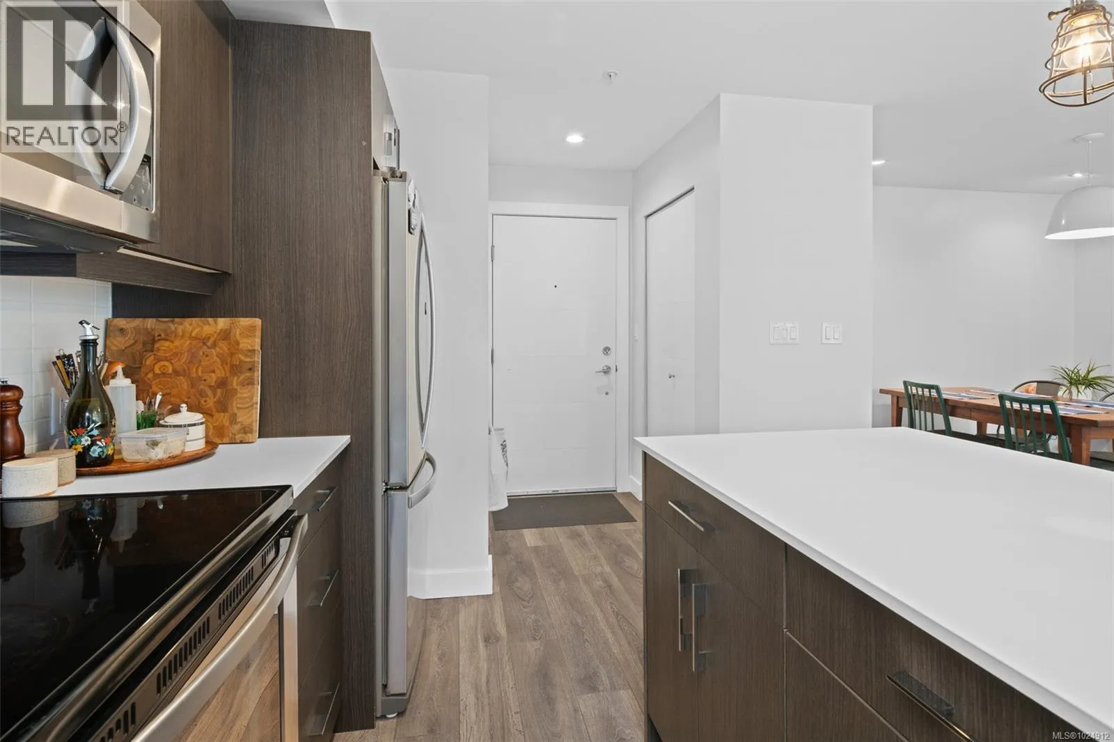 Discover this modern 700 sq ft condo in Esquimalt, built in 2019, offering a stylish and functional living space. Featuring 1 bedroom and 1 bathroom, the unit boasts high-quality finishings throughout, creating a welcoming and contemporary atmosphere. Perfect for owners or renters, this pet-friendly and BBQ-friendly home allows for a comfortable lifestyle. The location is ideal, with direct access via a bike path to downtown Victoria and just a 5-minute walk to the water, providing plenty of opportunities for outdoor activities and scenic views. Building amenities include secure bike storage, a recreation room perfect for socializing or relaxing, and a separate storage locker for added convenience. This property combines modern design, community amenities, and an unbeatable location, making it an excellent choice for those seeking an active, convenient lifestyle close to nature and city life. (id:27476)