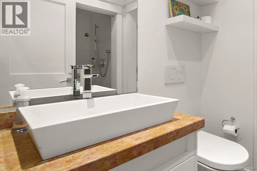 Immaculate free-standing 3-bedroom home in the exclusive Residences at Swallows Landing. One of just 5 strata single-family homes, offering a quiet lifestyle and refined finishings throughout. With over 1,700 sq ft of thoughtfully designed living space this home has been meticulously maintained. The open-concept main level features generous living & dining areas filled with natural light, gas fireplace, hardwood floors, custom mill-work & high-end kitchen with gas cooktop, s/s appliances & quartz countertops. Bright oversized windows overlook a private Garry Oak oasis. Upstairs the spacious primary includes a beautiful ensuite with tiled counters & heated floors & private balcony. The flexible lower level offers two additional bedrooms, a full bath, laundry, and a sunny private patio with separate entrance. Enjoy direct access to the Songhees waterfront walkway or stroll to downtown Victoria, shops, pubs, and amenities. A secure garage completes this exceptional home! (id:27476)