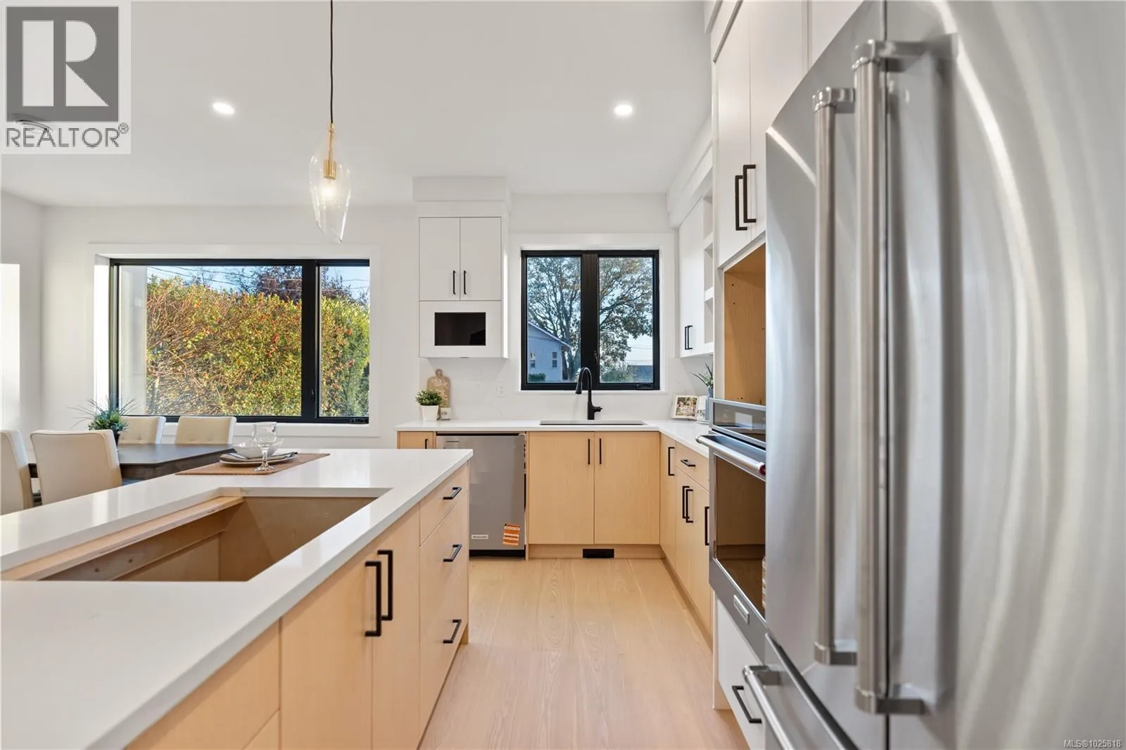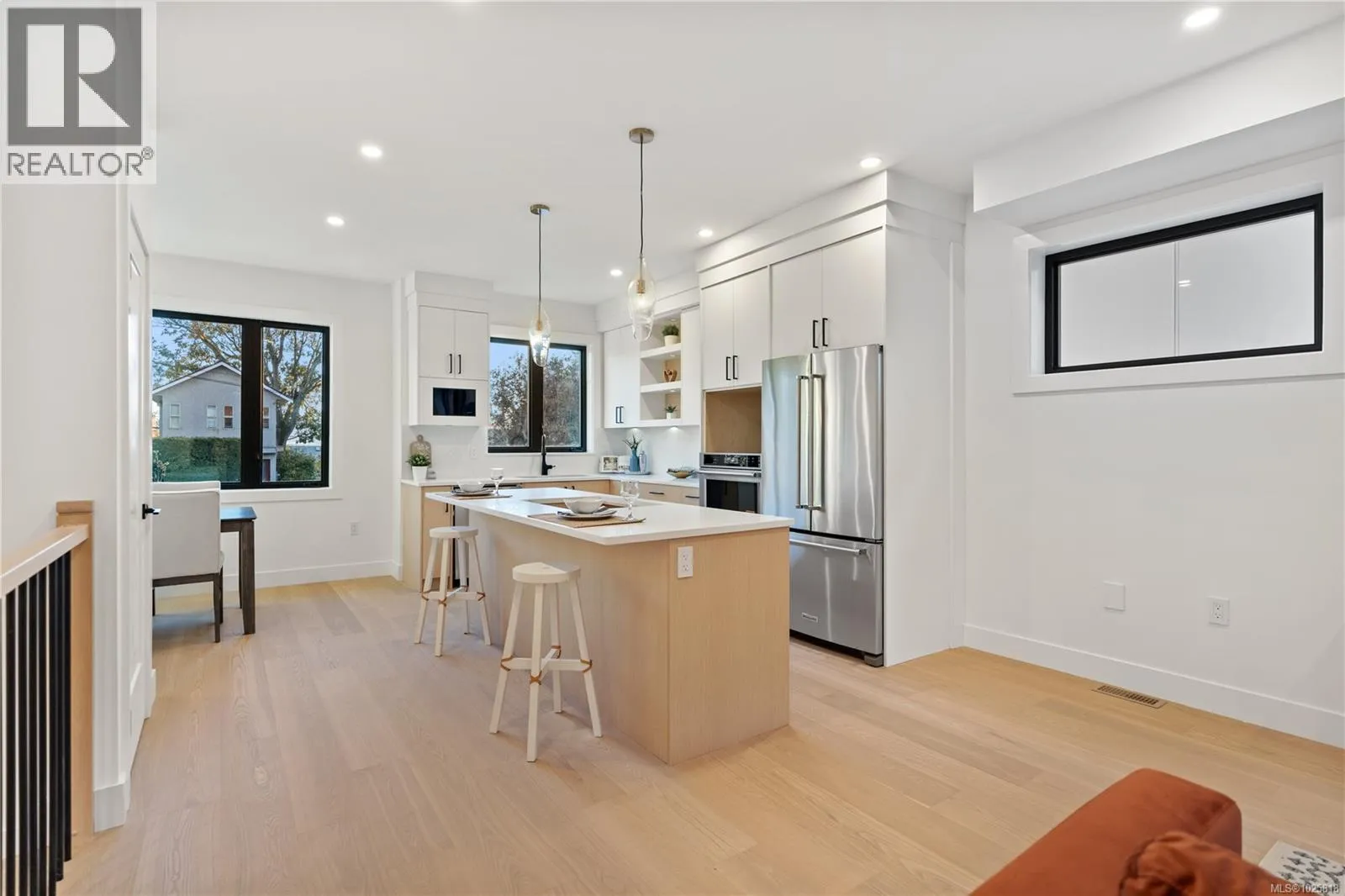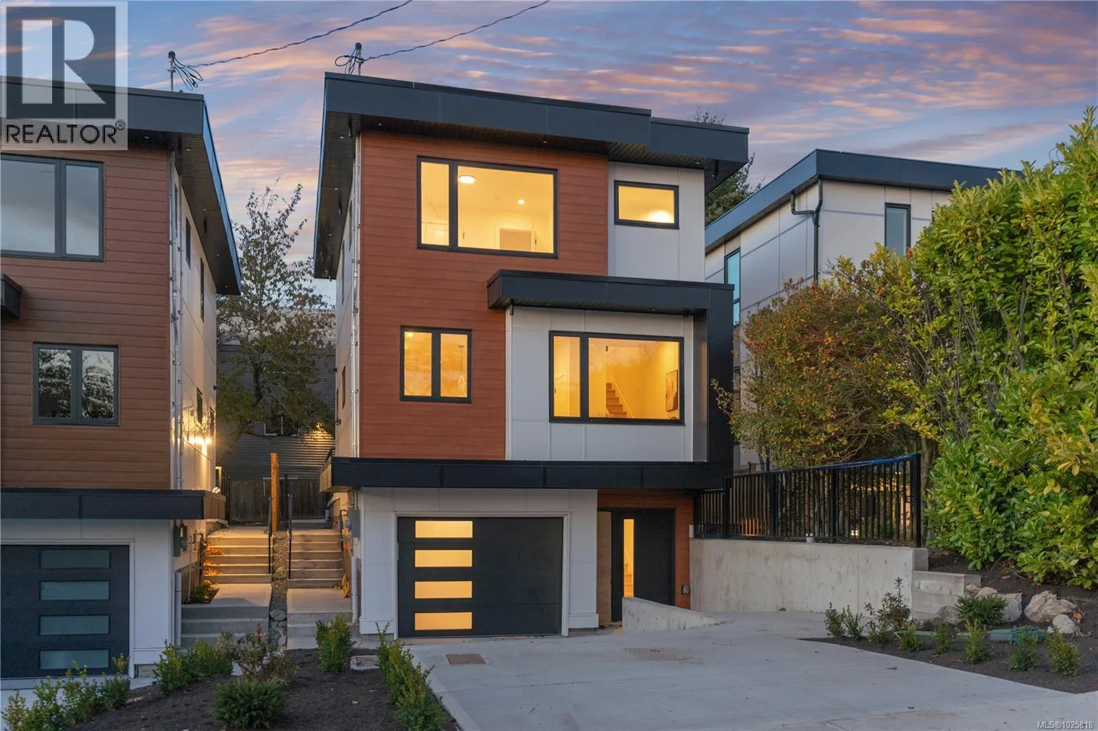Discover the future of modern coastal living in this stunning 3-storey custom-built home, move-in ready and perfectly located just minutes from Saxe Point Park. This south-facing residence offers 3 bedrooms and 3.5 bathrooms with an open-concept layout that showcases bright, airy living spaces, sleek quartz countertops, and high-end stainless steel appliances. The top floor features two spacious bedrooms, each with its own ensuite, while the lower level offers a third bedroom, full bathroom, and a versatile media room ideal for guests or in-laws. Step out to the spacious back deck for outdoor enjoyment with family and friends. Additional highlights include two parking spaces, a heat pump, and rough-ins for EV charging and a central vacuum system. Prime location as this home is close to Saxe Point Park, grocery stores, shops, and so much more! This home is perfect for families seeking style and comfort. Make this exceptional property your new home. School catchments: Macaulay Elementary, Rockheights Middle School, and Esquimalt Highschool. Call now to book your appointment! (id:27476)