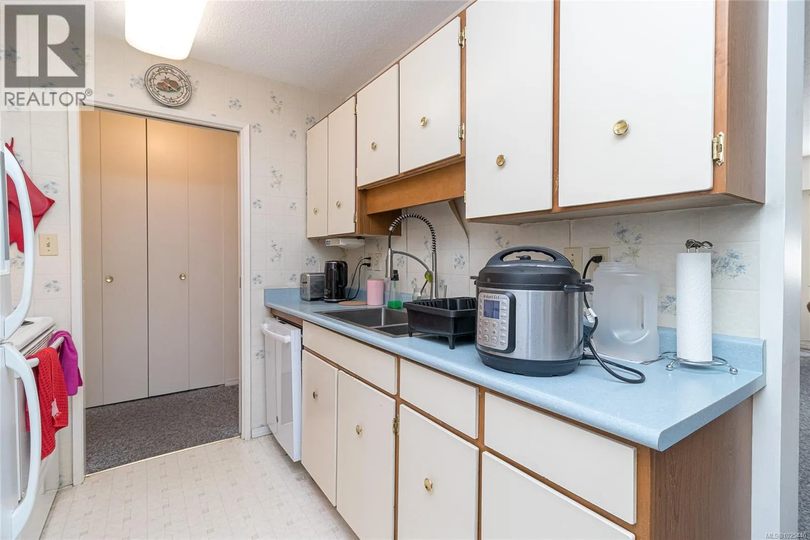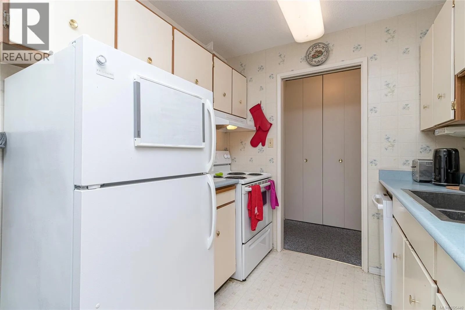 Discover this inviting 2-bedroom, 1-bath condo spanning a generous 843 sq ft in the peaceful ''Oakdene'' building, nestled on the quieter side near Rockheights Park, bus routes, and a short 10-minute walk to Esquimalt Town Centre with shops and amenities. Enjoy abundant natural light from large west-facing windows that fill the space with sunshine year-round in this well-maintained, predominately owner-occupied complex. Updates include a 2019 mansard roof (flat portion 2010) and refreshed bathroom with no-step walk-in shower, modern vanity, mirror, and toilet. Includes storage locker, assigned parking, workshop, extra storage, and free laundry. Ideal for quiet, stable living. Showings easy to arrange. In today's market, this condo offers outstanding valueâwith fresh flooring and paint, personalize it easily. Well-managed building with healthy contingency fund. Rare opportunityâcall today to view! (id:27476)