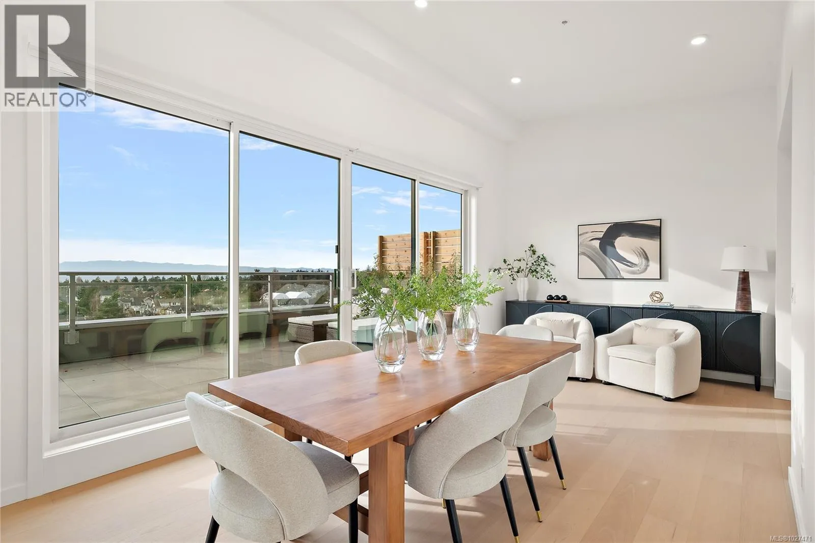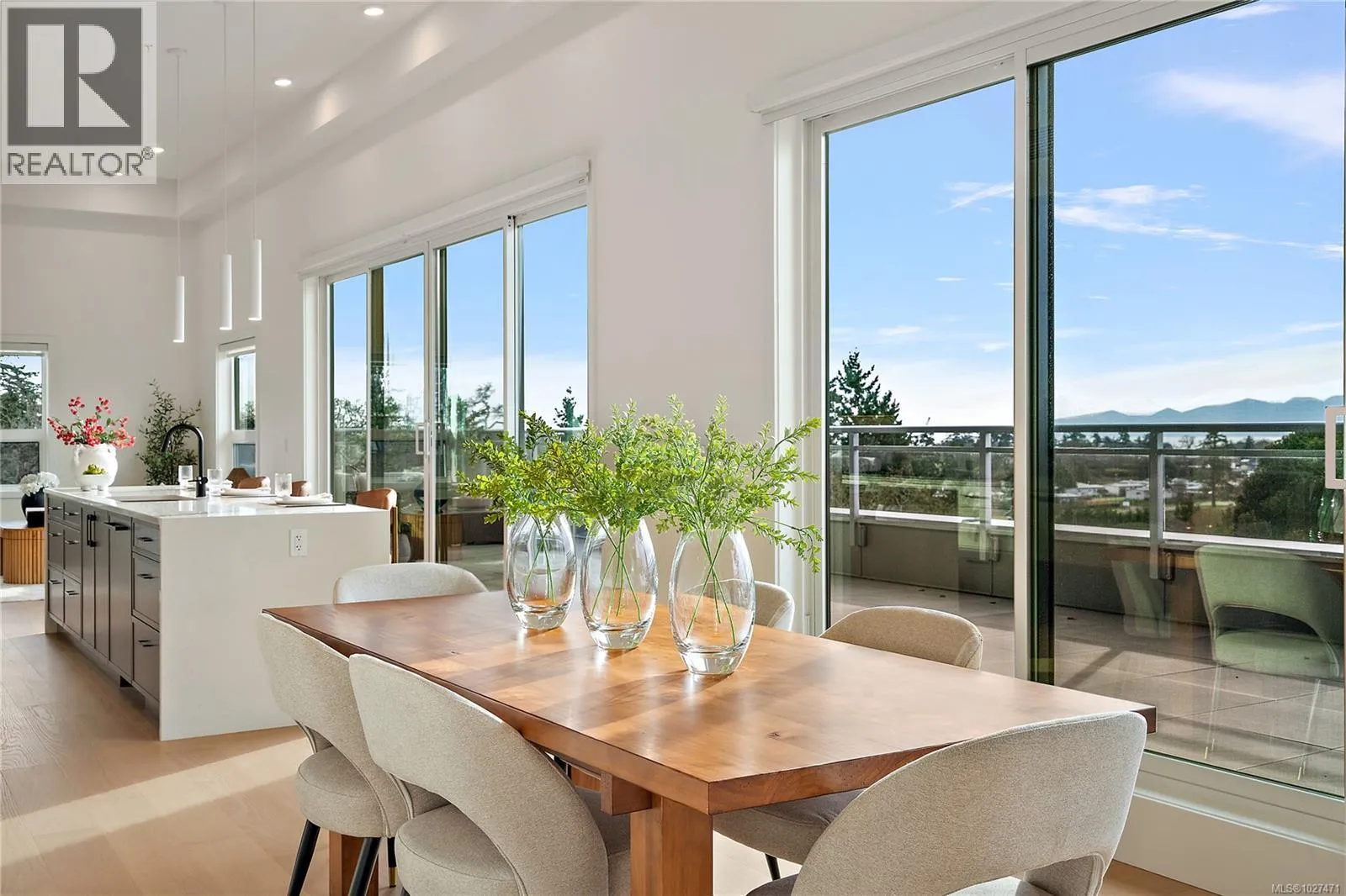 This premium penthouse unit is perfectly positioned in the heart of Esquimalt Village, just moments from Saxe Point Park, local breweries, shops, & the waterfront. This exceptional unit offers a striking, straight-on view to the ocean w/ mountain vistas, a captivating outlook that truly elevates everyday living. Vaulted ceilings enhance the sense of space & light, while rich hardwood flooring flows throughout. The kitchen is appointed w/ premium upgraded Fisher & Paykel appliances, blending elevated design w/ everyday functionality. The primary is a true retreat, featuring a walk-in closet & an extraordinary ensuite complete w/ oversized walk-in shower designed for a spa-like experience. The MASSIVE outdoor balcony is an expansive extension of your living space & the perfect setting to entertain, unwind, & take in the sweeping ocean & mountain views. Experience this move in ready unit for yourself & book an onsite viewing! Two secure underground parking spots included. (id:27476)