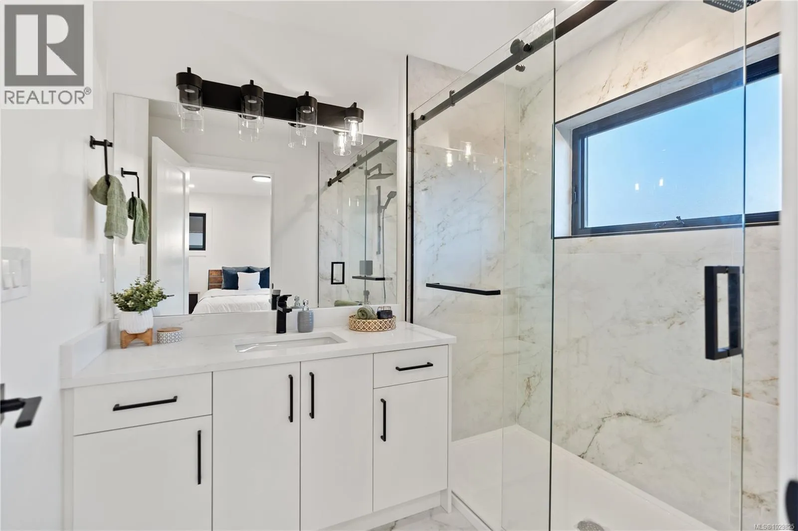 Discover the future of modern coastal living in this stunning 3-storey custom-built home, move-in ready and perfectly located just minutes from Saxe Point Park. This south-facing residence offers 3 bedrooms and 3.5 bathrooms with an open-concept layout that showcases bright, airy living spaces, sleek quartz countertops, and high-end stainless steel appliances. The top floor features two spacious bedrooms, each with its own ensuite, while the lower level offers a third bedroom, full bathroom, and a versatile media room ideal for guests or in-laws. Step out to the spacious back deck for outdoor enjoyment with family and friends. Additional highlights include two parking spaces, a heat pump, and rough-ins for EV charging and a central vacuum system. Prime location as this home is close to Saxe Point Park, grocery stores, shops, and so much more! This home is perfect for families seeking style and comfort. Make this exceptional property your new home. School catchments: Macaulay Elementary, Rockheights Middle School, and Esquimalt Highschool. Disclosure Photos were taken from showhome w/ mirror layout. Call now to book your appointment! (id:27476)