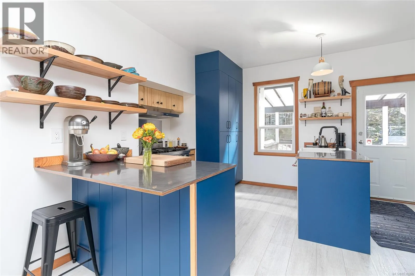 Great starter home in the heart of vibrant Esquimalt, set on a sunny 50x120 south-facing lot; perfect for gardening, kidsâ playsets, and year-round outdoor enjoyment. This home has been extensively upgraded, featuring new siding, a beautifully renovated kitchen with high-quality finishes, and an updated bathroom, blending modern comfort with its original character. The cozy and functional layout offers a primary bedroom on the main level, with an additional bedroom and versatile rec space downstairsâideal for guests, a home office, or growing families. Enjoy abundant storage with both basement and attic space. Located in a fantastic, walkable neighbourhood, youâre just minutes from downtown Victoria, Westside Village, and the scenic Inner Harbour walkway. Esquimalt is known for its welcoming community feel, oceanfront parks, and convenient access to amenities making this an excellent opportunity to enter the market in a sought-after area. (id:27476)