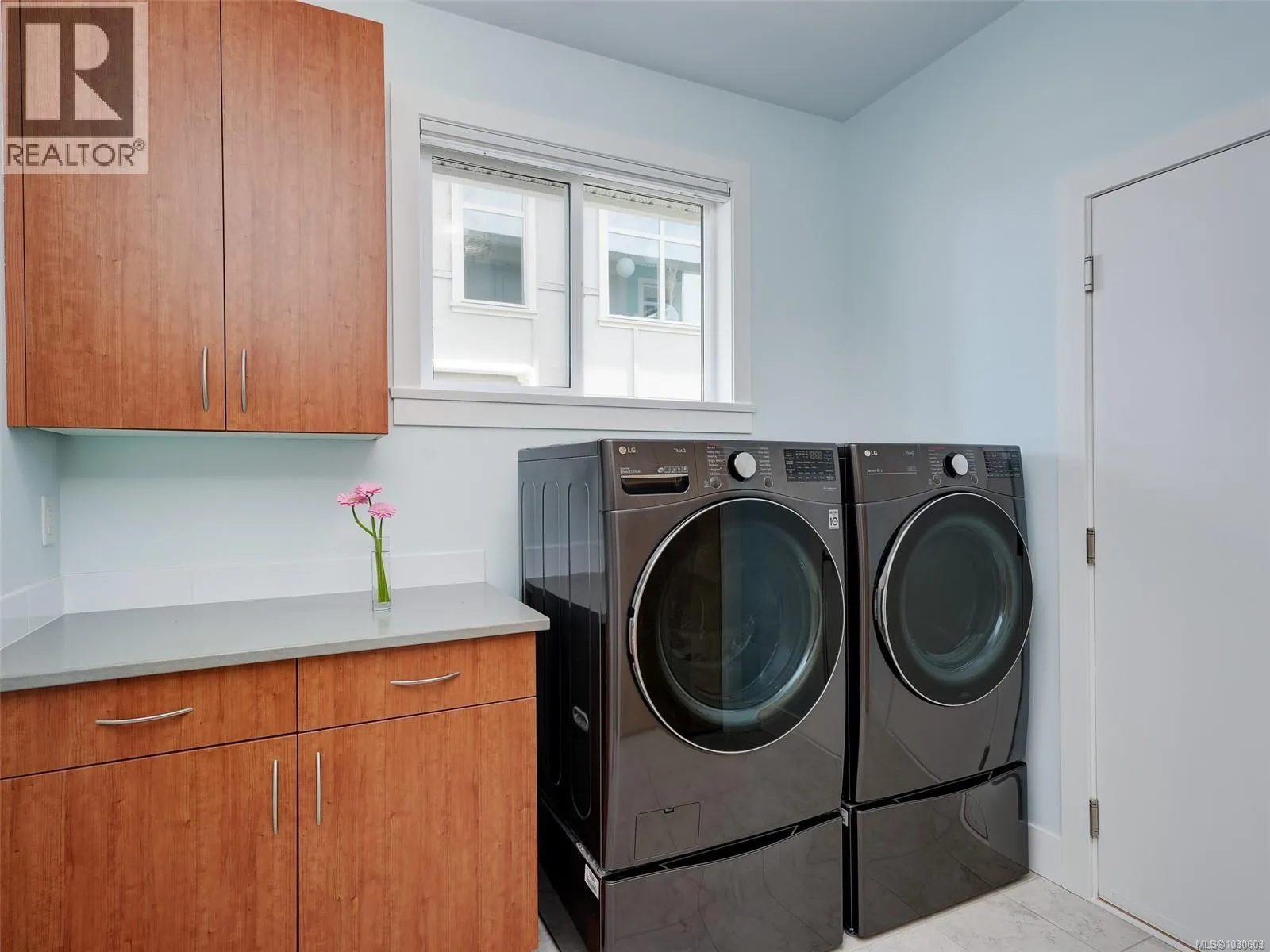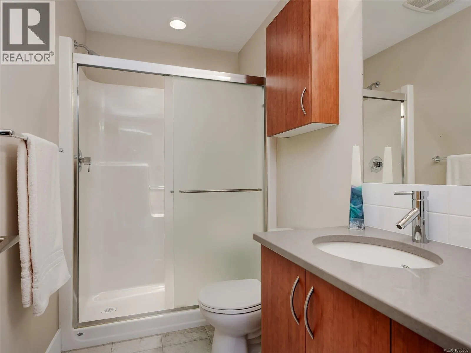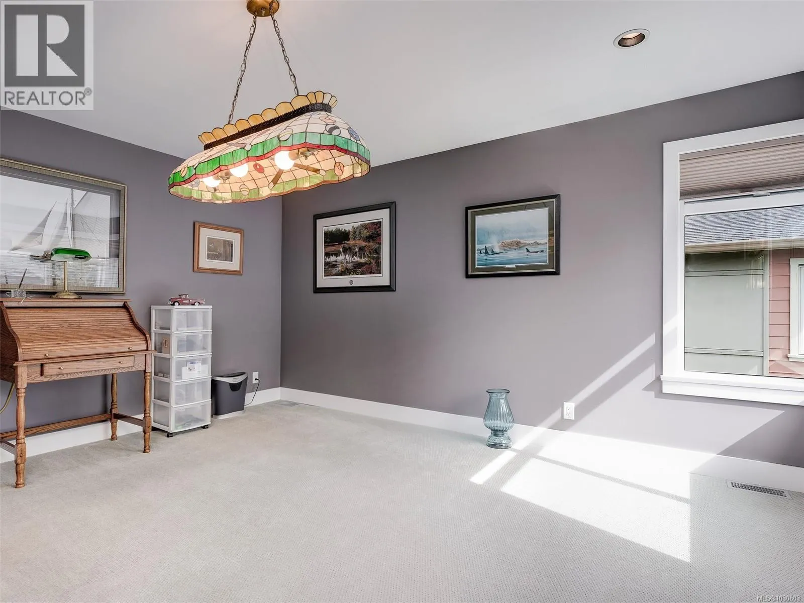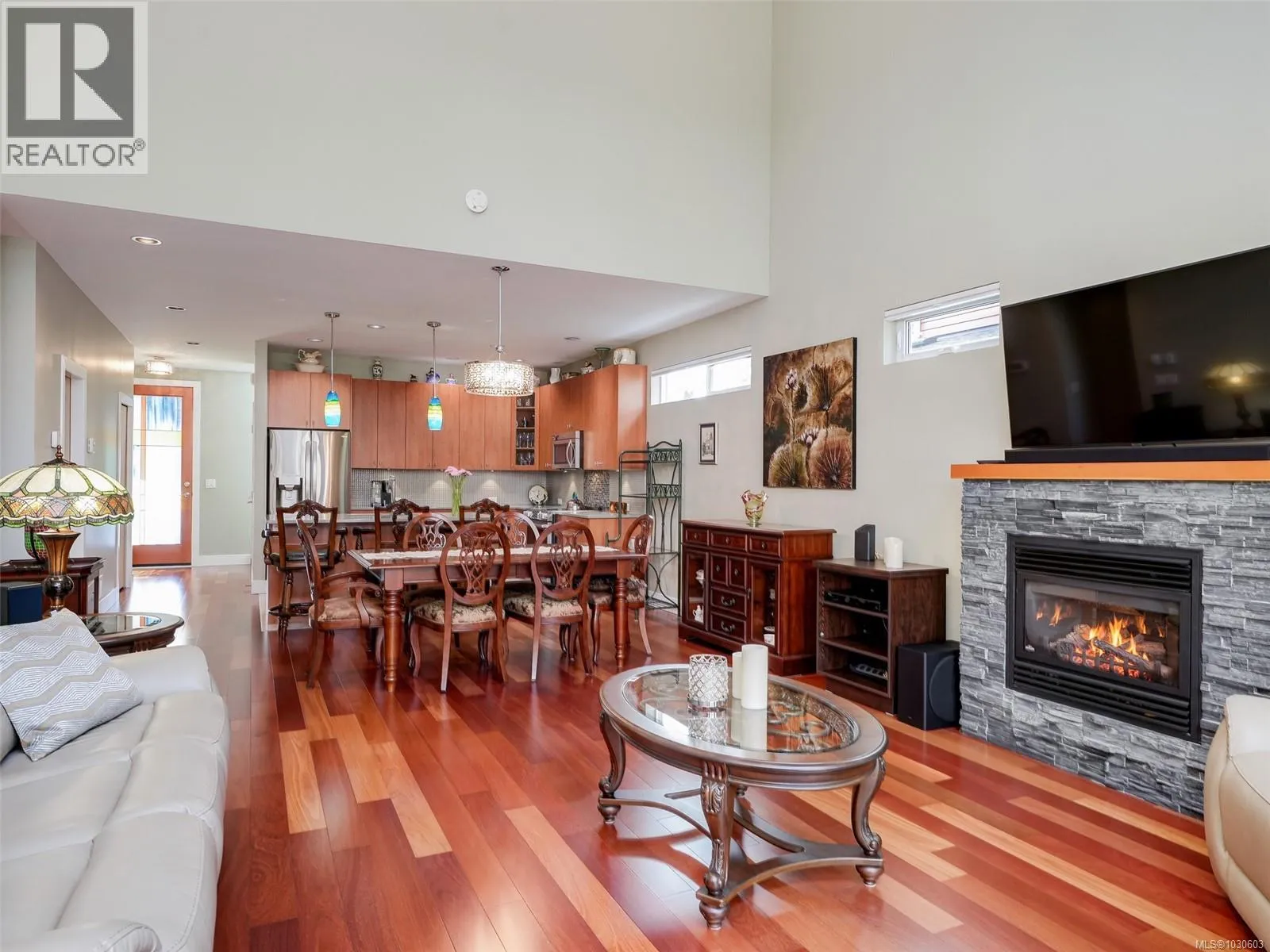 Custom-built for effortless main-level living, this beautifully maintained 13-year-old home shows like new. The bright open-concept kitchen, dining, and living space features gleaming hardwood floors, soaring 18â ceilings, expansive windows with Hunter Douglas blinds, and a stunning stone surround propane-fueled fireplace. The well-appointed kitchen offers stainless steel appliances, an island with a sink, a breakfast bar, and ample pantry storageâperfect for everyday living and entertaining. The main-floor primary suite includes a walk-in closet and a stylish ensuite with a walk-in shower. Upstairs, youâll find two additional bedrooms, a full bath, and a spacious 20' x 15' recreation roomâideal for a home office, gym, or media space. Enjoy year-round comfort with a heat pump and HVAC system. State-of-the-art lighting throughout the house, plus wiring available for sound systems. The fully fenced backyard boasts tidy gardens and a large patio for outdoor living. Complete with a large single garage, a double driveway, off-street visitor parking, and a central locationâthis home checks all the boxes. Strata for private road, no monthly fees. Proudly presented by Fair Realty's Sweet Home Victoria Real Estate Team. A virtual tour is available to view with multimedia links provided. (id:27476)