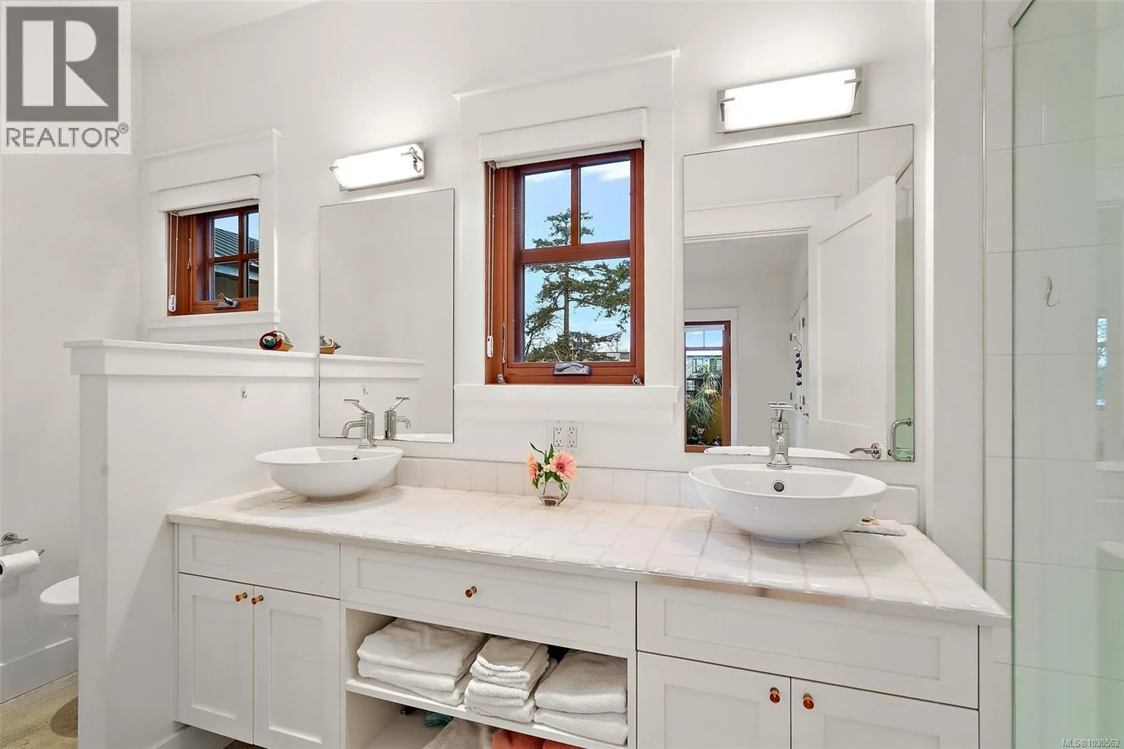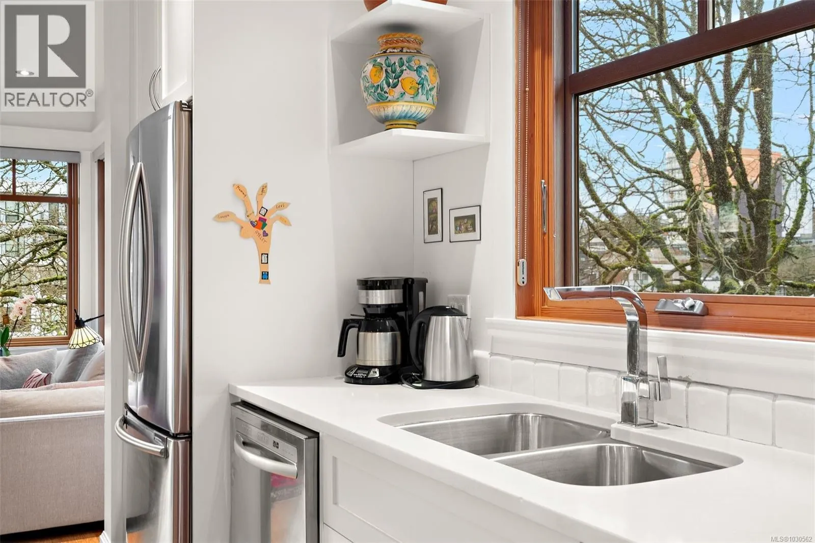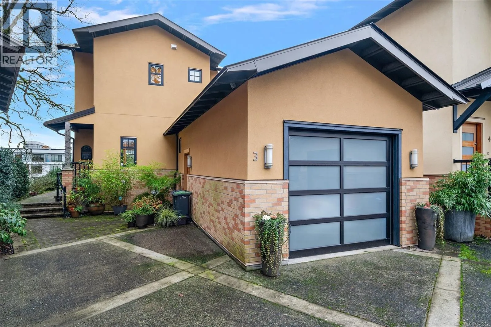 Immaculate free-standing 3-bedroom home in the exclusive Residences at Swallows Landing. One of just 5 strata single-family homes, offering a quiet lifestyle and refined finishings throughout. With over 1,700 sq ft of thoughtfully designed living space this home has been meticulously maintained. The open-concept main level features generous living & dining areas filled with natural light, gas fireplace, hardwood floors, custom mill-work & high-end kitchen with gas cooktop, s/s appliances & quartz countertops. Bright oversized windows overlook a private Garry Oak oasis. Upstairs the spacious primary includes a beautiful ensuite with tiled counters & heated floors & private balcony. The flexible lower level offers two additional bedrooms, a full bath, laundry, and a sunny private patio with separate entrance. Enjoy direct access to the Songhees waterfront walkway or stroll to downtown Victoria, shops, pubs, and amenities. A secure garage completes this exceptional home! (id:27476)