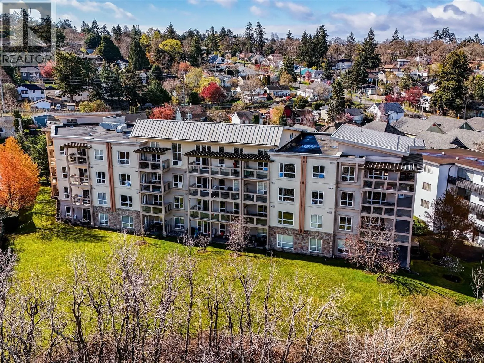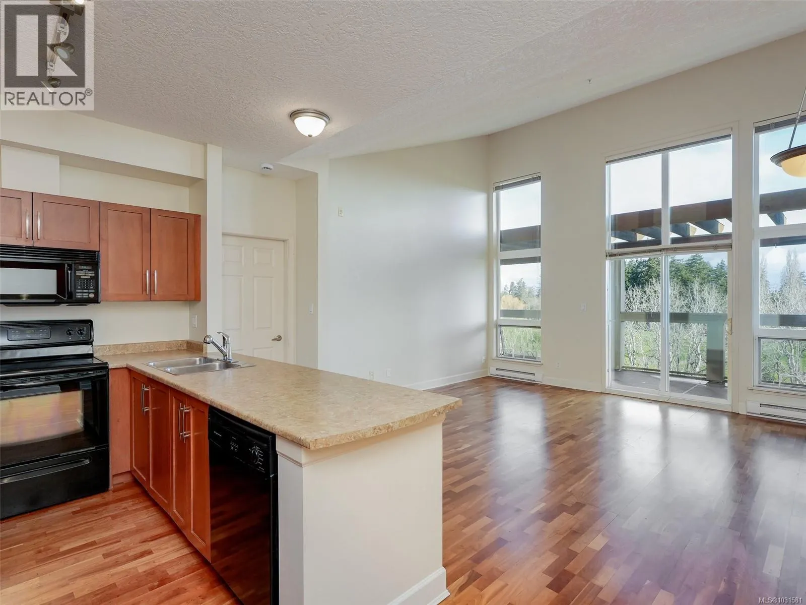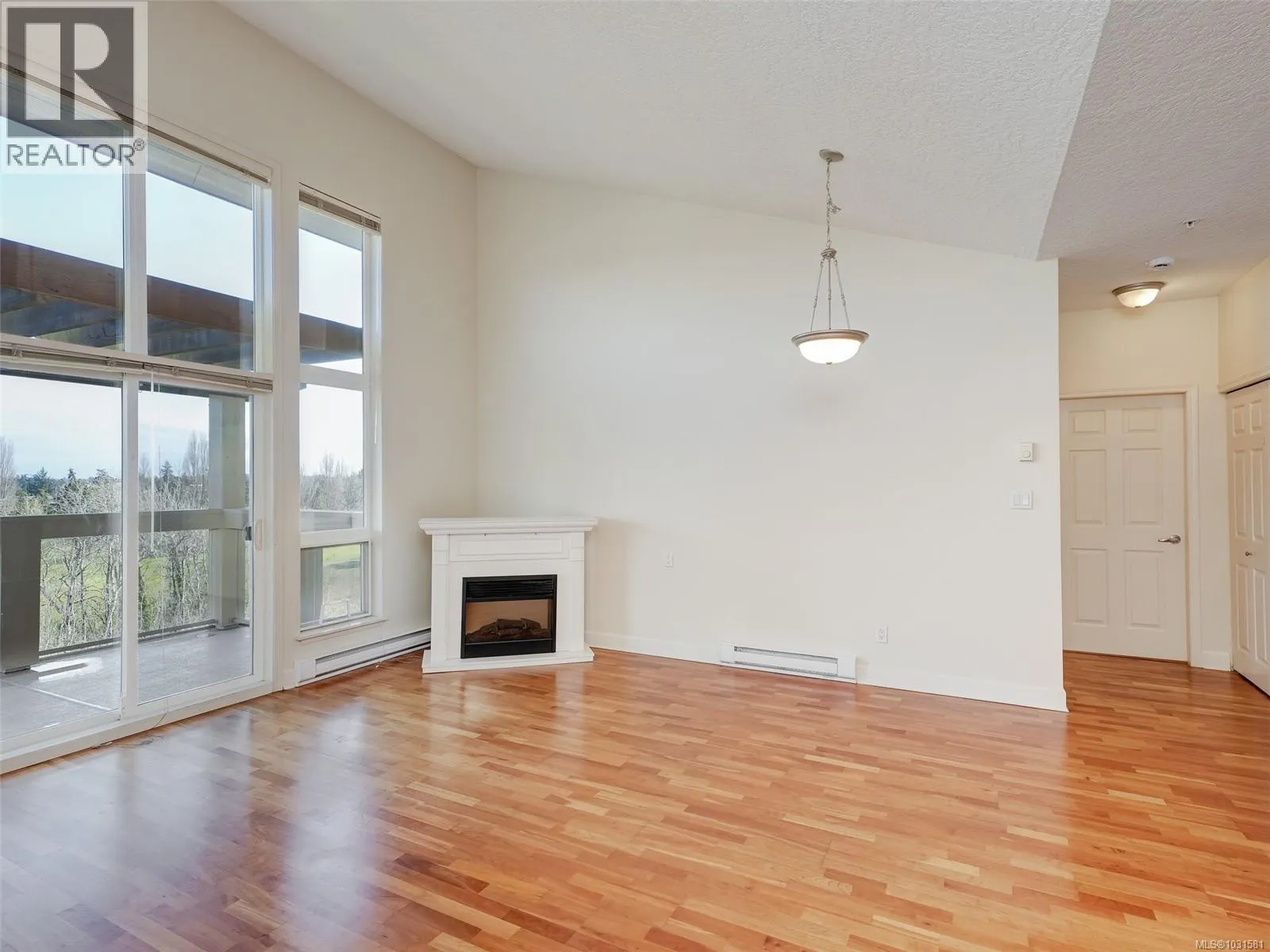 Absolutely gorgeous TOP FLOOR unit with soaring 14' ceilings positioned in the centre of the building and overlooking the golf course! Yes, this is by far, the very best unit within this building! This exceptionally spacious 2-bedroom, 2-bath home is perfect for your quiet moments and fabulous for entertaining. The open living and dining area is beautiully finished and features an electric fireplace and opens to a huge private balcony. Large windows provide ample natural light and being TOP FLOOR, the vaulted ceilings provide the best of the best from the moment you enter this unit. Ample cabinetry, and an island overlooking the main living area. Primary bedroom has a walk-in closet, private ensuite, while the second bedroom is at the other side of the unit to provide privacy for all. Second full bath, in-suite laundry, and great storage. Secure underground parking and bike storage-10 min to downtown. CFB Esquimalt a short walk! Located directly on the E&N Rail Trail, this home offers an easy 10-minute bike ride or drive to downtown, with parks, the Gorge Vale Golf Course, shopping, CFB Esquimalt if you're DND and transit just steps away. A fantastic opportunity to enjoy comfortable, low-maintenance living in a peaceful yet highly connected location. (id:27476)