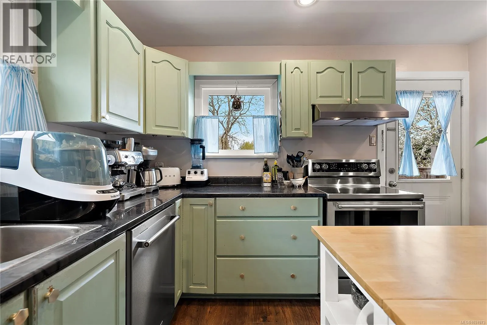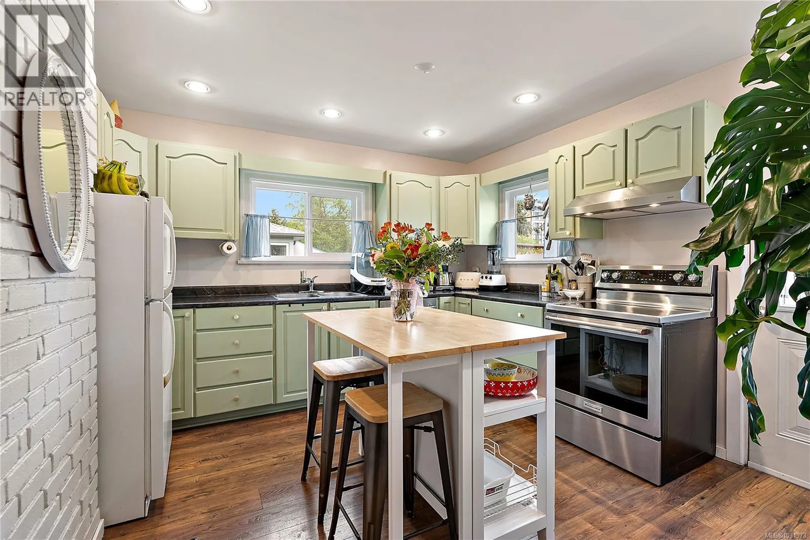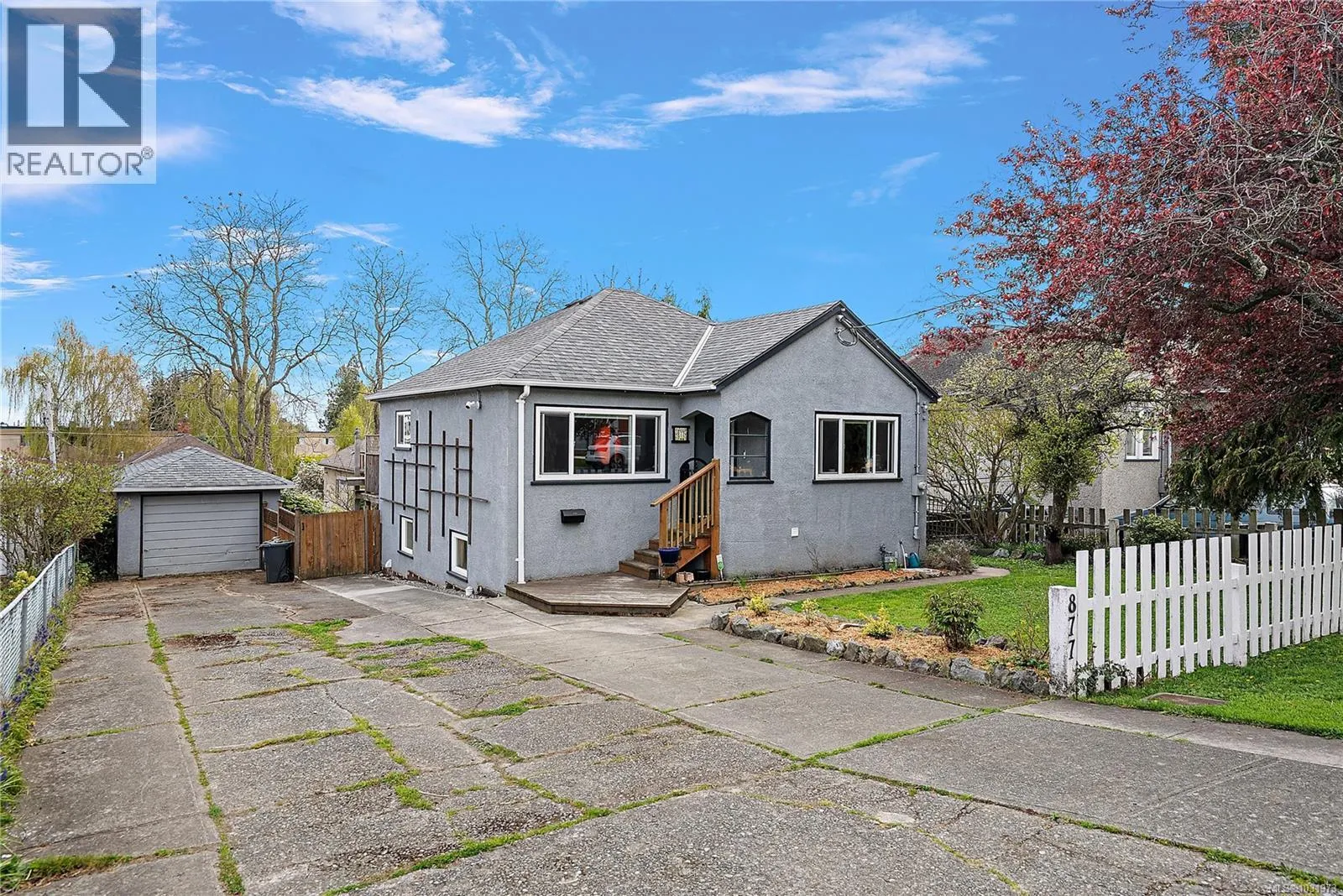 Charming 40's home nested into the heart of Esquimalt. Steps away from the West Bay Walkway, all your shopping amenities, and the Esquimalt Recreation Centre. The main level offers two bedrooms with additional closet space in the primary, a cosy living room with electric fireplace, and a sun-filled kitchen overlooking the large south-facing deck & private backyard with Olympic Mountain views. Downstairs features a fully renovated office space, laundry mudroom-room, plus a studio-suite with separate entrance, perfect as a mortgage-helper. Outside, enjoy ample parking with a generous driveway and detached garage. Significant updates over recent years include a roof, 200-amp electrical upgrade, full drain tile replacement with sump-pump, and vinyl windows throughout. Natural gas is available at the house for future connection. Located in a family-friendly neighbourhood, this move-in ready home offers excellent value, flexibility, and income potential. (id:27476)