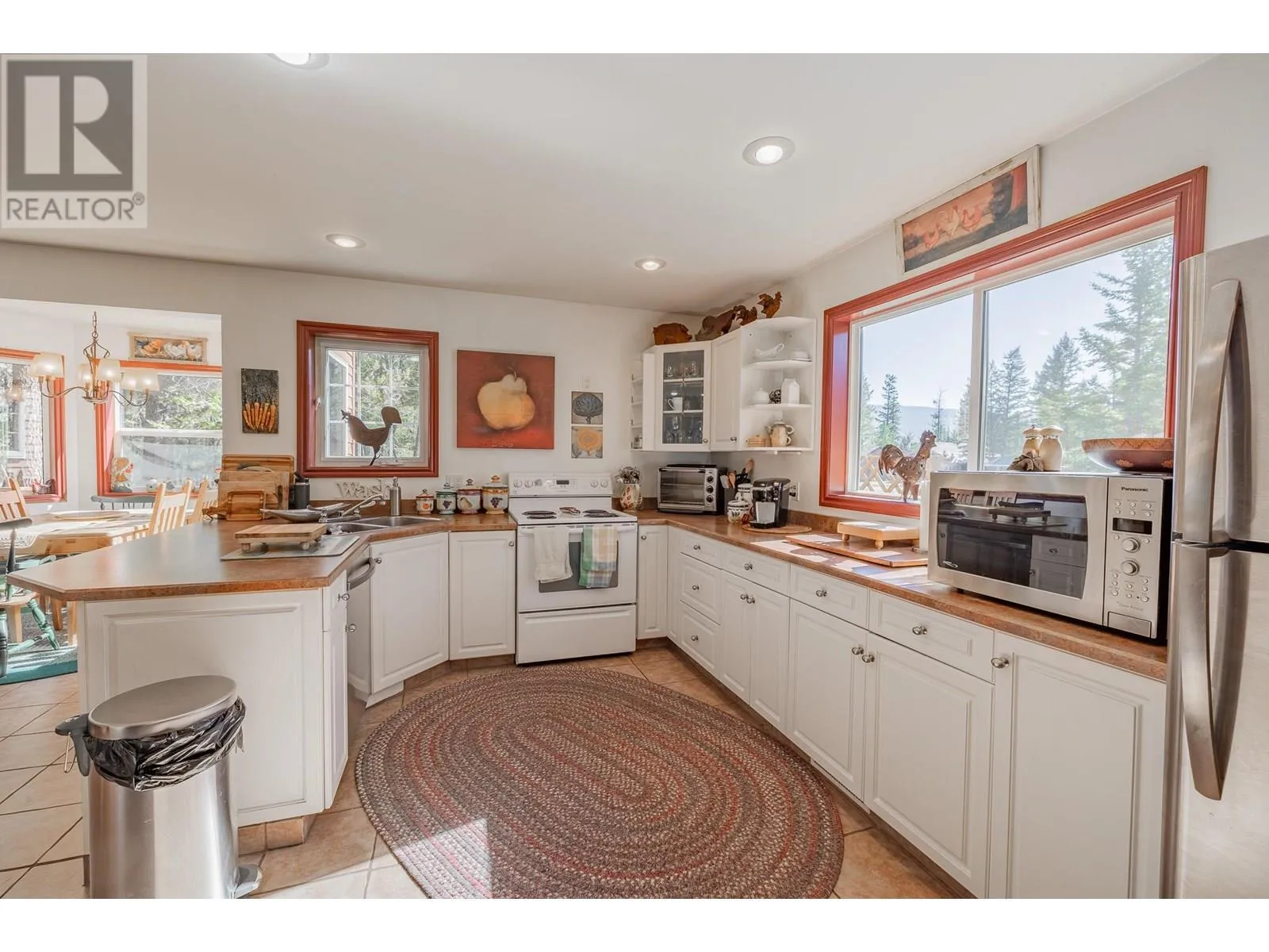 **CHARACTER COTTAGE AT THE LAKE** This gorgeous home is located on a large .46 Acre corner lot in the sought after community of Columbia Ridge Estates. Nestled alongside Columbia Lake, Columbia Ridge Country Estates offers private lake access and is located a short drive from Fairmont Hot Springs and the Invermere core. Both levels of this home are beaming with natural light. Featuring: tile and soft carpet flooring throughout, wood burning stove to create a toasty warm living space on cool winter days (or to cook over), upgrades include: newer window coverings, asphalt driveway, dish washer, fridge, washer/dryer, hot water tank, sump pump, decking, and included shed. Chimney cleaned and septic emptied in 2024. Wrap around decking allows for plenty of options when it comes to outdoor entertaining and the front and rear yard are very spacious. The lower level is unfinished and can be completed to add living space or kept as storage space. Make this your mountain retreat today and start making memories at the lake for many years to come! (id:27476)