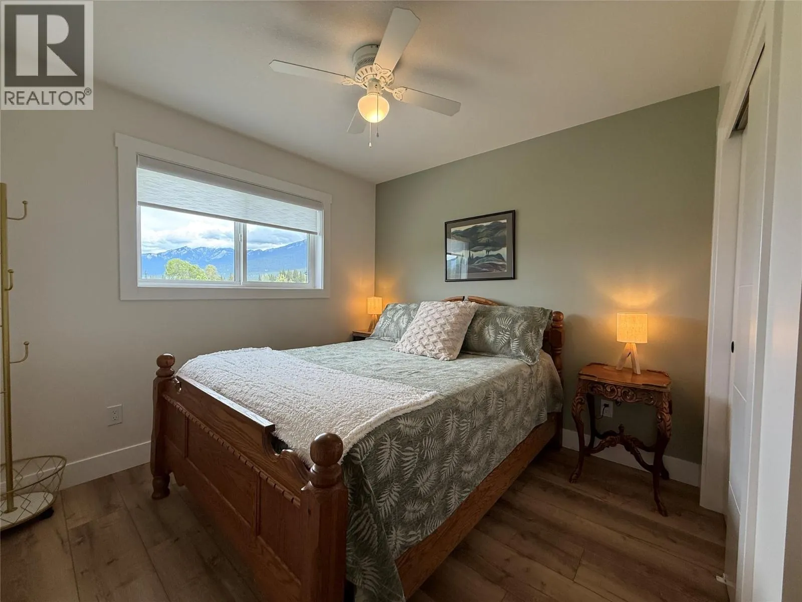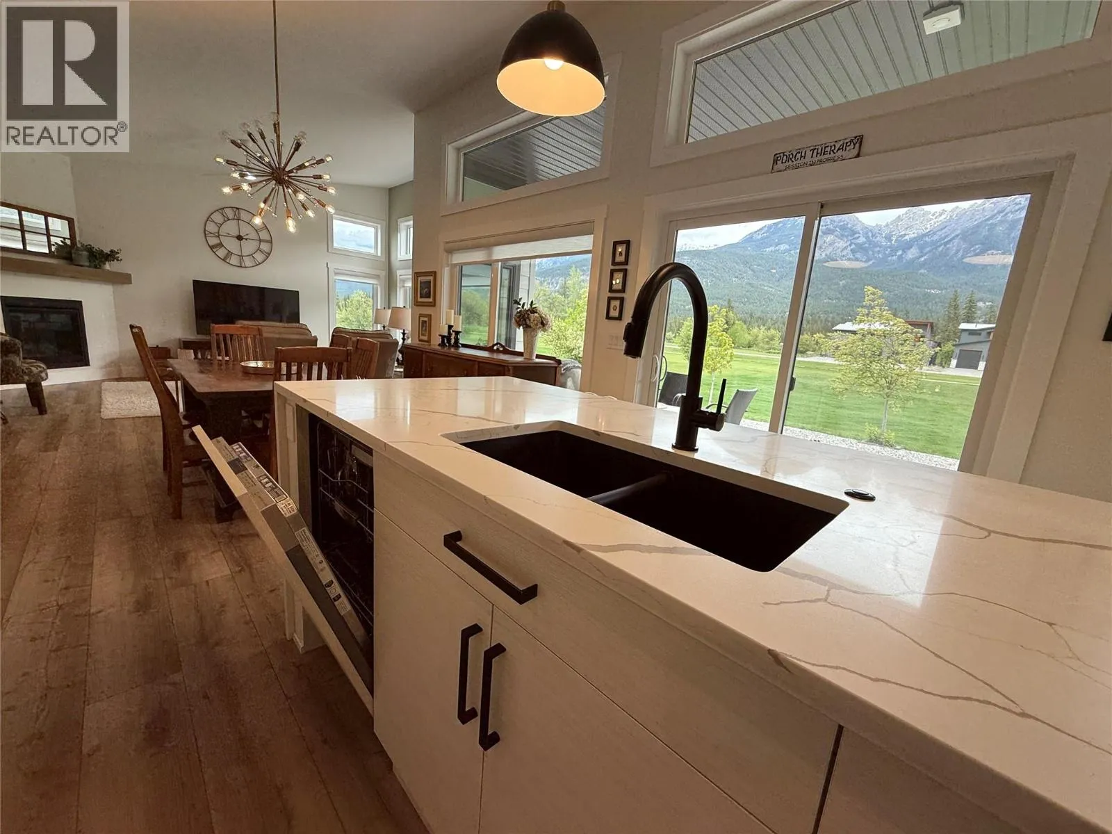 Breathtaking Rocky Mountain views await in this custom luxury residence positioned along the prestigious Riverside Golf Course. Built by New Dawn Developments, this home delivers the perfect blend of timeless elegance and modern energy efficiency. The home features durable Allura siding with Timberstone accents and a transferable builderâs warranty. Inside, expansive triple-pane Plygem windows frame panoramic mountain vistas, creating a bright and welcoming open-concept living space. Designer gold-accent lighting, a custom fireplace mantle, and Valentino Empress Quartz surfaces contribute to the sophisticated design. The gourmet kitchen is fully equipped with Bosch appliances including double ovens and an induction cooktop. The primary suite offers a peaceful retreat with stunning views, a walk-in closet, and a beautifully finished spa-inspired ensuite with dual sinks. A separate guest wing includes two additional bedrooms, a full bathroom, and a comfortable lounge area for privacy and convenience. This home is built for comfort and performance with a 96% efficient Lennox furnace, heat pump, built-in humidifier and air purifier, Honeywell Wi-Fi thermostat, reverse osmosis system, and water softener. Outdoor living can be enjoyed year-round on the over 330 sq ft covered deck. Move-in ready and perfectly situated to enjoy nature in every season, this property offers a rare opportunity to experience luxury living with uninterrupted Rocky Mountain views. No GST. (id:27476)