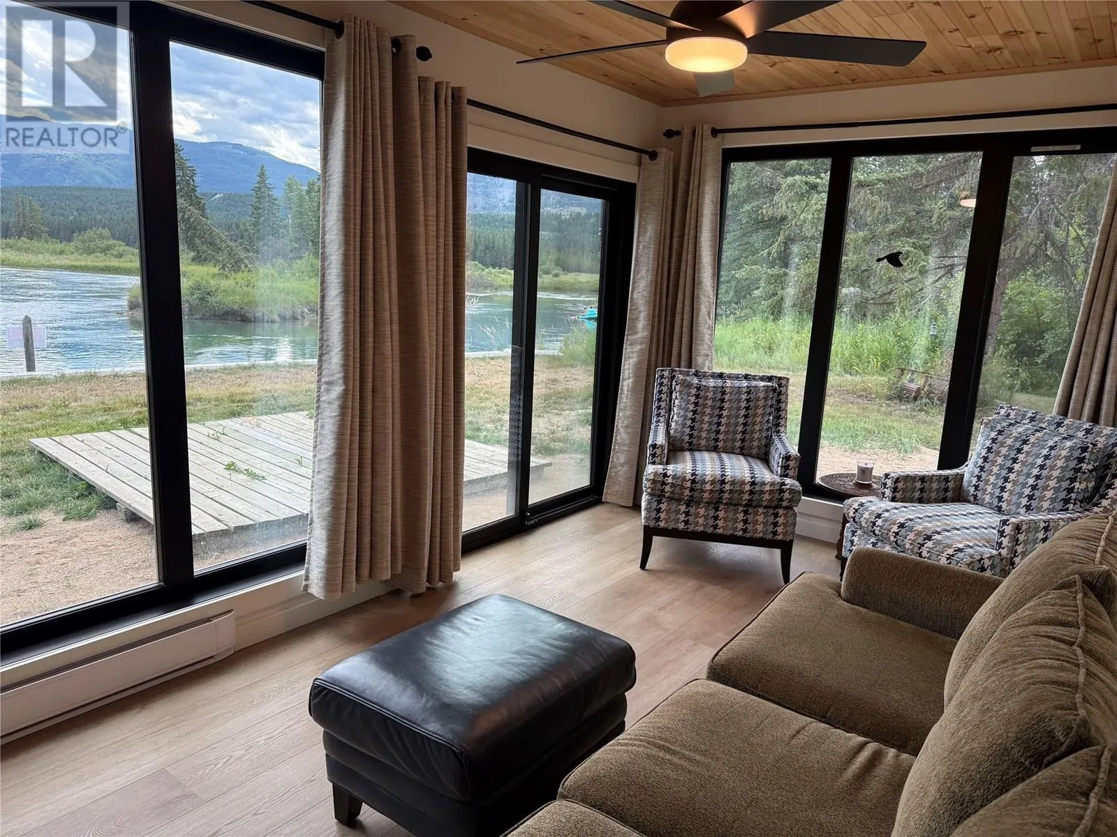 Rare Find! Located in the Meadows of Fairmont Hot Springs, on a quiet cul de sac of Willow Place youâll find this fully professionally renovated, riverfront, high end furnished, 1321 sqft home with loads of upgrades. Large new windows herald a glimpse of natureâs wonder. Outside invites you with.62 of acre & storage for all the toys, gardens and dreams to be imagined. You can enjoy an unencumbered view of the Columbia River and Purcell Mountains with over 70â of deep river frontage. Have a fire pit facing the river to enjoy a peaceful setting or lounge by the RV parking & outbuildings taking in the Rocky Mountains. Incls plug for RV with 50amp service. Property has extensive makeover giving a very modern, yet cozy appeal. Buyers will enjoy good drinking water from a new 65 gallon/min. There is an excellent septic system, lrg 30ft car shed, 2- 10x10 outbuildings and new plantings. (id:27476)