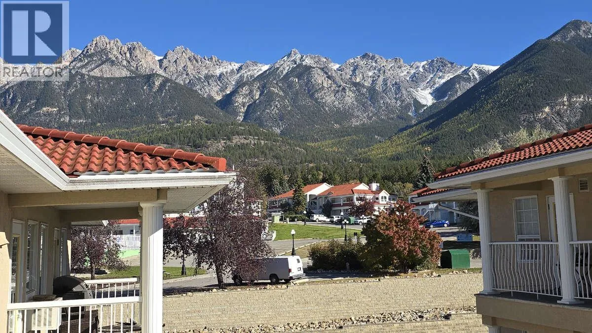 For more info, please click Brochure button. Discover the ultimate! Welcome to a premier spot within the Mountainview Villas, nestled in the sun-soaked paradise of Fairmont Hot Springs. Discover elevated living in this stylish top-floor condo in the heart of Fairmont Hot Springs 9 ft ceilings that amplify the spaciousness and create an airy ambiance throughout, this one bedroom, corner A unit (B unit separate) with new laminate flooring, paint and trim. The unit faces west, with views down the Columbia Valley north and south and of the stunning Rocky Mountain range to the east and Purcells to the west. As you step inside, you are greeted by an open floor plan that provides for plenty of space for entertaining guests or cozying up to the fireplace on a snowy evening. An abundance of natural light streaming in from the west-facing windows casts a warm and inviting glow across the tastefully furnished interior. With only a few small exclusions, this is a turn-key residence that comes fully-furnished, ensuring an easy transition to your new home. Featuring brand new stainless steel fridge and laundry set in the well-appointed kitchen, plus fireplace in the living area, you will find this space is ideal for either a vacation home, full-time living or potential rental property. The spacious bedroom easily fits the king size bed, while still having room for multiple closets for storage. Step out onto one of the standout features, the expansive deck, that beckons you to unwind! (id:27476)