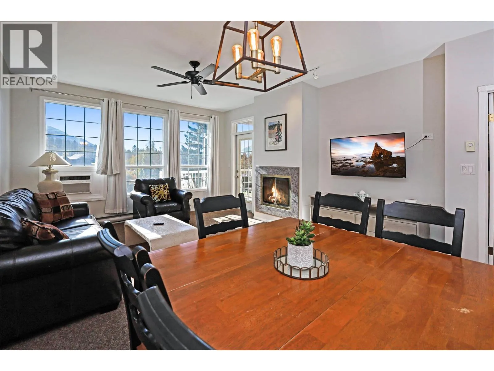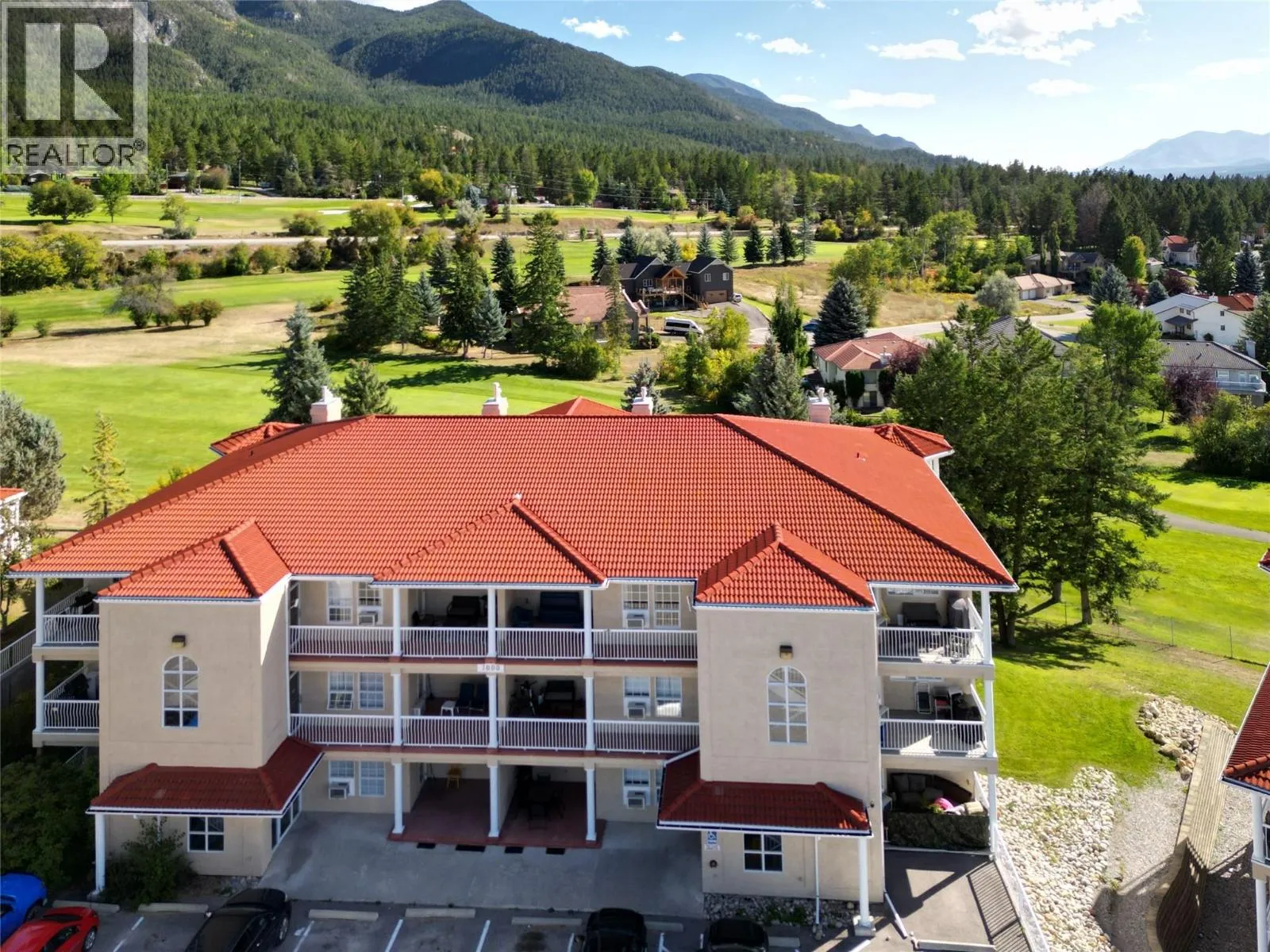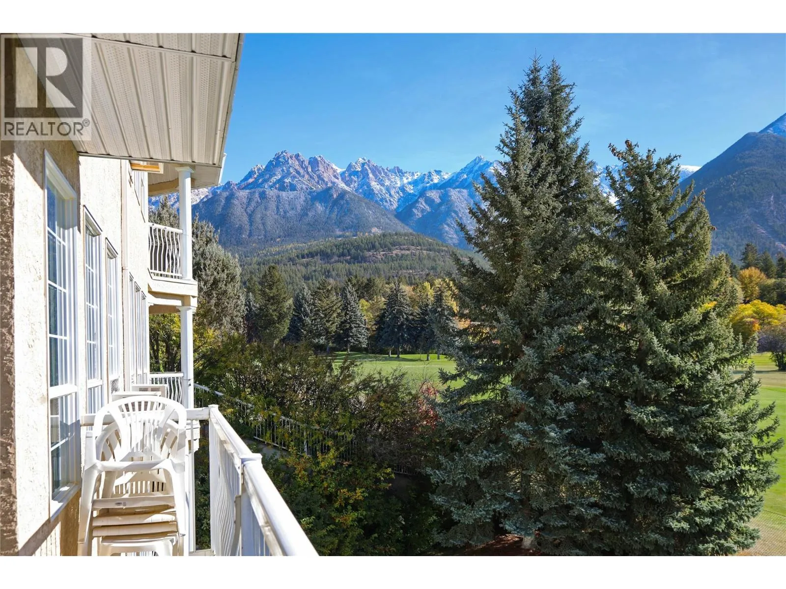 Welcome to Mountain View Villas, perfectly nestled at the base of the stunning Fairmont Mountain Range and bordering the Riverside Golf Course fairway. Imagine waking up to unforgettable mountain vistas and ever-changing skyscapes, no matter the season. Unit 1010A: A sleek one-bedroom retreat. This residence features a four-piece primary bathroom, offering an ideal blend of modern style and effortless comfort. The open floor design seamlessly connects the kitchen, dining, and living areas, all of which are illuminated by expansive windows that flood the space with natural light and showcase breathtaking views. Step out onto your spacious balcony, accessible from both the living room and the bedroom, and enjoy panoramic views from sunrise to sunset. Entertain with ease thanks to plumbed propane for your BBQ. Cozy up by the fireplace, or cool off with the wall-mounted air conditioning. Additional perks include convenient in-suite laundry and outdoor parking. Experience the best of mountain living, mere moments from recreationâskiing, golfing, hiking, climbing, and soaking at the natural hot springs. The friendly Fairmont community offers essentials such as a gift shop, gas station, grocery store, restaurants, and a local coffee shop. Consider making this appealing retreat your personal sanctuary, where you can embrace a refined mountain lifestyle. This property offers an exceptional opportunity for year-round living, a vacation getaway or an income-generating investment. (id:27476)