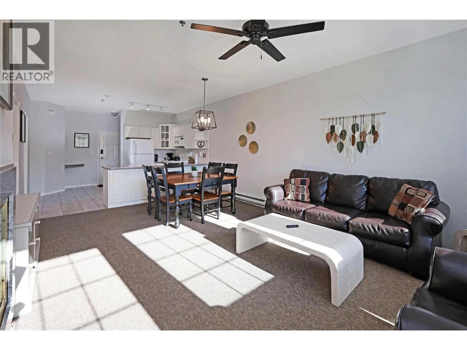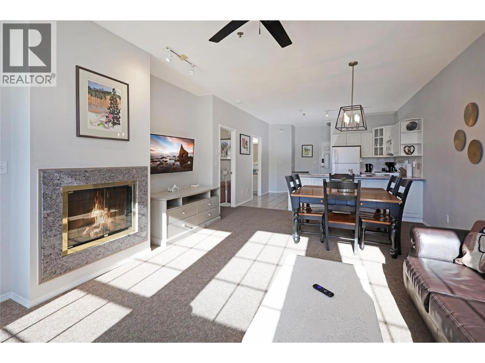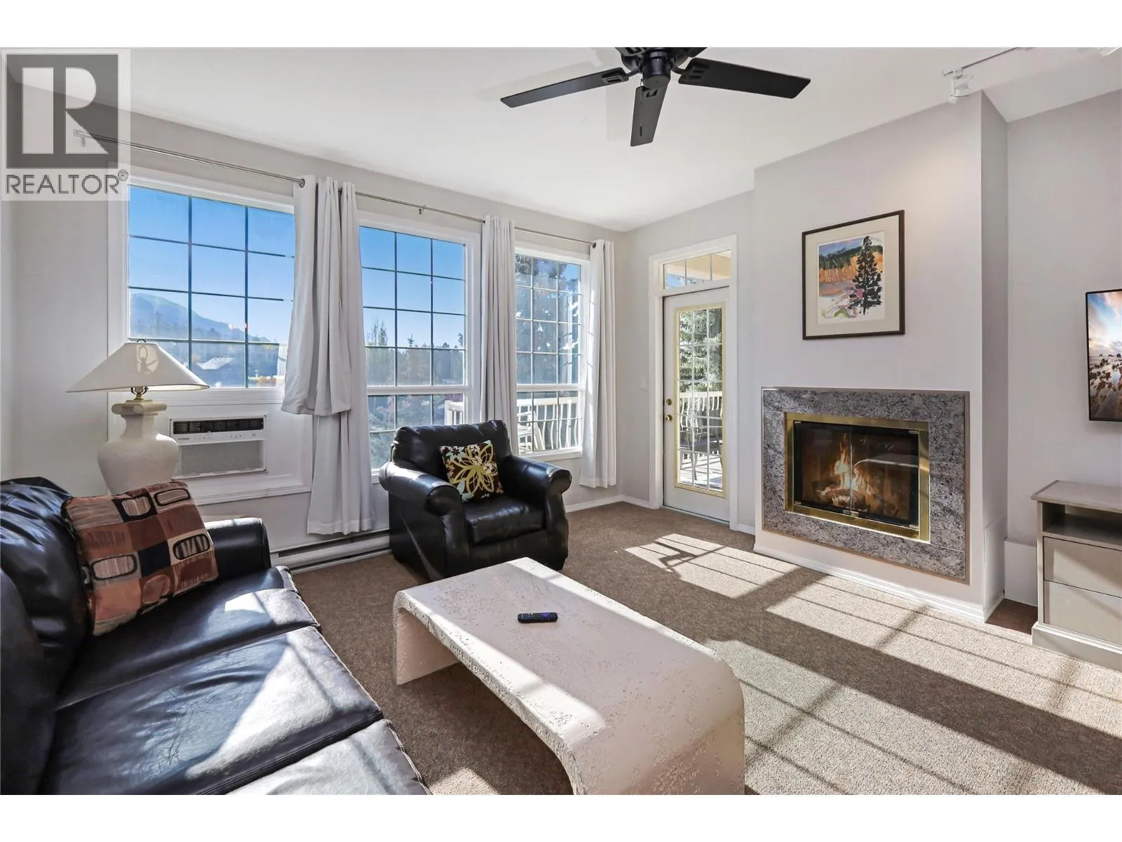 Welcome to Mountain View Villas, perfectly nestled at the base of the stunning Fairmont Mountain Range and bordering the Riverside Golf Course fairway. Imagine waking up to unforgettable mountain vistas and ever-changing skyscapes, no matter the season. Unit 1010A: A sleek one-bedroom retreat. This residence features a four-piece primary bathroom, offering an ideal blend of modern style and effortless comfort. The open floor design seamlessly connects the kitchen, dining, and living areas, all of which are illuminated by expansive windows that flood the space with natural light and showcase breathtaking views. Step out onto your spacious balcony, accessible from both the living room and the bedroom, and enjoy panoramic views from sunrise to sunset. Entertain with ease thanks to plumbed propane for your BBQ. Cozy up by the fireplace, or cool off with the wall-mounted air conditioning. Additional perks include convenient in-suite laundry and outdoor parking. Experience the best of mountain living, mere moments from recreationâskiing, golfing, hiking, climbing, and soaking at the natural hot springs. The friendly Fairmont community offers essentials such as a gift shop, gas station, grocery store, restaurants, and a local coffee shop. Consider making this appealing retreat your personal sanctuary, where you can embrace a refined mountain lifestyle. This property offers an exceptional opportunity for year-round living, a vacation getaway or an income-generating investment. (id:27476)