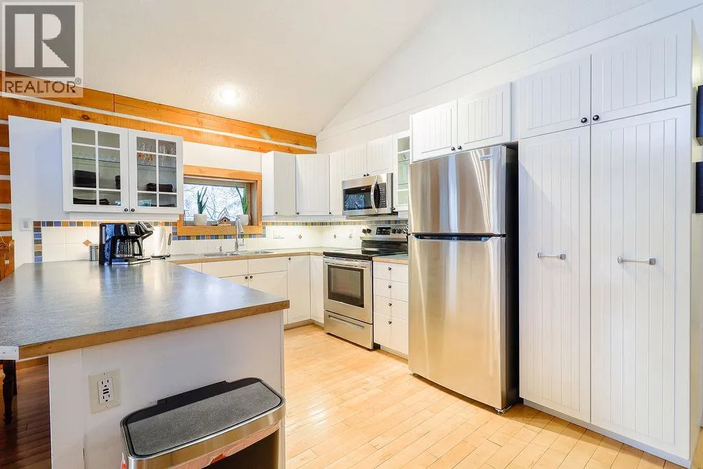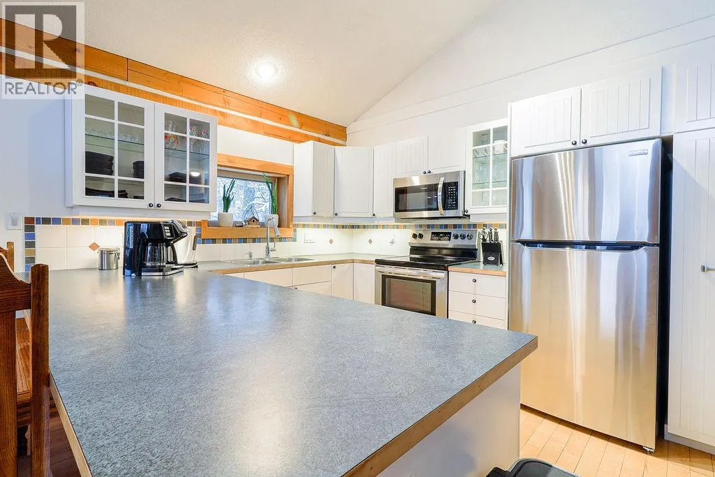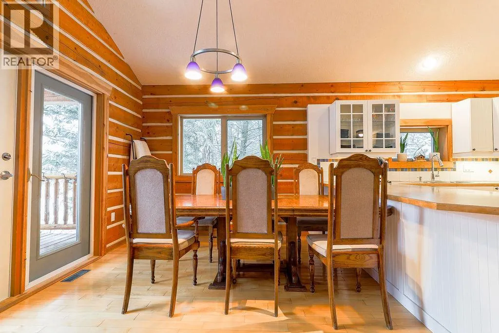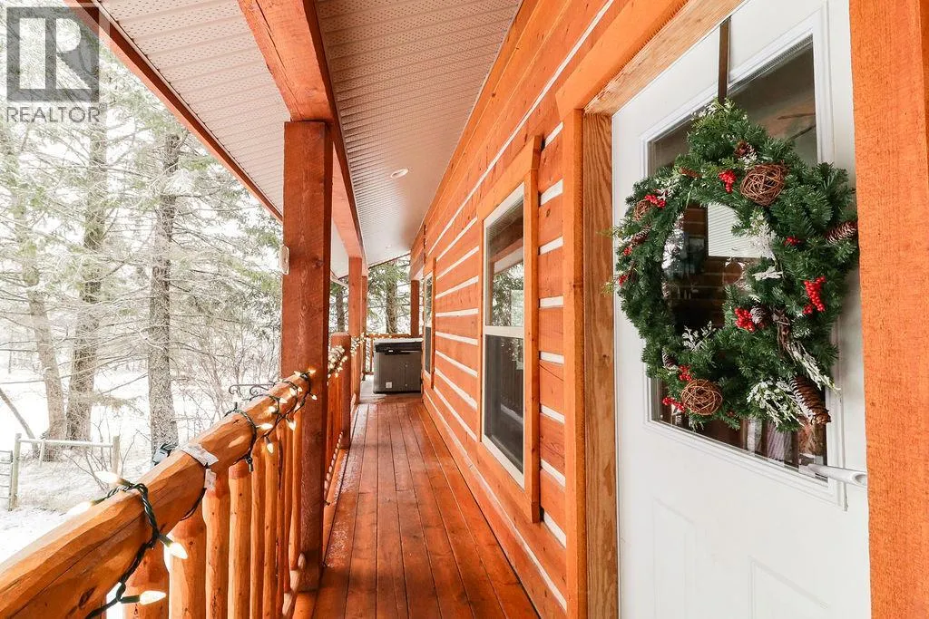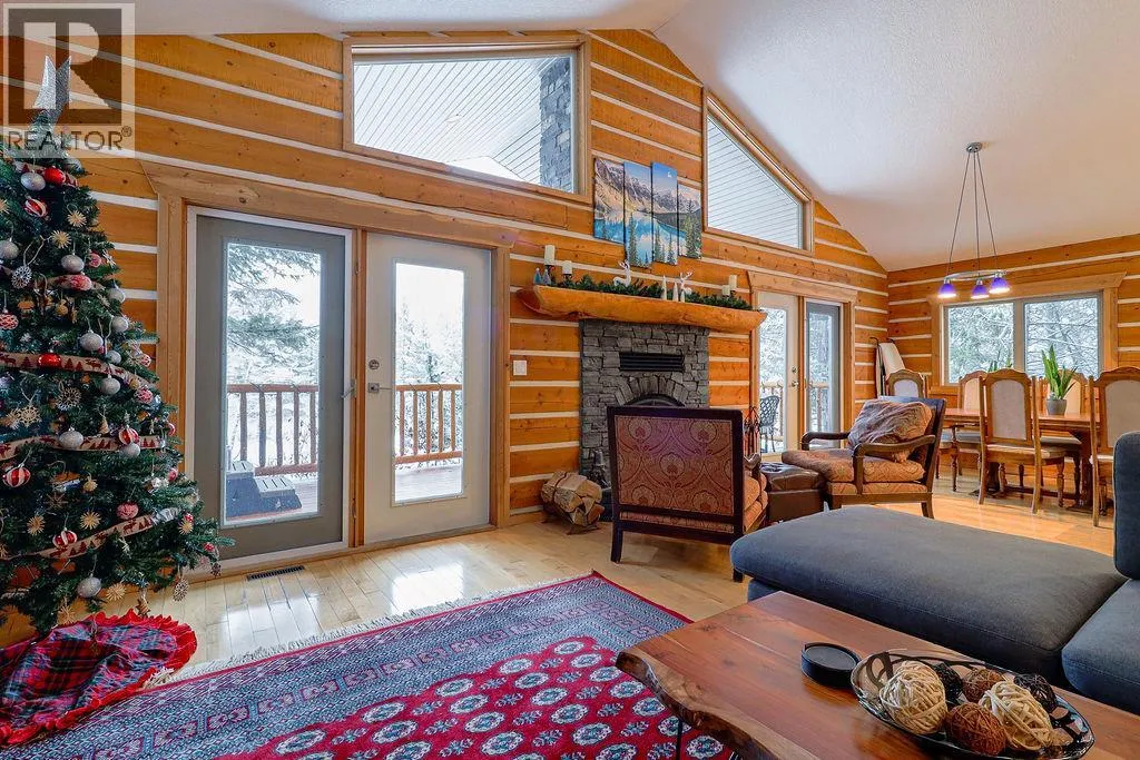 Log Cabin Retreat! Tucked away among mature trees on almost one full acre, this stunning log cabin retreat offers the perfect blend of rustic charm, space, and privacy. Featuring 4 bedrooms and 2 bathrooms, this inviting home is ideal for full-time living, recreational use, or hosting family and friends. The heart of the cabin showcases vaulted ceilings, an open-concept living, dining, and kitchen area, and a cozy wood-burning fireplaceâperfect for gathering after a day outdoors. A separate recreation room provides additional space for games or other activities. Step outside and unwind in the private hot tub, surrounded by nature and towering trees that create a peaceful, secluded setting. A double garage offers ample room for vehicles, toys, and storage. Whether youâre looking for a tranquil escape or a versatile family retreat, this exceptional property delivers comfort, character, and privacy in a truly beautiful natural setting. (id:27476)
