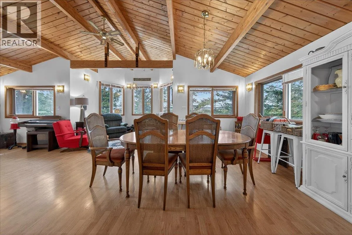 CABIN LIVING CLOSE TO EVERYTHING! Welcome to this fun and character-filled 2-level home on Hot Springs Road â just a short stroll from the heart of Fairmont Hot Springs. Golf, skiing, hot pools, and endless recreation are all right at your fingertips. The home itself delivers serious mountain charm. A massive deck â partially covered and shaded by towering fir trees â sets the stage for long summer evenings and sunset gatherings with west-facing views. Inside, the main floor is packed with personality. Vaulted ceilings, exposed wood accents and beams, and a cozy wood-burning stove create that perfect cabin feel, while the open layout and stylish updates keep things fresh. Thereâs plenty of room to entertain â from fireside chats in the living room to quiet moments in the reading or music nook framed by large front windows. Two bedrooms complete the upper level while one bedroom down the stairs are included in the main living space. The lower level offers even more flexibility with a self-contained living area complete with its own separate entrance. With an open layout, new vinyl plank flooring, textured tile ceiling, two spacious bedrooms, and private laundry, the living arrangement possibilities are endless. The generous yard features a firepit ready for gatherings and entertainment, plus there is extra parking for guests. Book your showing today and start living the Fairmont lifestyle! (id:27476)