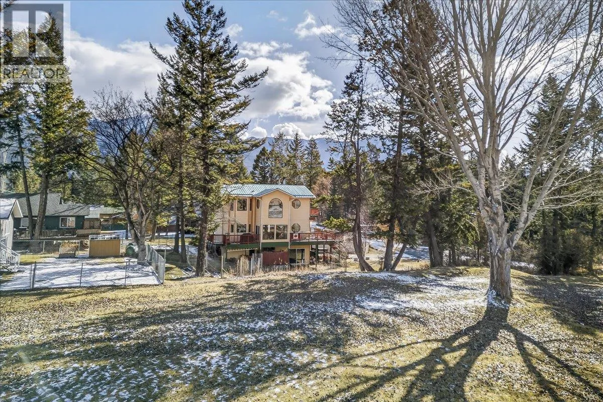 CABIN CHARM. LAKE ACCESS. GOLF COURSE & MOUNTAIN VIEWS. This custom-built home in Columere Park delivers a perfect blend of cozy cabin character & generous living space. Enjoyed exclusively by the original owners, this home sits on a quiet corner lot at the end of a cul-de-sac, backing onto Coyâs Golf Course with stunning Rocky Mountain views beyond. Inside, the home offers a warm mountain feel with plenty of room for family & guests. The spacious kitchen with updated appliances & dining area is ideal for gathering, while the adjoining lounge/nook features a huge vaulted ceiling & spectacular SW views over the golf course. The perfect spot to relax with a book or take in the scenery. The main level is anchored by a wood-burning fireplace, while upstairs a massive family room with another fireplace offers even more space to unwind. The grand primary bedroom & ensuite upstairs create a private sanctuary, while the walkout basement is ready for your own personal touch. With 4 bedrooms, 3 bathrooms & plenty of storage, thereâs room for all. The property also features a garage with workshop plus a carport, along with garden boxes & a nicely maintained lawn that complete the outdoor setting. Step onto the huge deck space, where mornings begin with coffee & birdsong, while evenings end with peaceful views & fresh mountain air. Owners enjoy private access to Columbia Lake with boat launch & day-use dockâmaking lake days effortless. Join the community & book a showing today! (id:27476)
