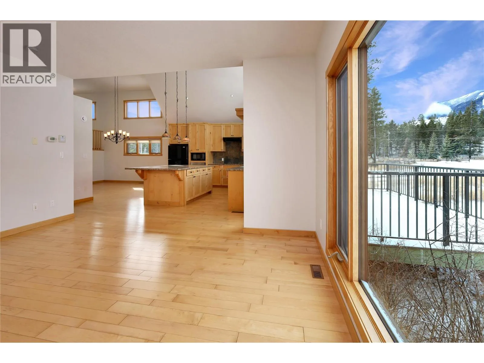 Welcome to your new sanctuary at Spirits Reach, where ""mountain soul meets modern living."" Tucked away in a tranquil corner, this home seamlessly blends functionality with high-end aesthetics, beginning the moment you step onto the inviting covered porch and into a foyer adorned with timeless slate and wood plank flooring. The heart of the home is a sun-drenched, open-concept living area where soaring vaulted ceilings and an efficient wood stove create an atmosphere both grand and cozy. Whether you are prepping a charcuterie spread on the kitchenâs massive island or hosting on the maintenance-free composite deck, breathtaking mountain views serve as your permanent backdrop. This retreat is engineered for effortless living, featuring three spacious upper bedroomsâincluding a stylish primary ensuiteâand a main-floor laundry/boot room to keep adventure tucked away. A bright, unfinished basement is a blank canvas already plumbed for an extra bath. Practicality meets play with an oversized garage, carport, and dedicated ""toy room"" for your gear. Built with sustainability in mind, the home boasts geothermal heating/cooling and low-maintenance cement siding. Just steps away, cross the private walking bridge for direct access to Columbia Lake or head to the community clubhouse. This isnât just a house; itâs the mountain destination your family will cherish for generations. Make it yours today. (id:27476)