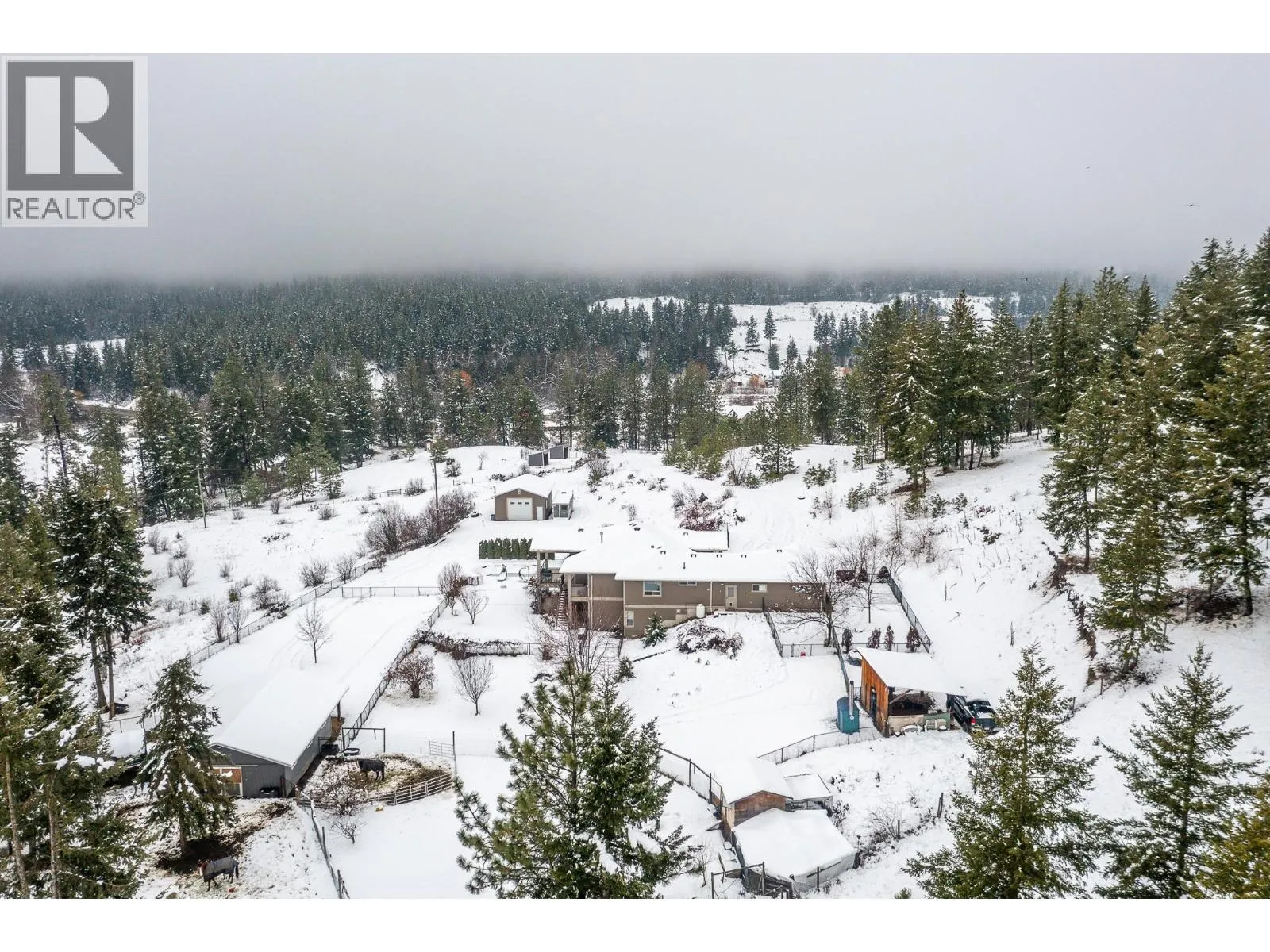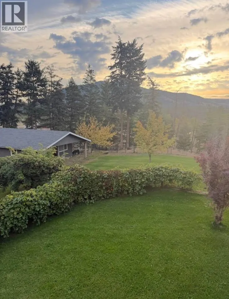 Set on 14.5 acres of rolling hills with sweeping valley views, this exceptional property offers privacy, space, and endless possibilities. Positioned well back from the road and neighboring homes, the setting feels peaceful and secluded while still offering excellent accessibility. The 2008 main home is warm and welcoming, with 4 bedrooms and 4 bathrooms, including a 1 bed / 1 bath suite with separate entrance (currently vacant). The main living areas are ideal for entertaining, highlighted by a propane fireplace and beautiful valley vistas from the home. Surrounding the house, the grounds are beautifully landscaped with mature fruit trees, creating a serene outdoor oasis. The upper portion of the property includes multiple fenced areas and is currently home to a small number of horses. A well-appointed barn comfortably accommodates 3â4 horses, complemented by an additional pasture with lean-to shelters. For hobbyists or storage needs, a 24x32 heated and wired shop is ready to go. At the lower end of the property, well away from the main residence, sits a 784 sq ft, 2011 manufactured home with 2 bedrooms and 1 bathroom, currently rented for $1,575/monthâperfect for added income or multi-generational living. Bordering Highway 97 and crown land, the property also includes two large powered storage buildings/shops, offering excellent visibility and potential for a home-based business or creative ventures. A truly rare opportunity where lifestyle, income, and versatility meet. (id:27476)